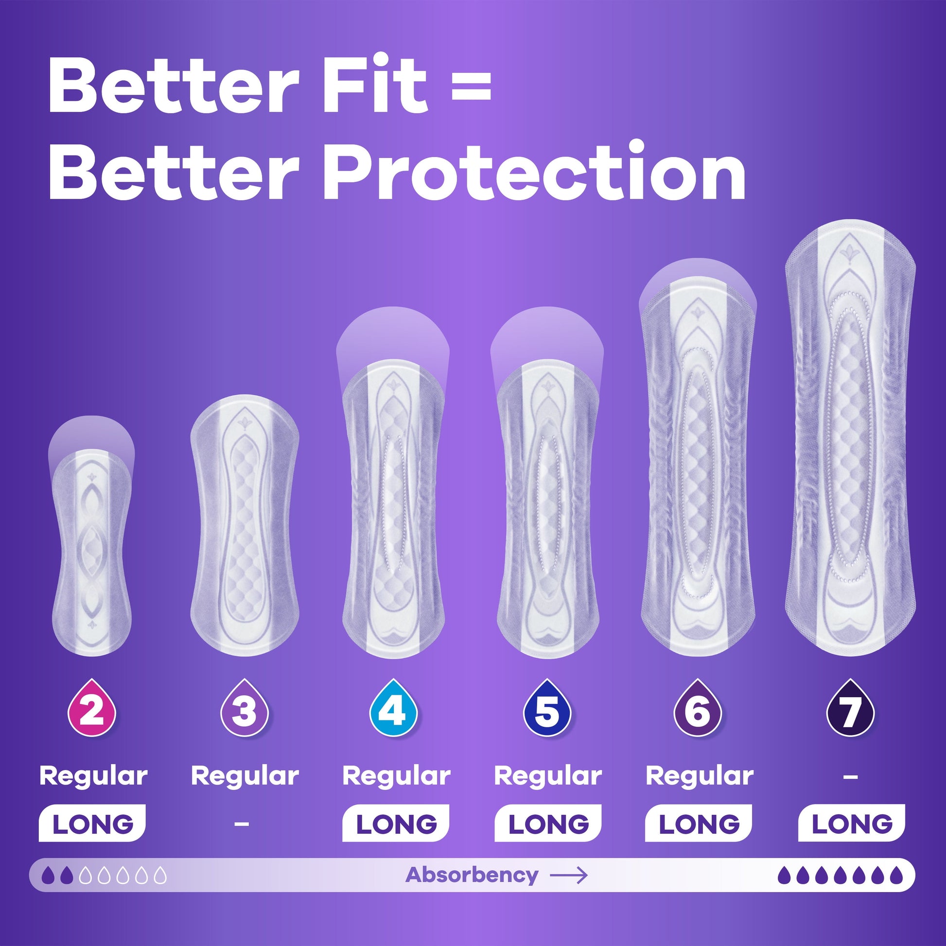 - FIND THE RIGHT PAD SIZE FOR YOU using the Always Discreet My Fit size chart