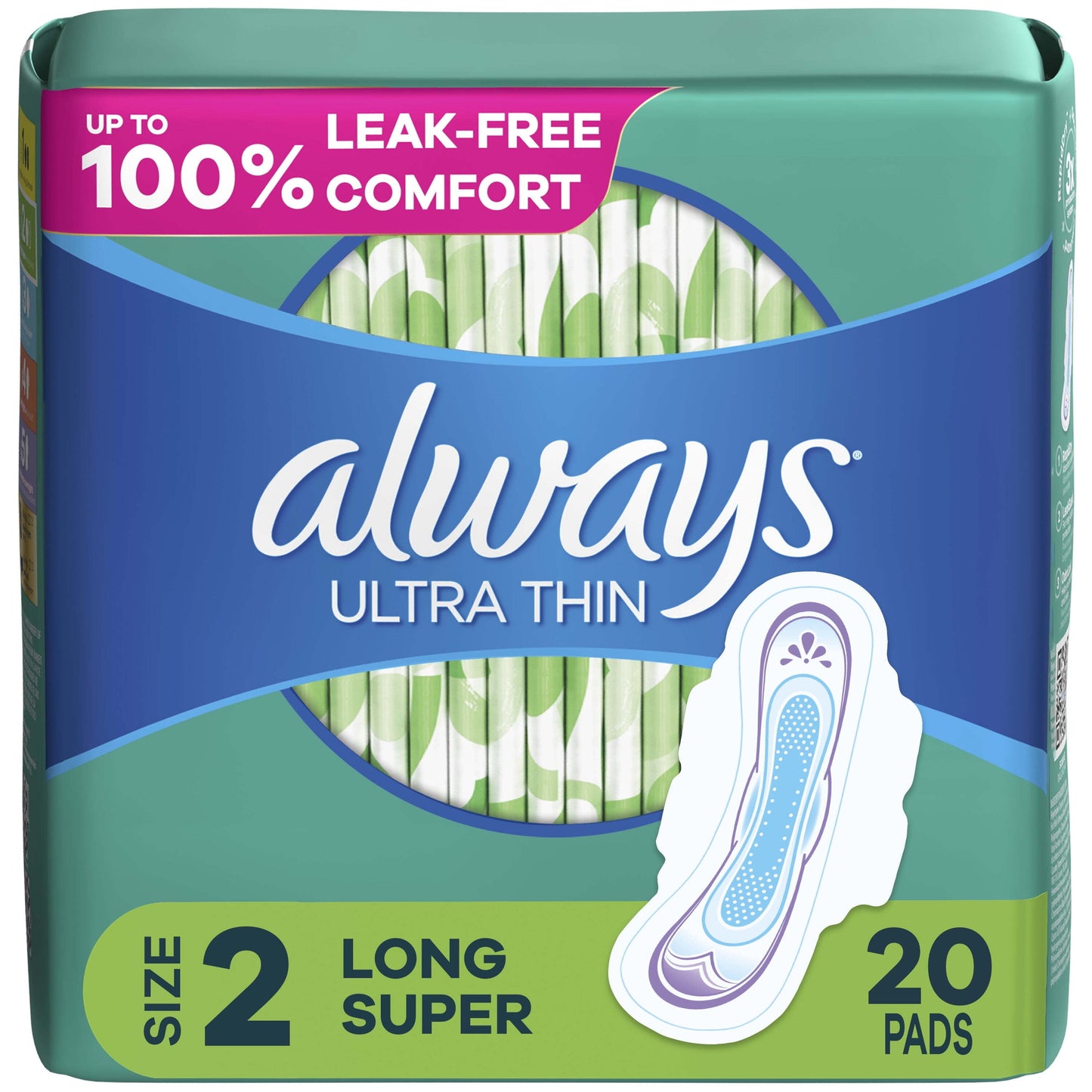 Always Ultra Thin Pads with Wings, Size 2, Long Super Absorbency, 20 CT