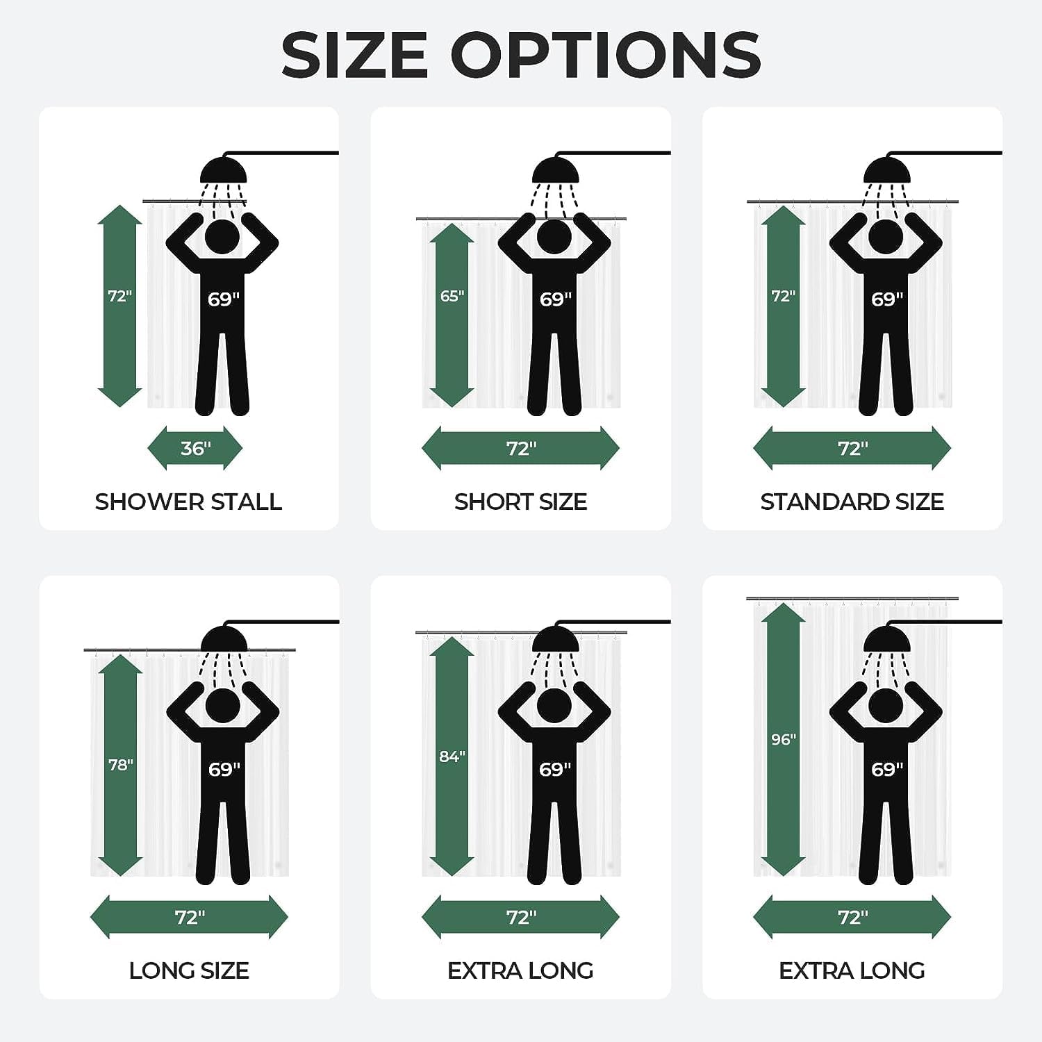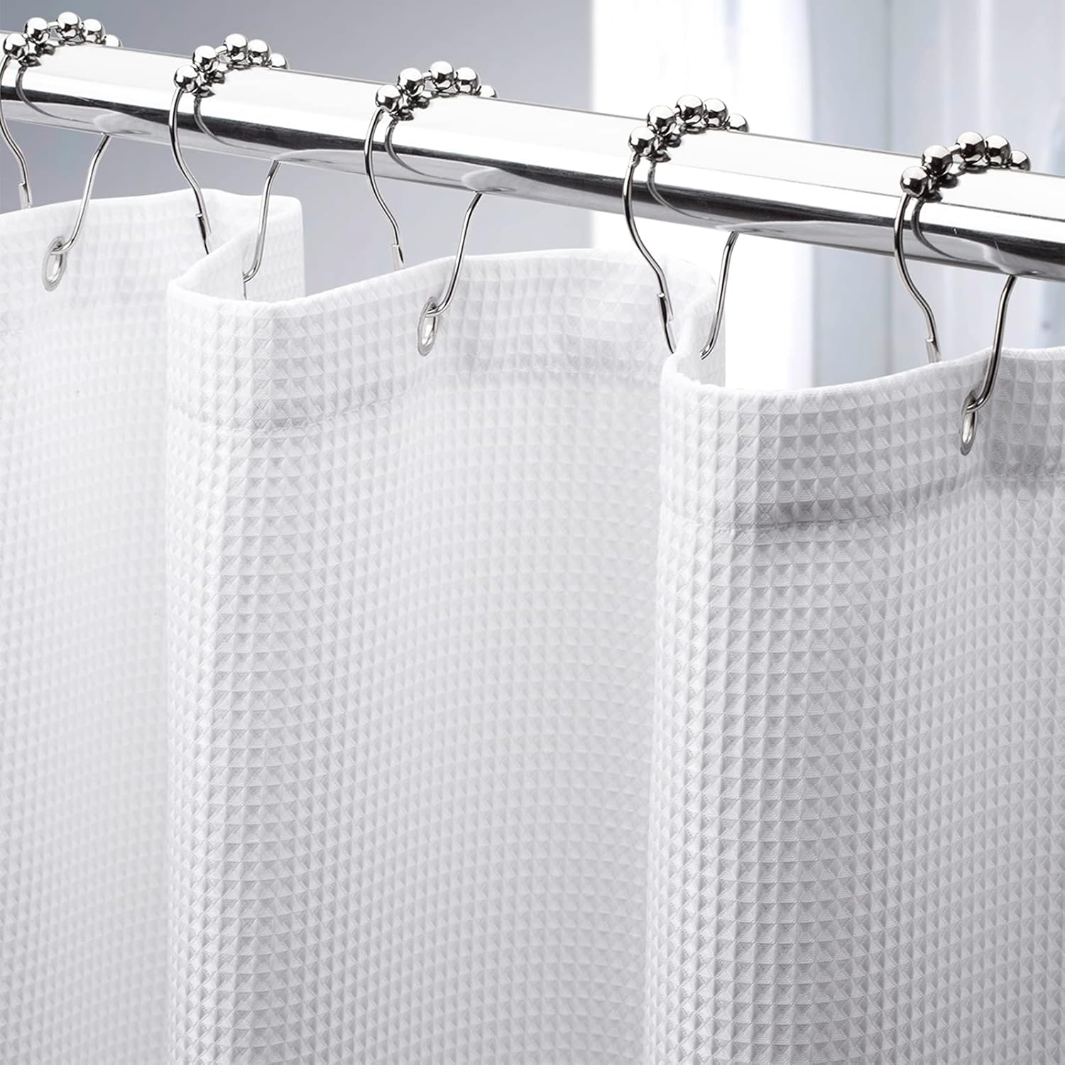 Easy installation - Each waffle shower curtain has 12 rust-resistant metal grommets which fit most curtain hooks. The 72x72 Inches cloth shower curtain fits most standard-sized bathtubs and showers.