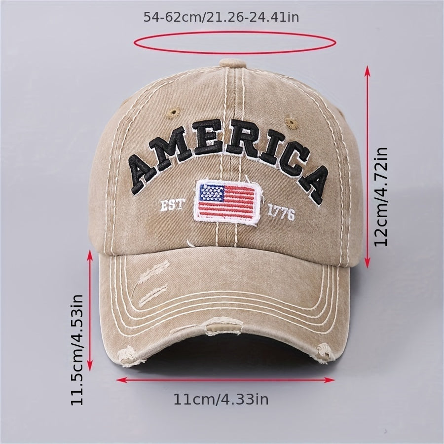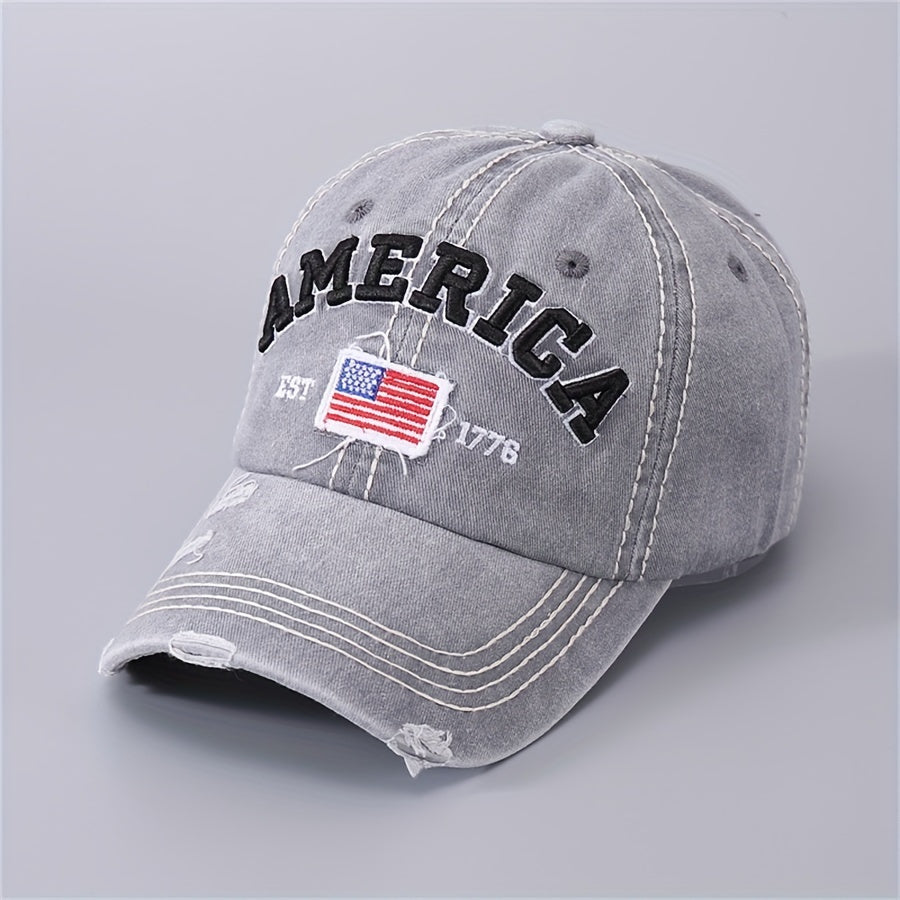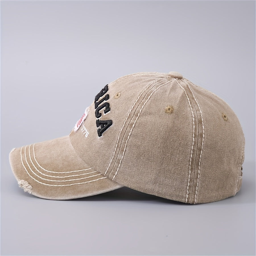 AMERICA Embroidered Baseball Cap Washed Distressed Peaked Hats Adjustable Sunshade Casual Hats For Women Men