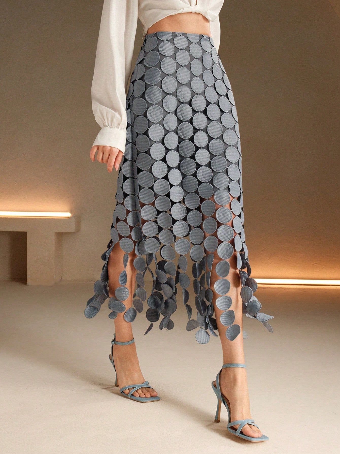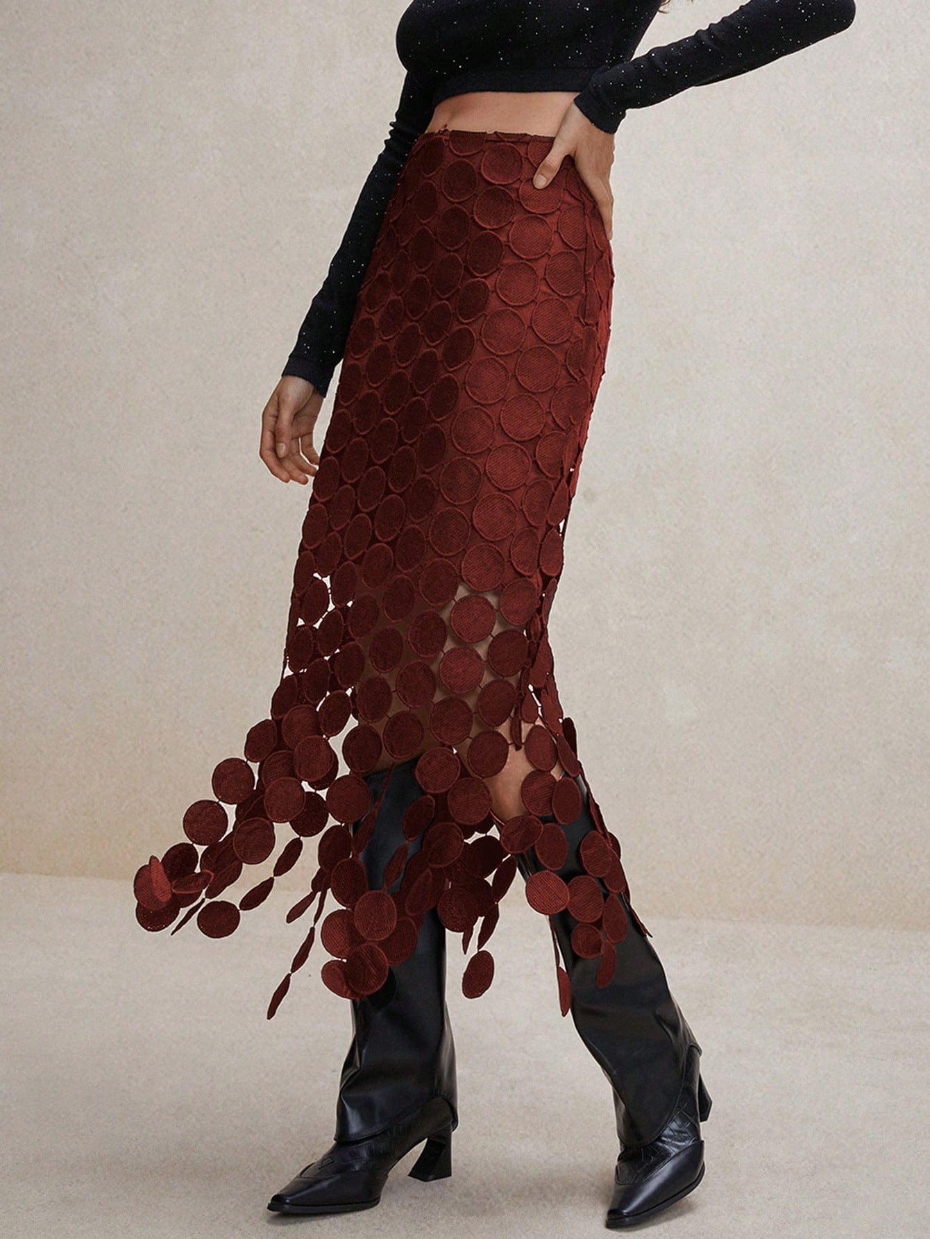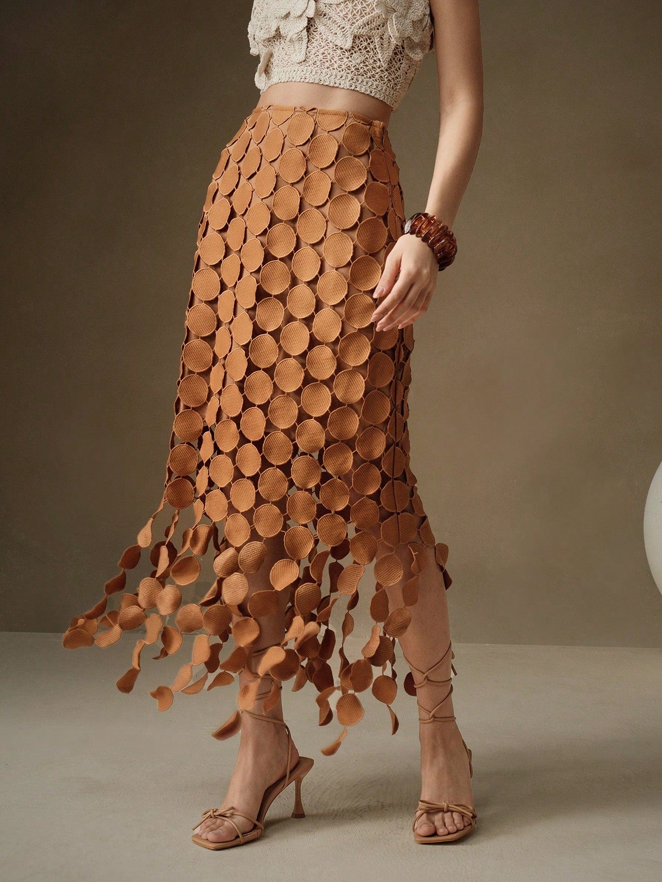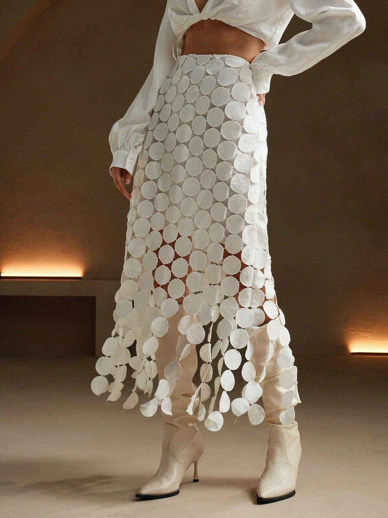 Anewsta Laser Cut Multi Circle Double Layered Skirt Maxi Women Outfit