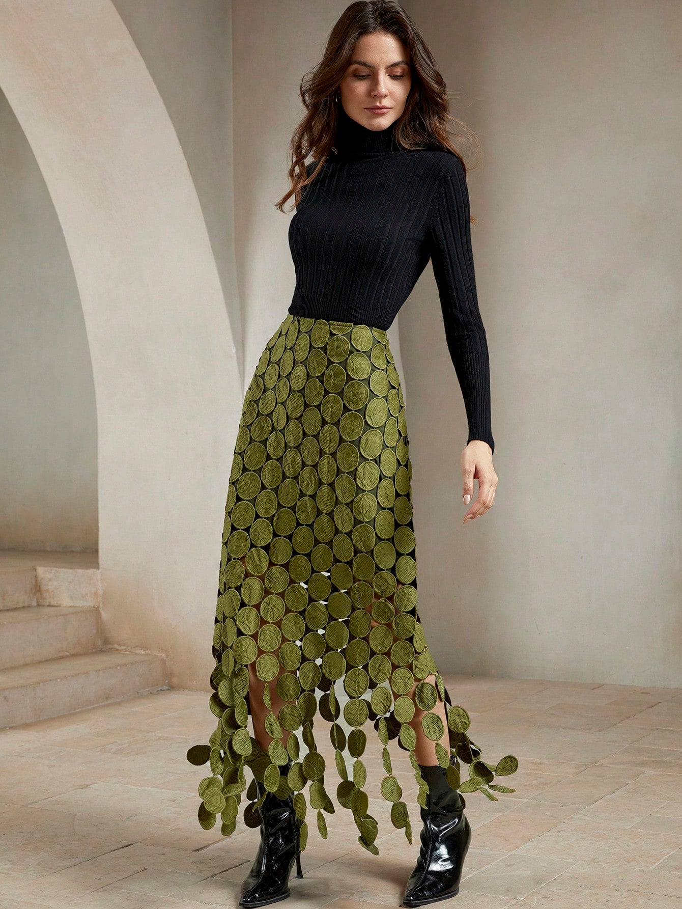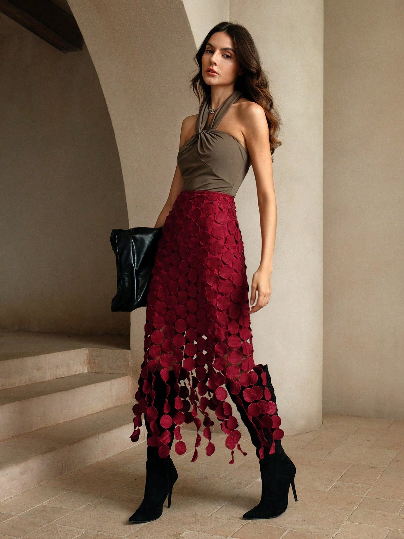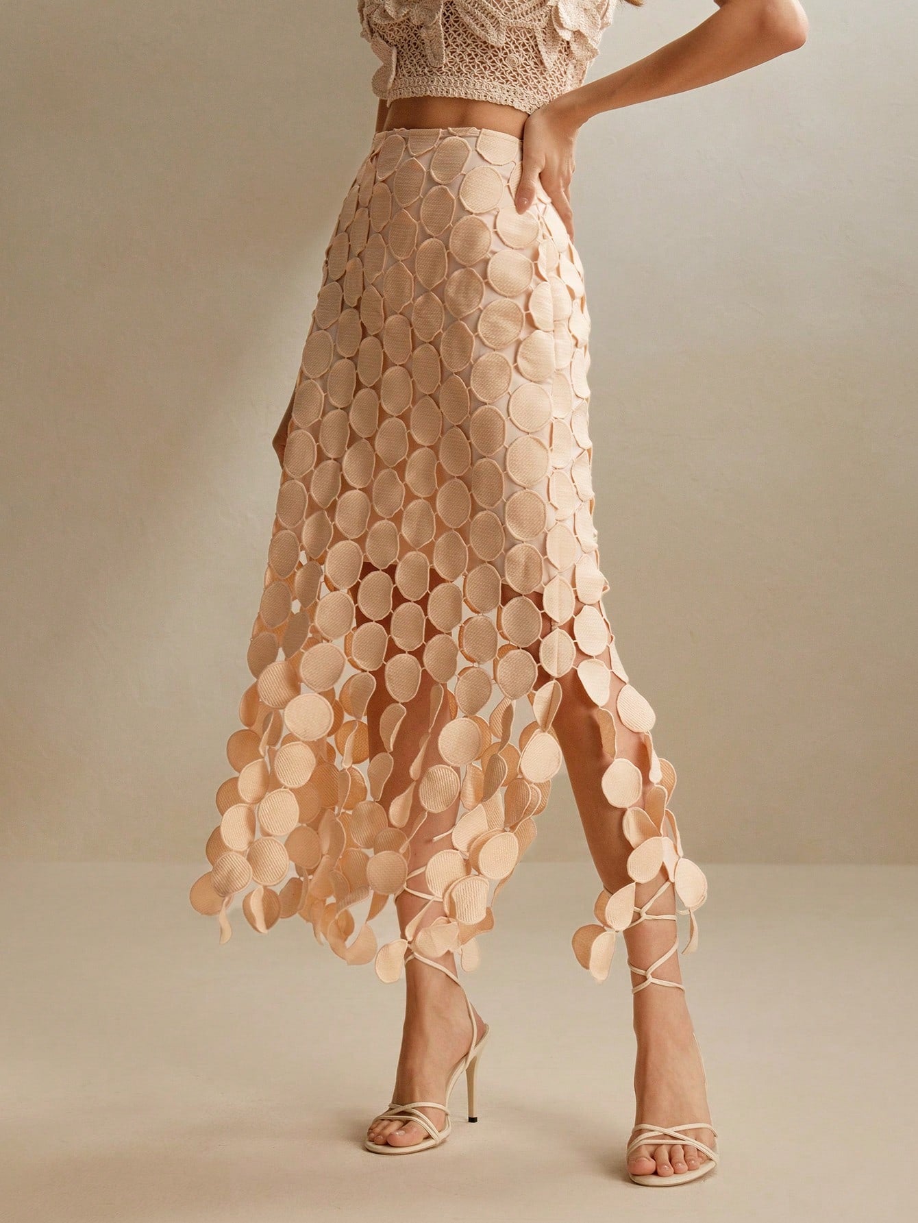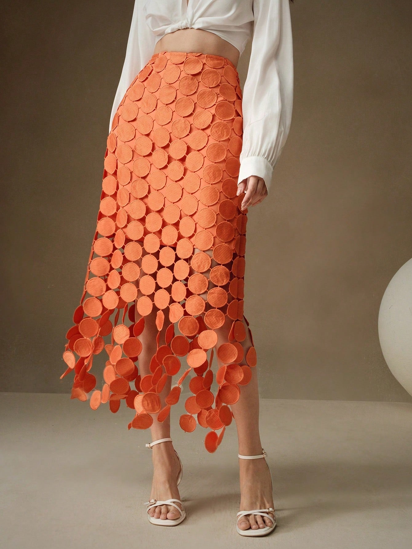 Anewsta Laser Cut Multi Circle Double Layered Skirt Maxi Women Outfit