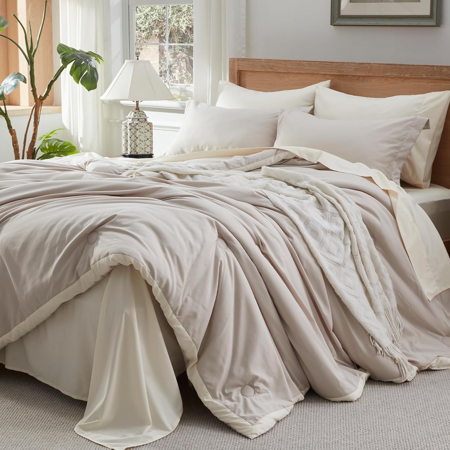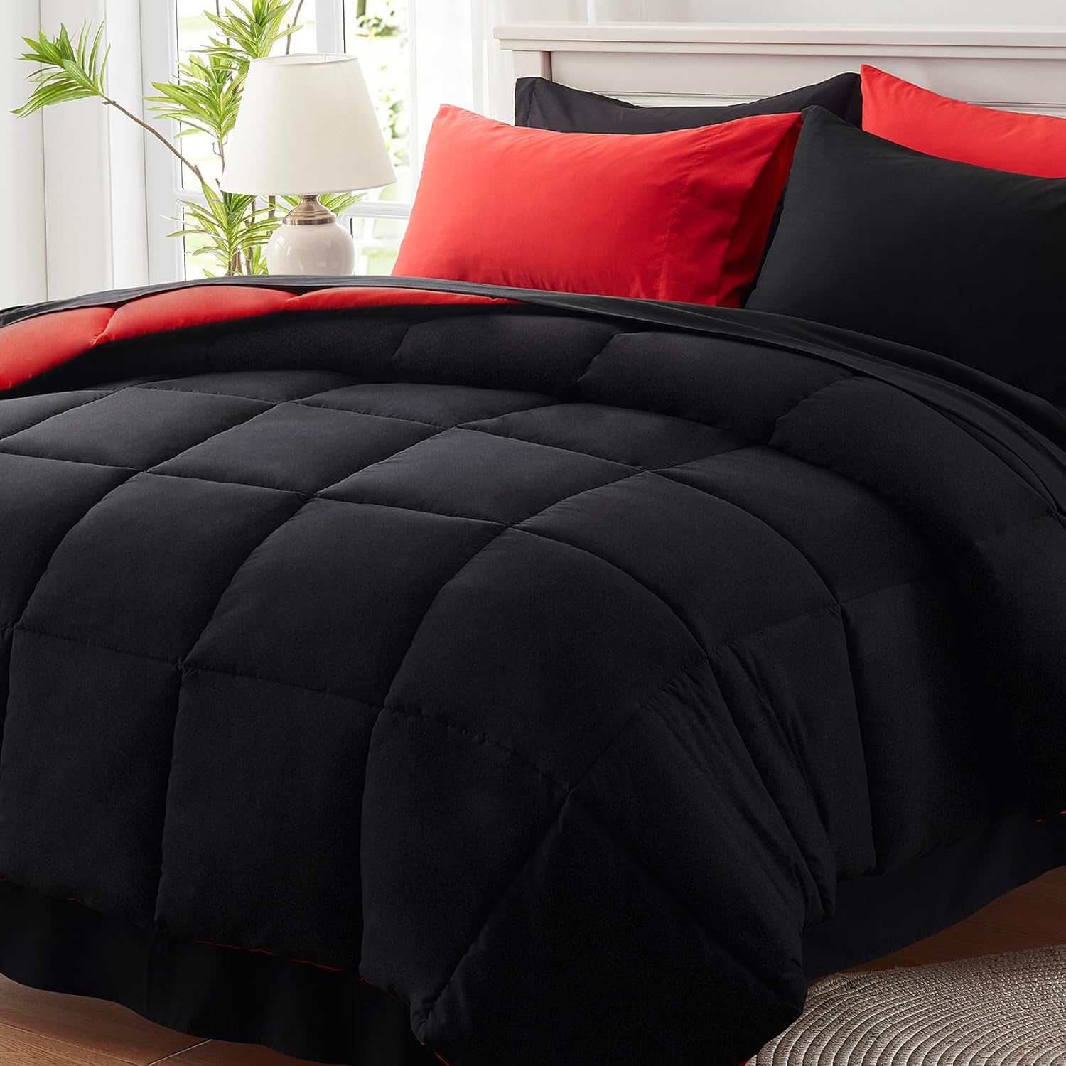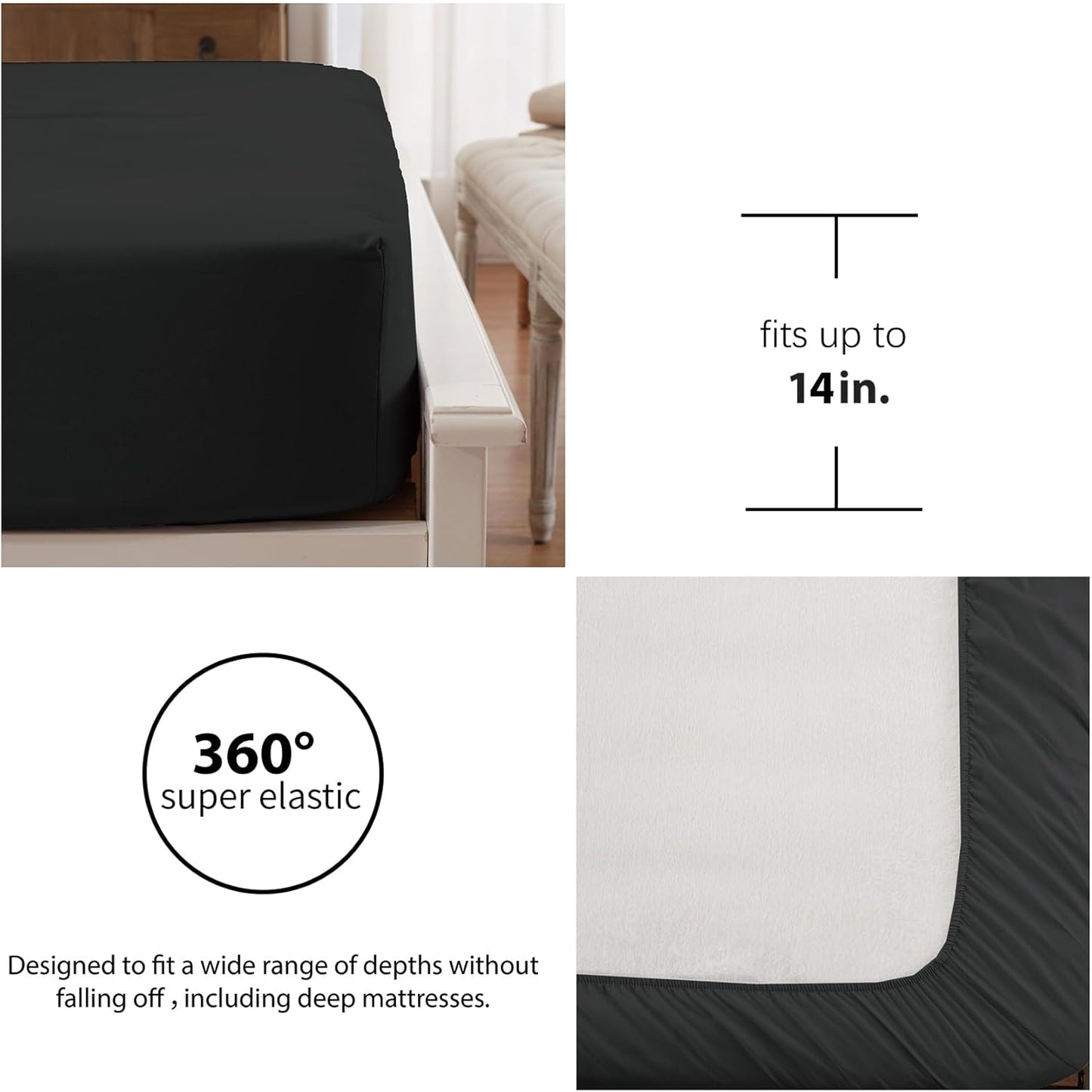【Unique design】:The double-colored design makes this comforter reversible to use; The elastic deep pocket fitted sheet fits mattress max up to 14" deep. That can always keep non-slip no matter how you twist and turn in your bed, and we use high-quality stitching to ensure this bedding set stays in use for a long time.