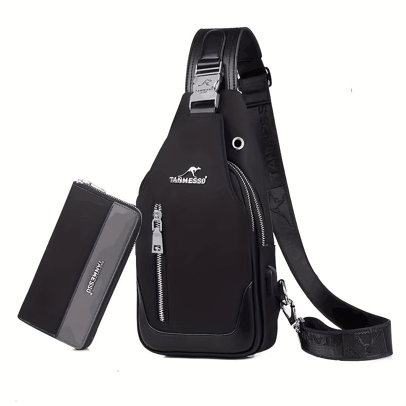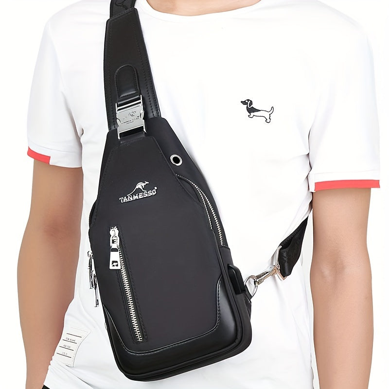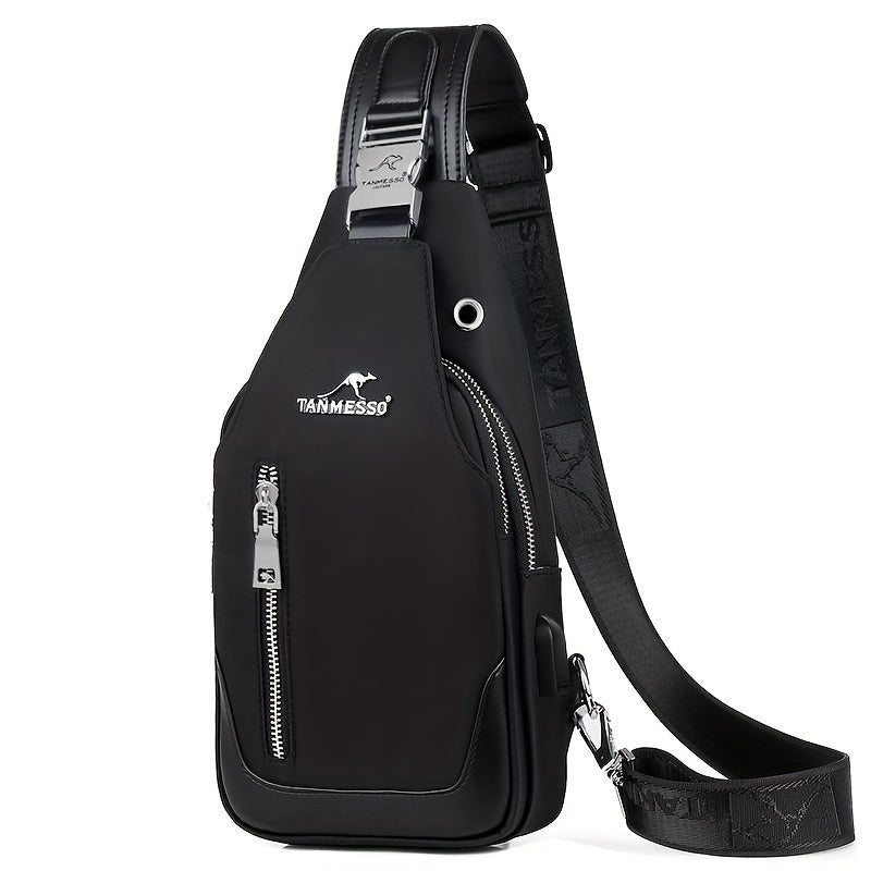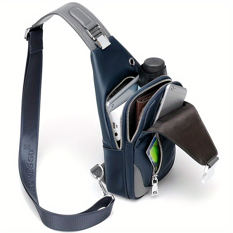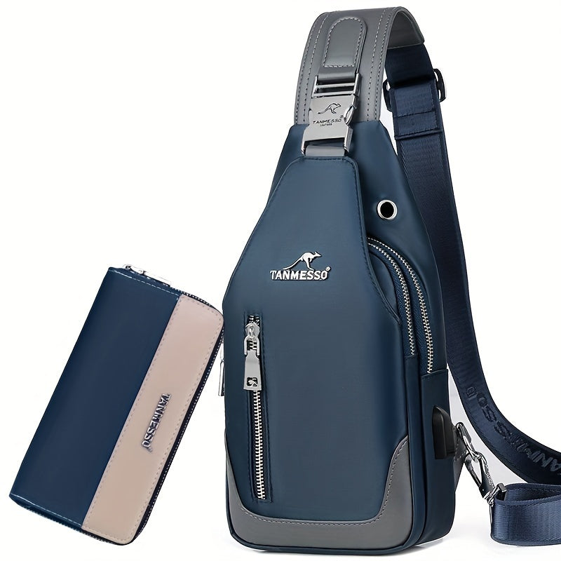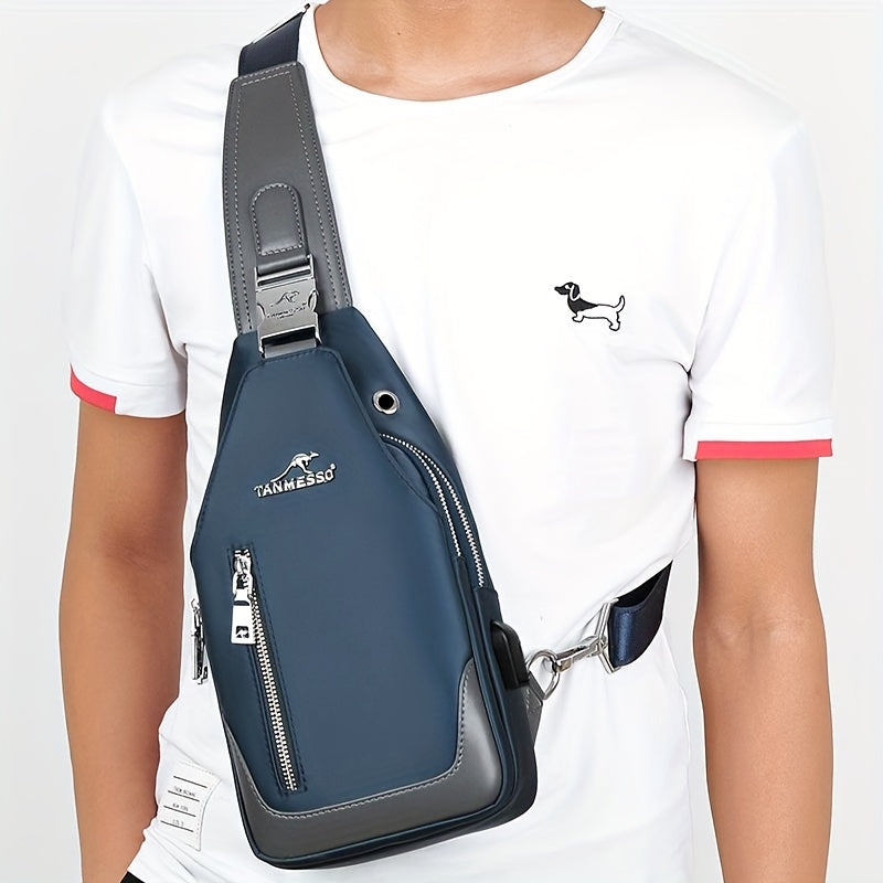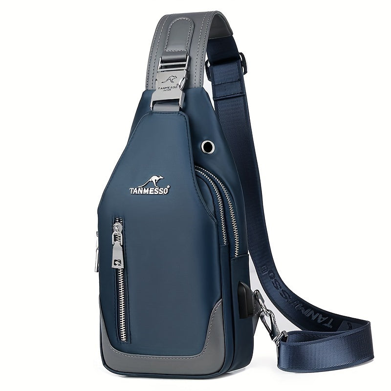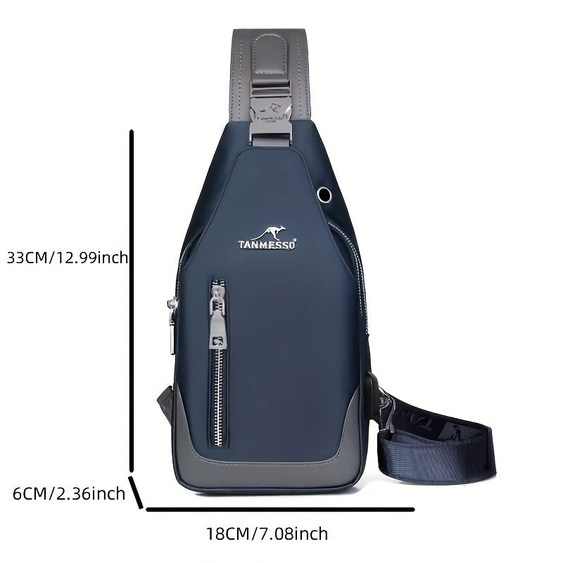[Anti-Theft Oxford Bag] Stylish Dark Blue TANMESSO Men's Anti-Theft Oxford Chest Bag - Multiple Zippered Compartments, Adjustable Strap & USB Charging Port Sling Backpack