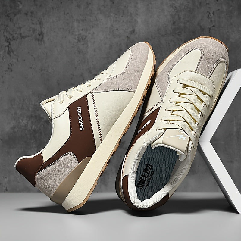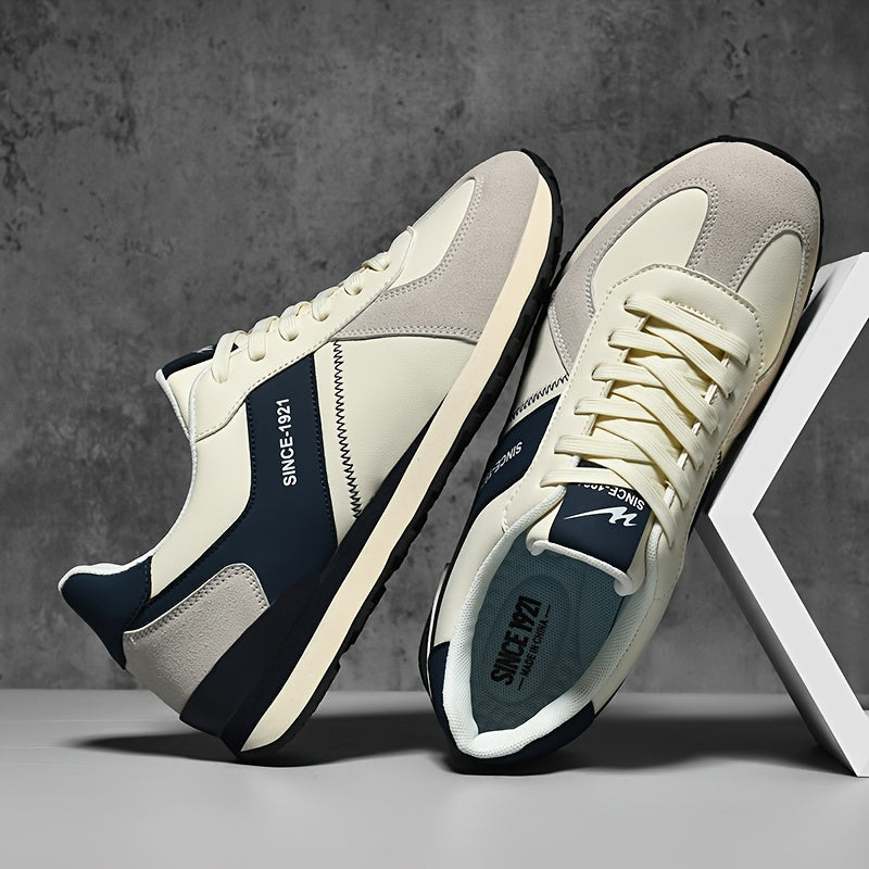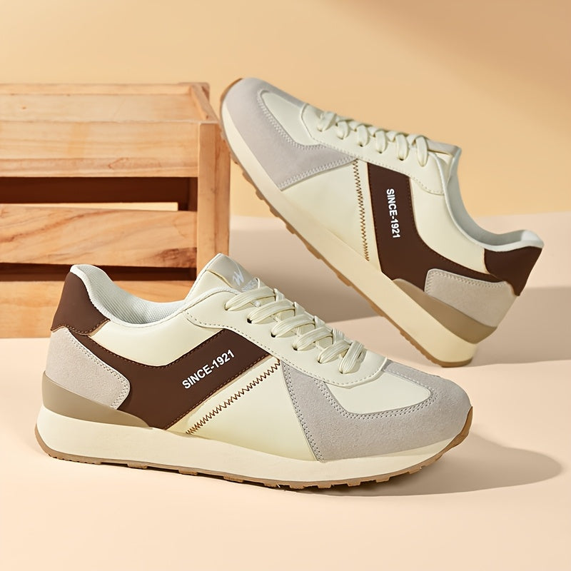 AOPLUS Women'S Lightweight Casual Sneakers - Low-Top Lace-Up Design, Breathable PU Upper & Fabric Lining, Cushioned Rubber Sole, White/Beige/Black Colorway for All-Season Comfort, Everyday Comfort Shoes, Modern Laceup Shoes, Durable Traction Footwear