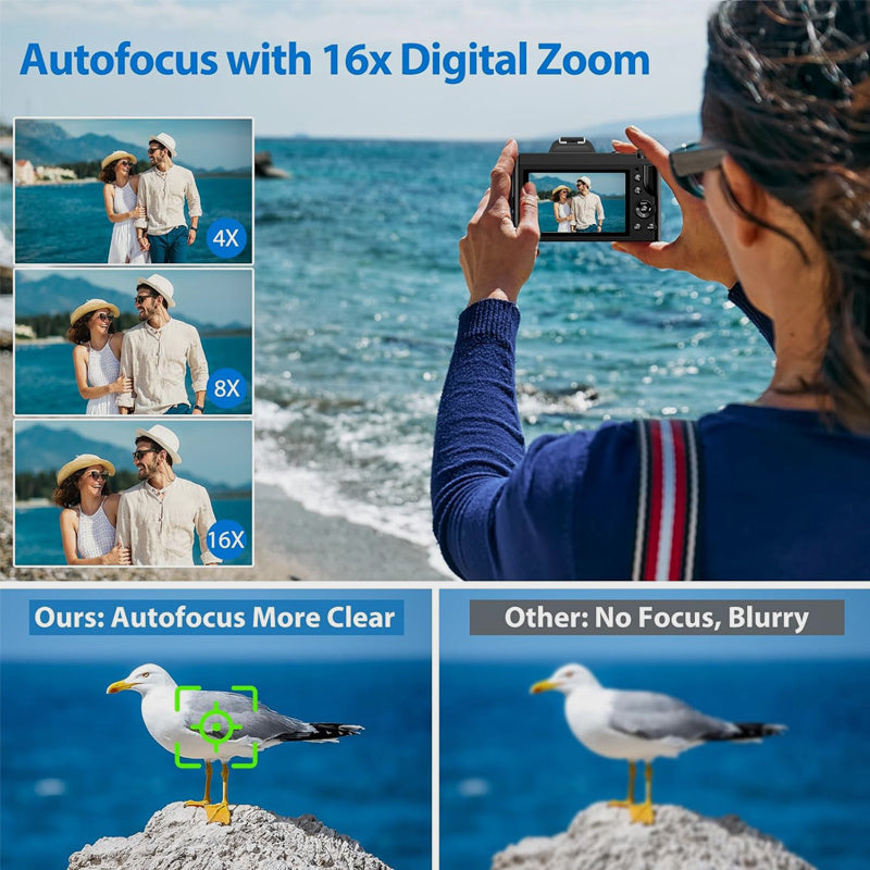 Appareil Photo Numérique Compact SEREE 1080P avec Écran LCD de 2.4", Zoom 16x & Grand Angle - Corps en Plastique Durable, Chargement USB - Idéal pour les Voyages & Cadeaux