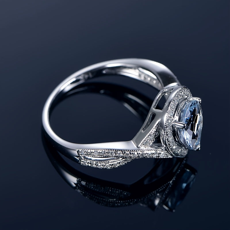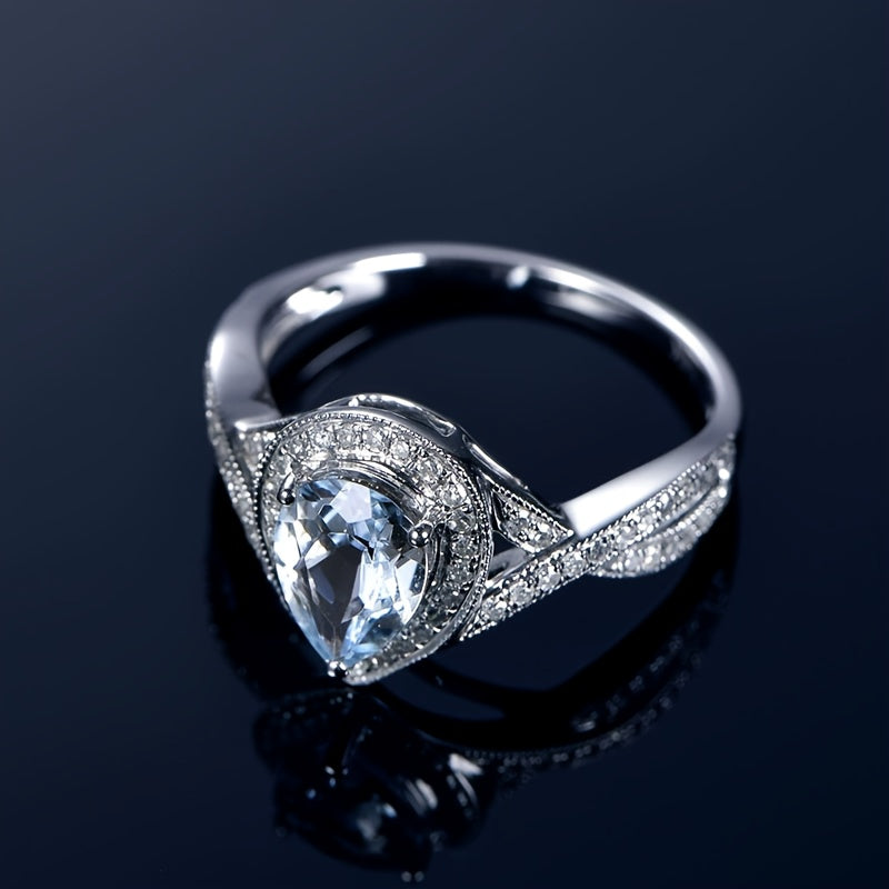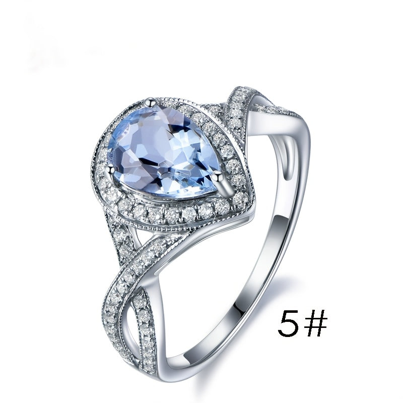 Aquamarine Ring for Women Aquamarine Fashion Pear Sterling Silver Moissanite Promise Wedding Engagement Women's Ring (5-9)
