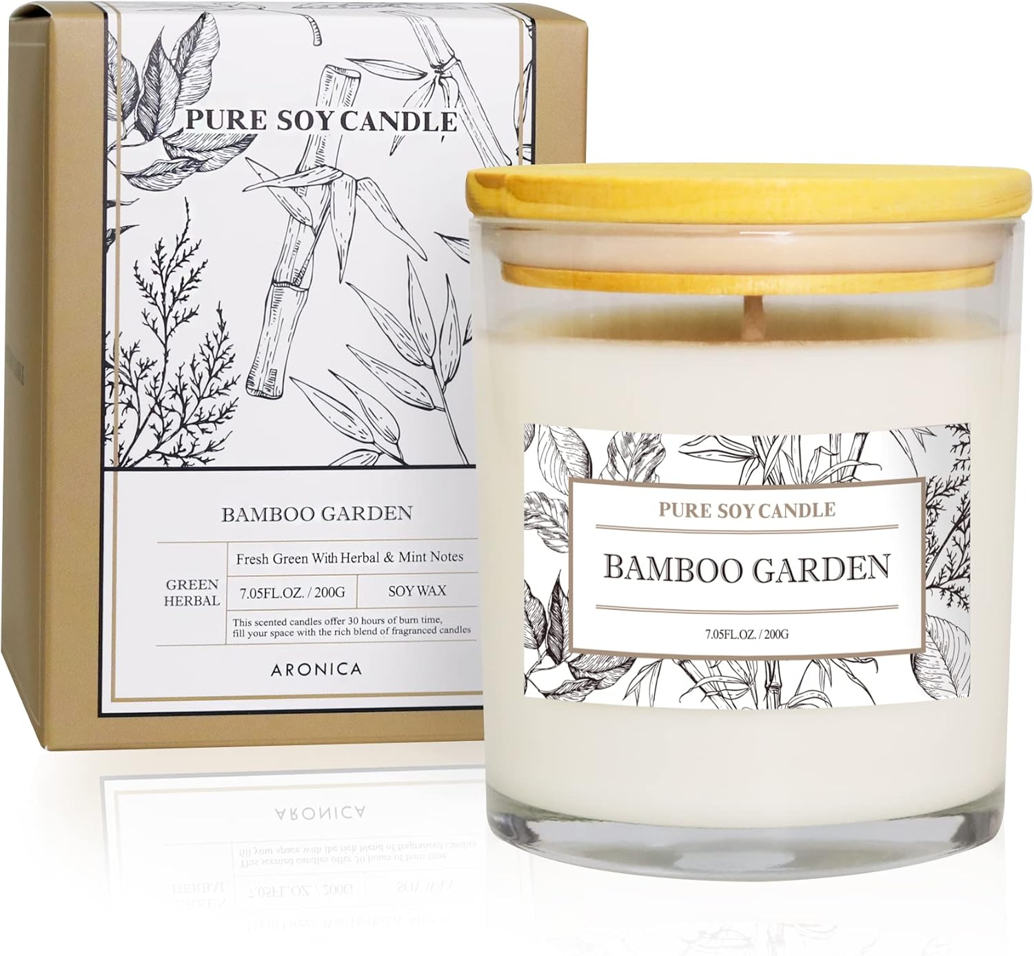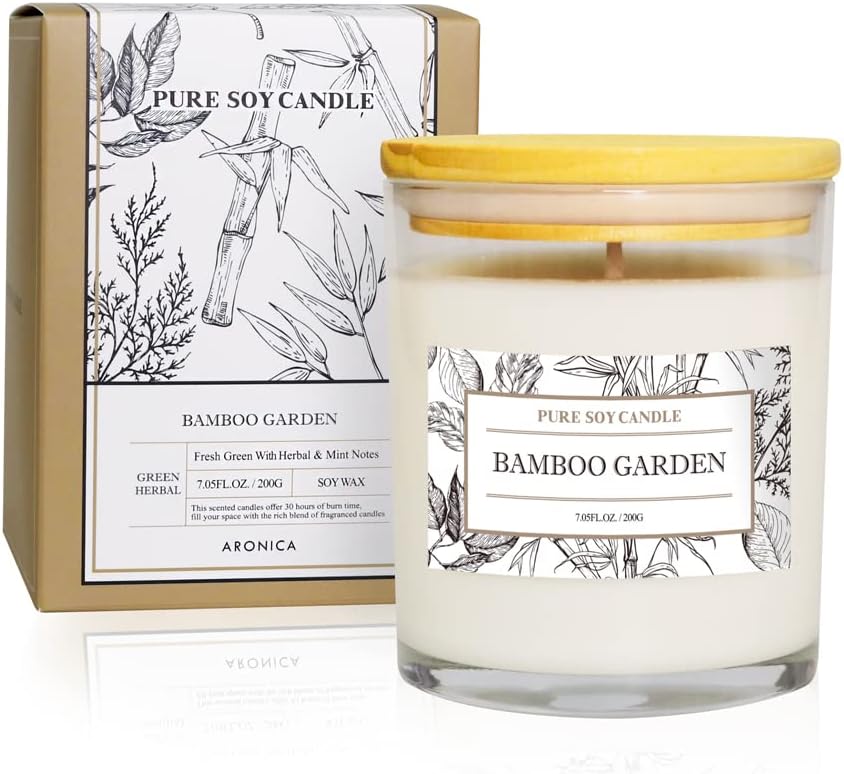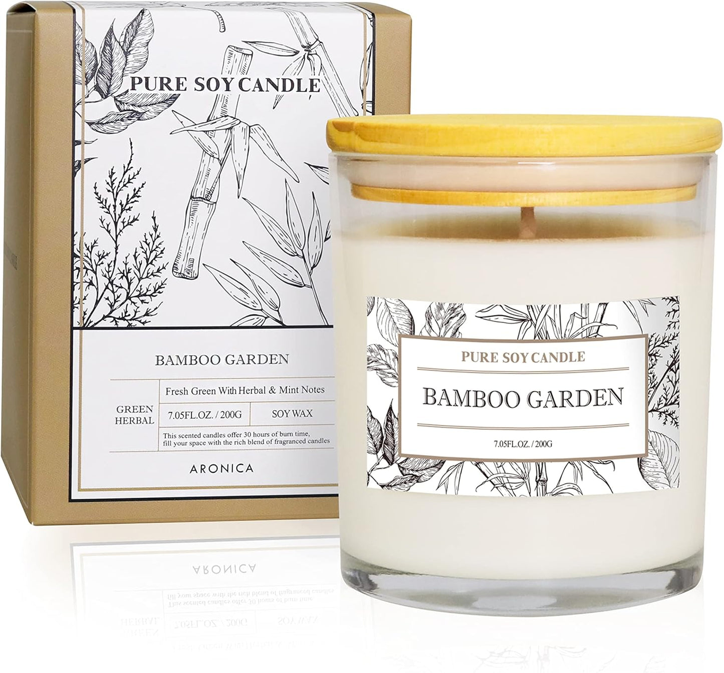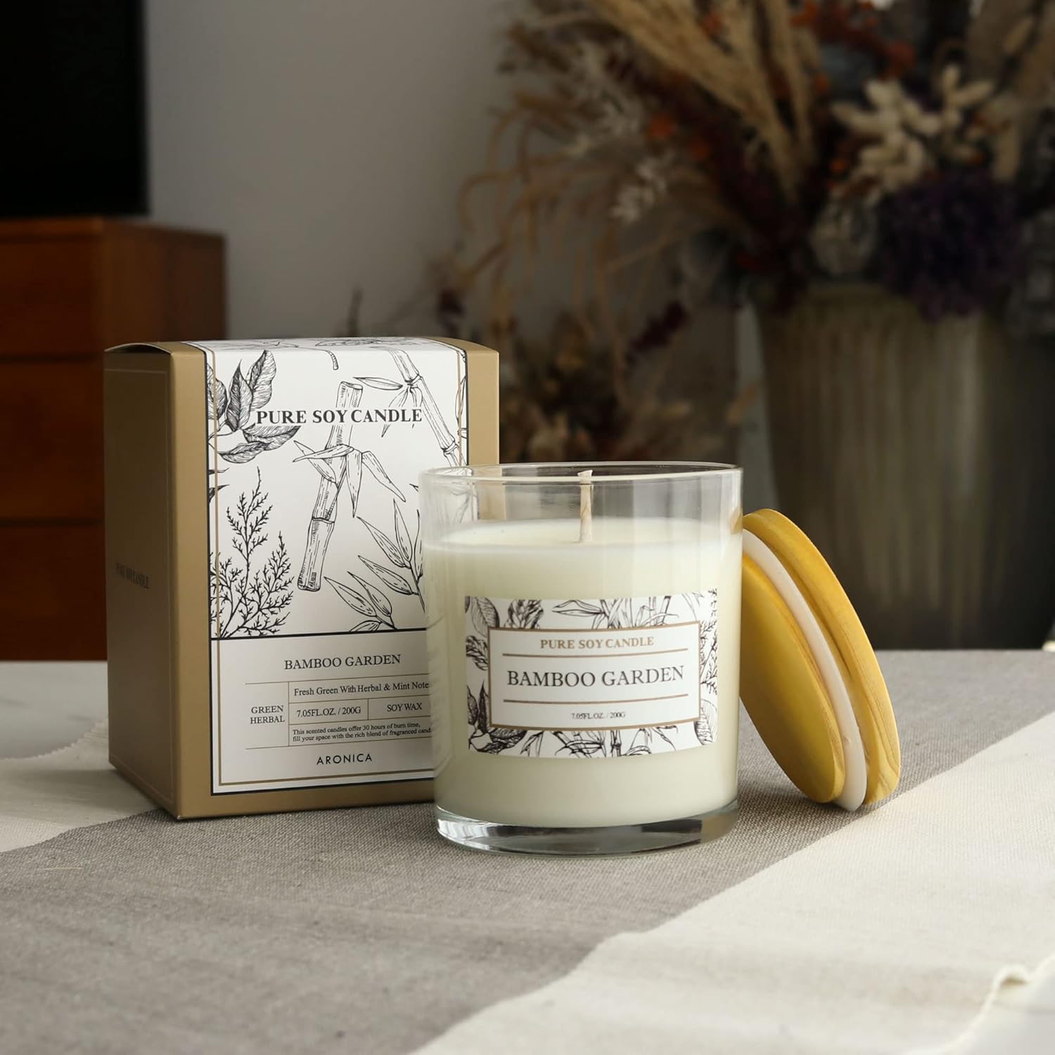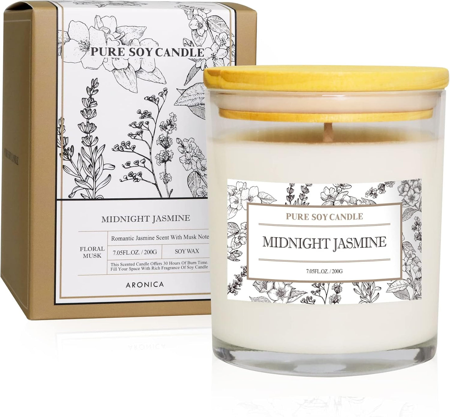Aronica High End Hostess Gifts for Woman, Bamboo Jasmine Candle, Soy Candles for Home Scented, Non Toxic New Home Candle, Natural Summer Candles