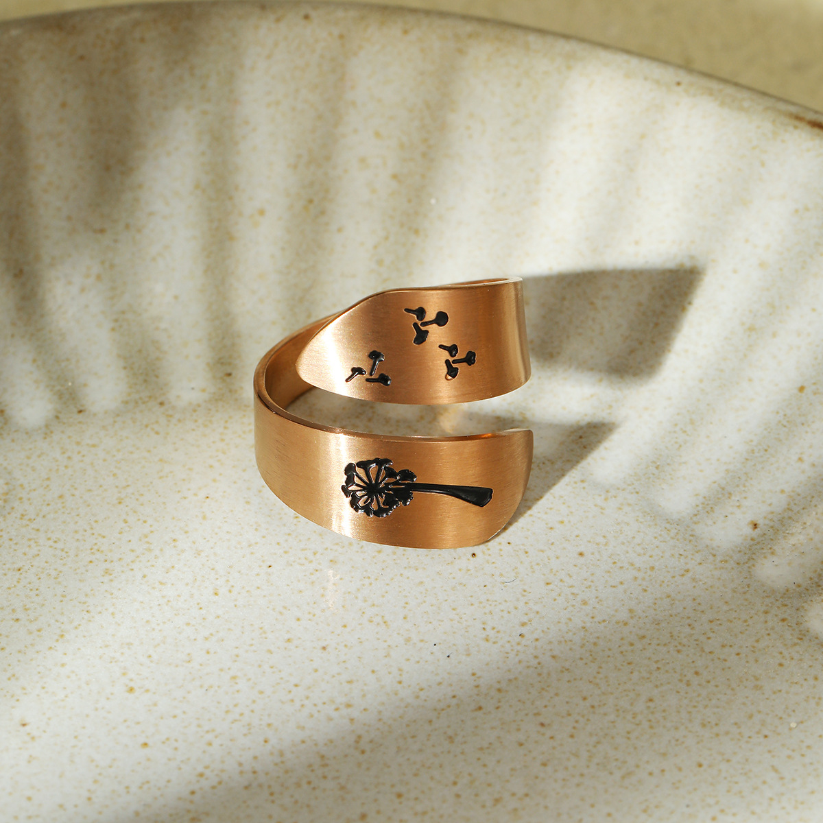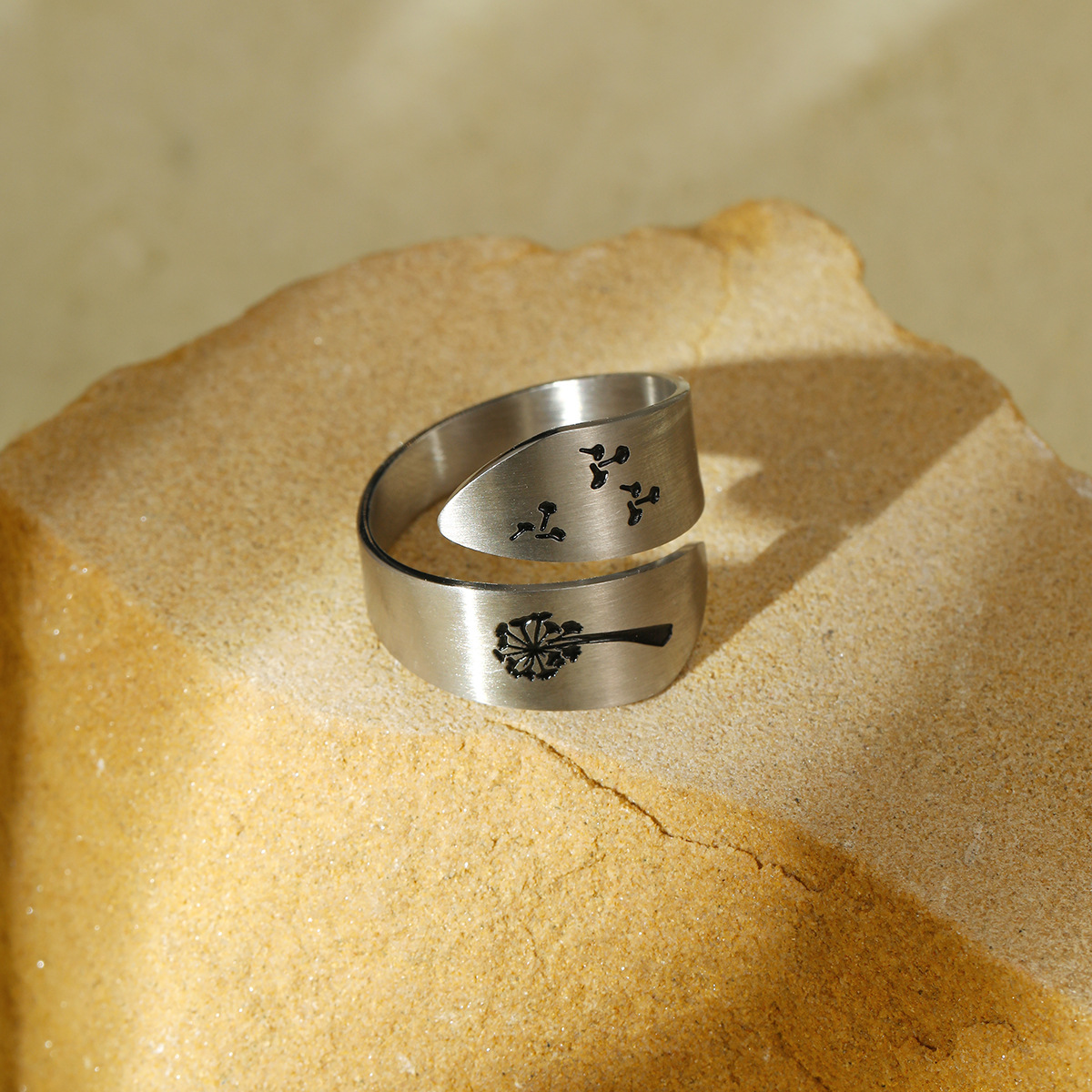 Arrival Corrosion Dripping Dandelion Titanium Steel Open End Ring Printing Casual Stainless Steel Adjustable Ring