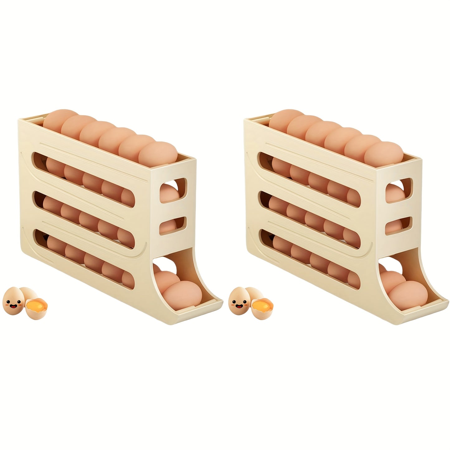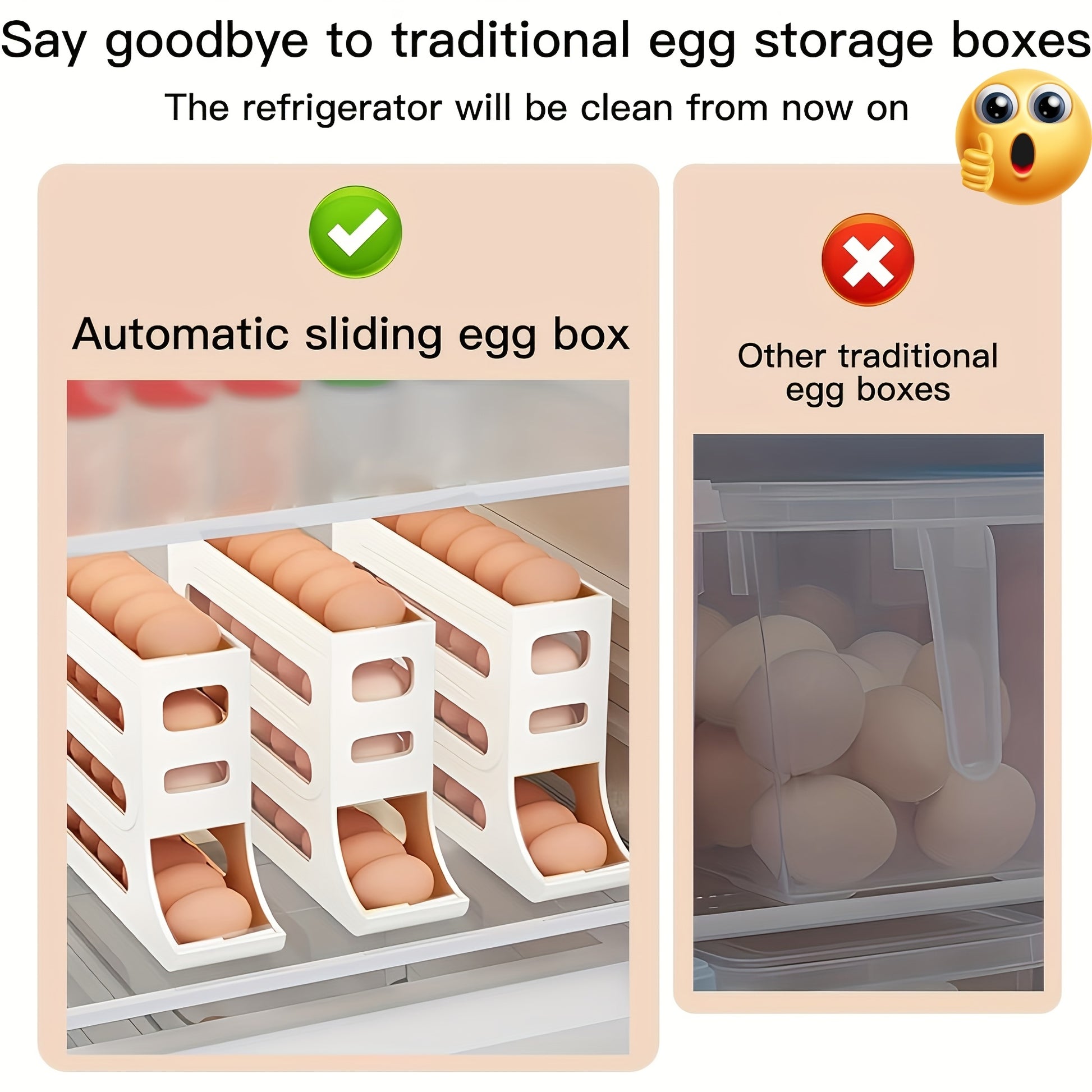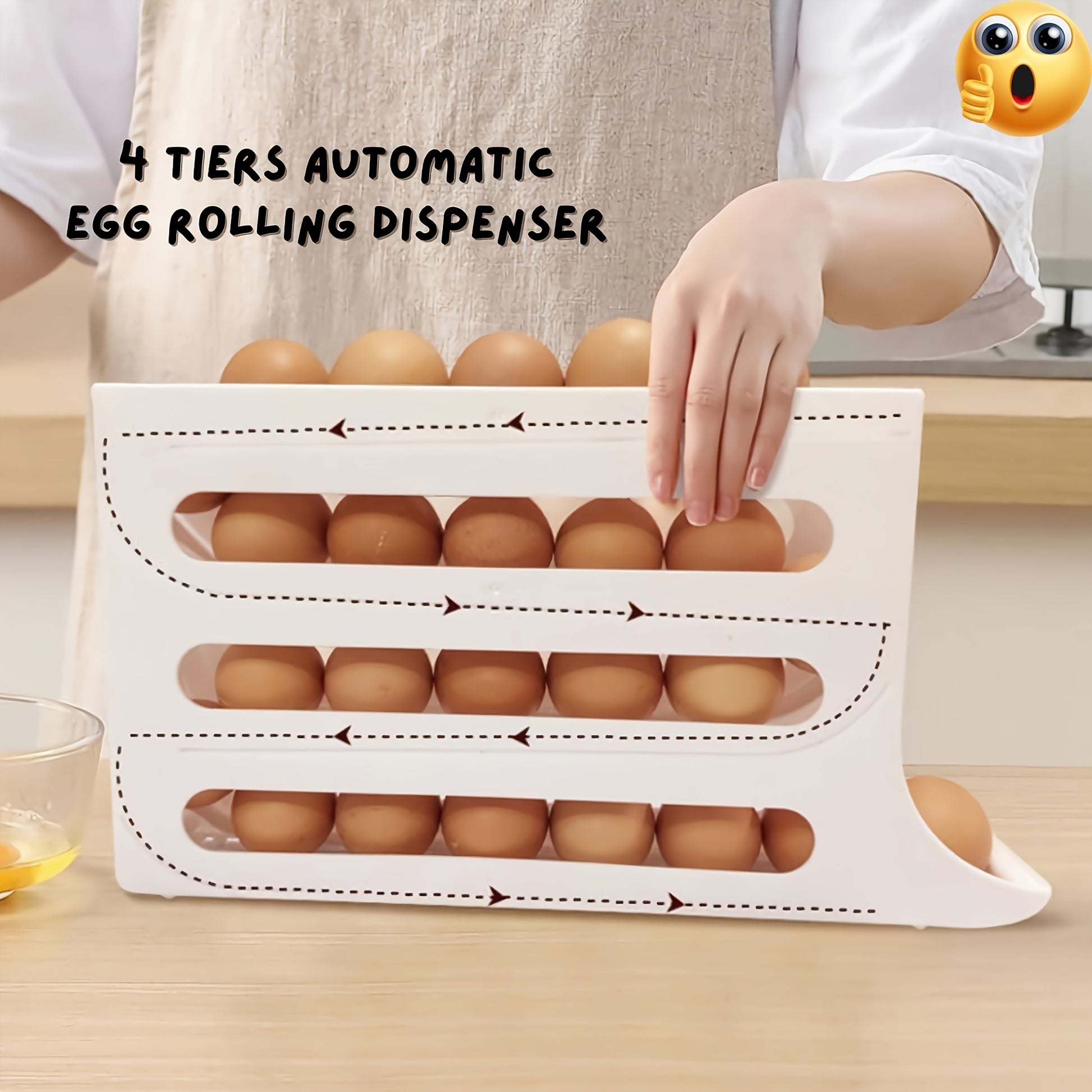 Automatic Egg Dispenser Automatic 5-Color 30-Egg Storage Box, Refrigerator Organizer - Space-Saving 4-Tier Large Capacity Egg Holder with Rolling Egg Dispenser