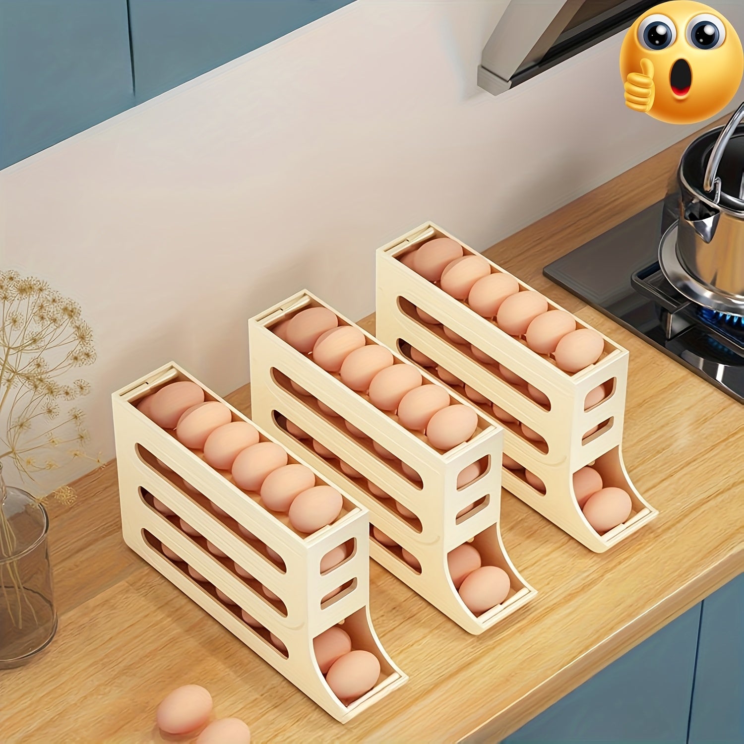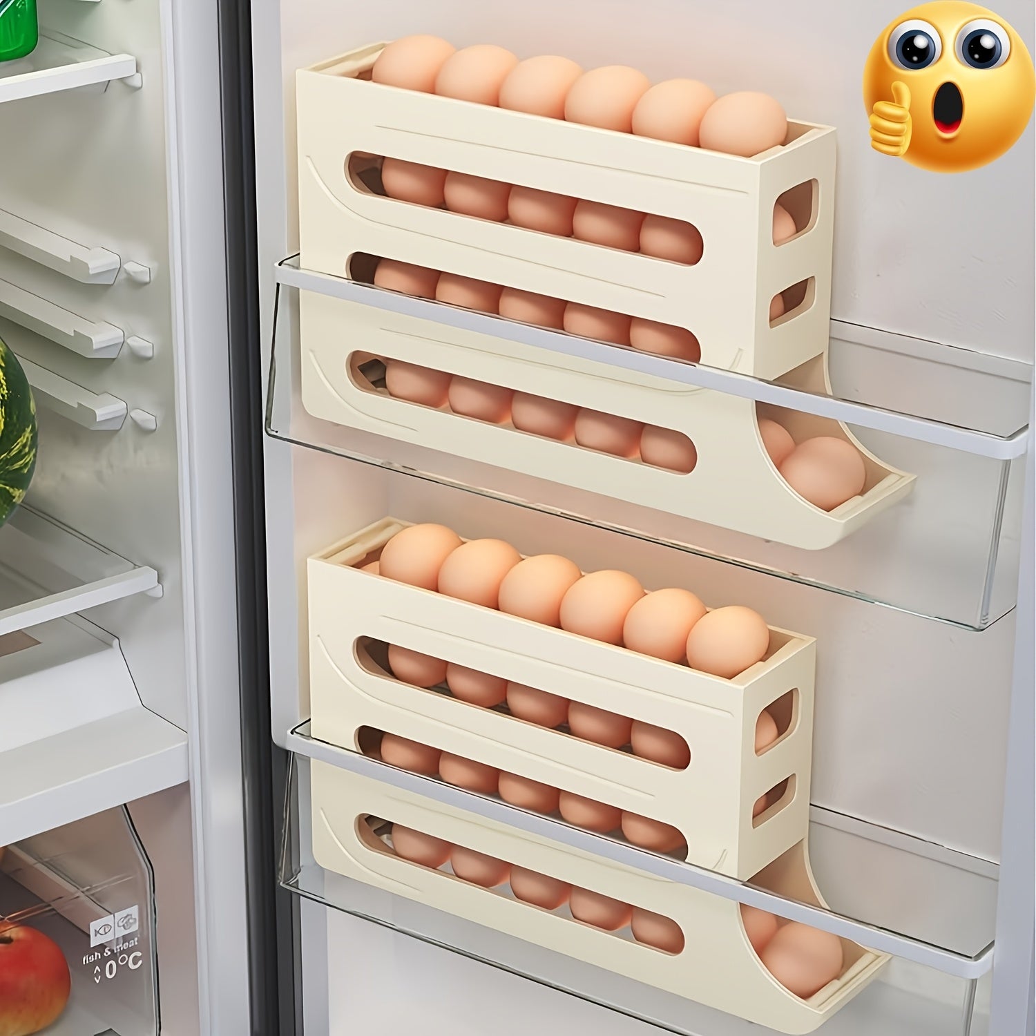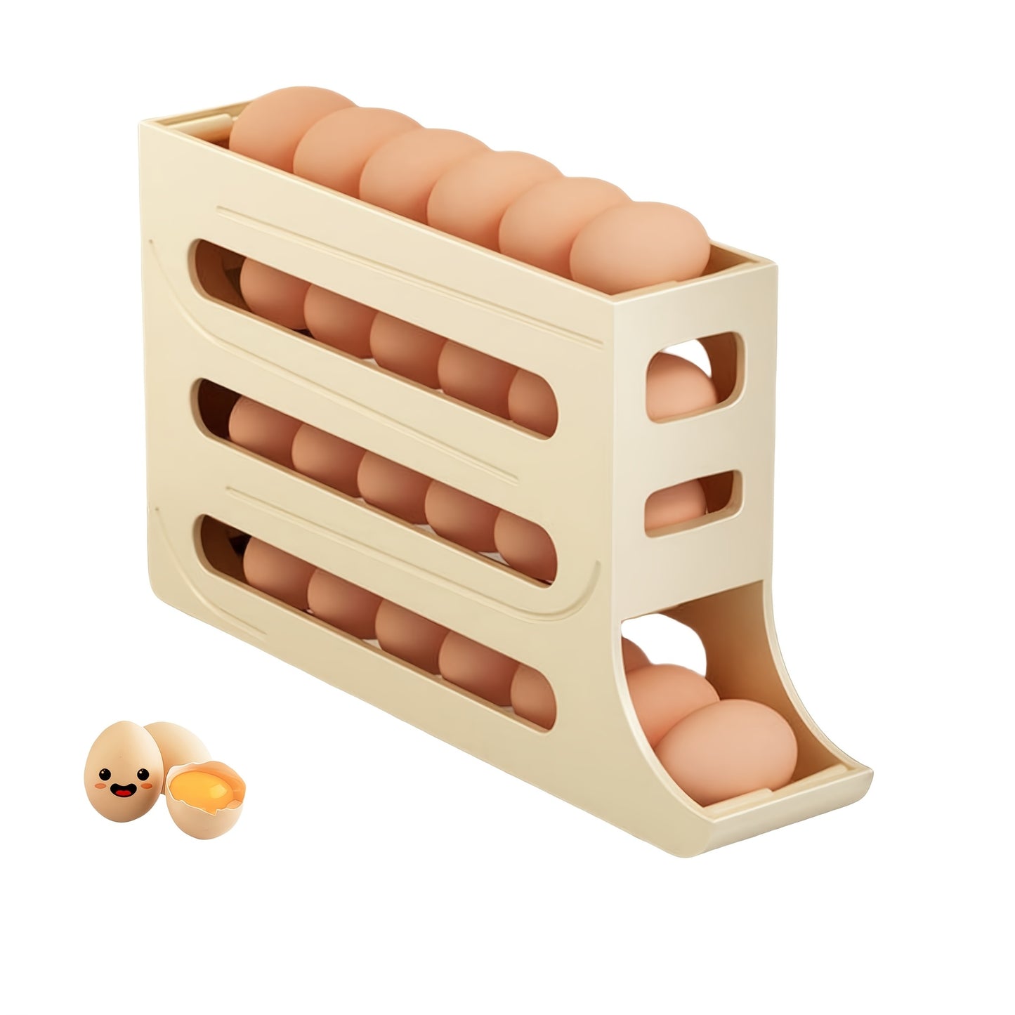 Automatic Egg Dispenser Automatic 5-Color 30-Egg Storage Box, Refrigerator Organizer - Space-Saving 4-Tier Large Capacity Egg Holder with Rolling Egg Dispenser