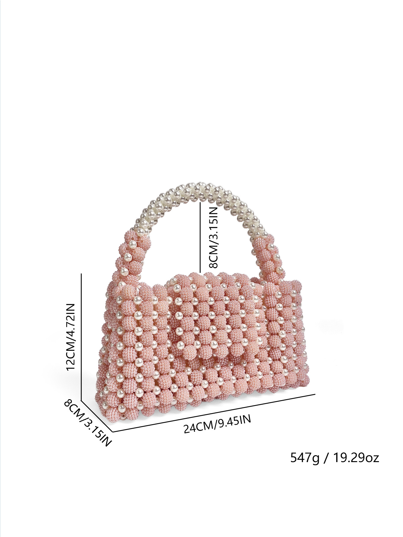 Autumn Textured Niche Advanced Pink Waxberry Pearl Ball Handmade Beaded Handbag