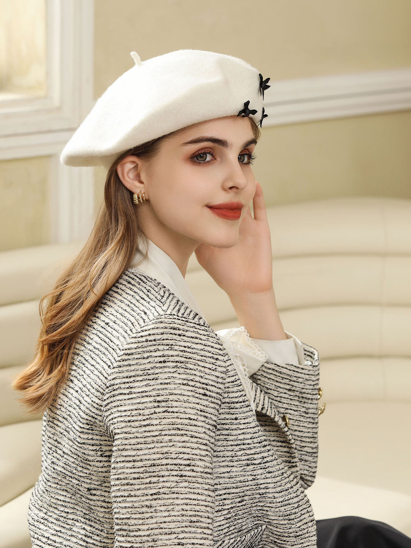 Autumn Winter Daily Niche Sweet Bow Retro Face Looking Small Beret Painter Cap