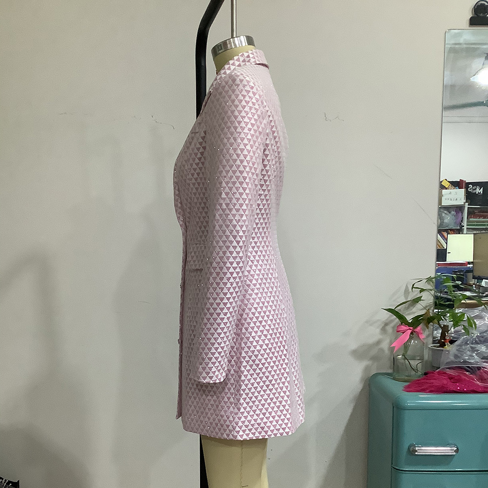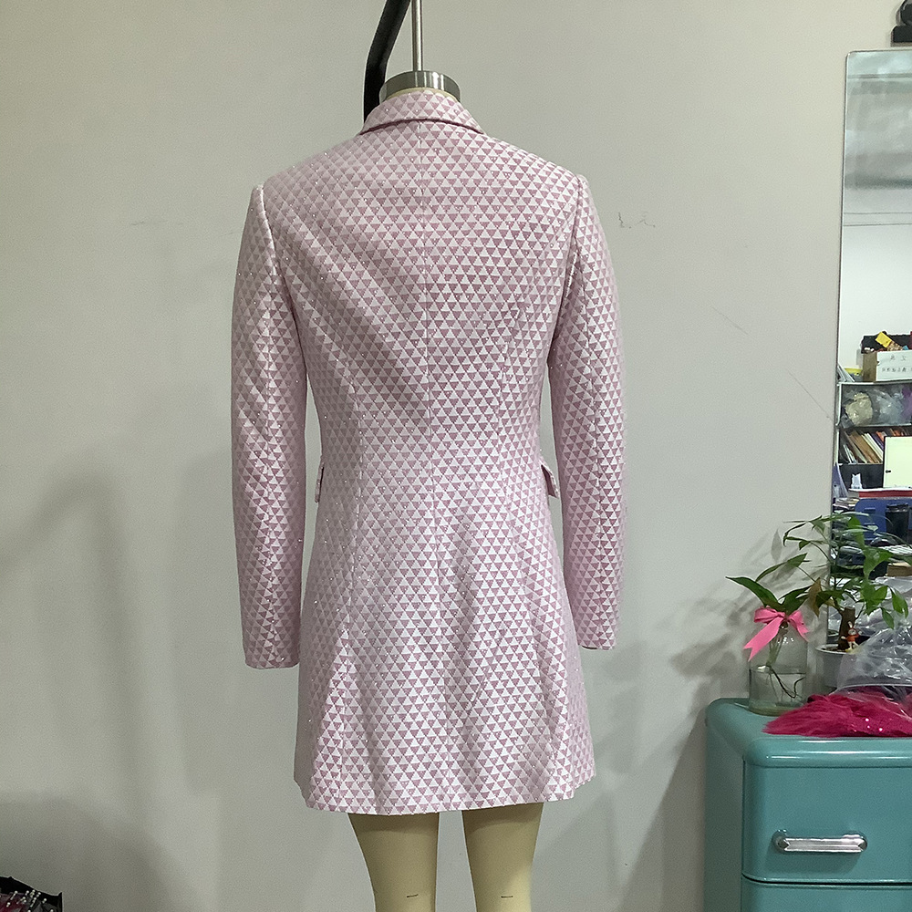 Autumn Winter V neck Sequ Collared Slim Fit Slimming Long Sleeves Thin Coat Blazer Dress
