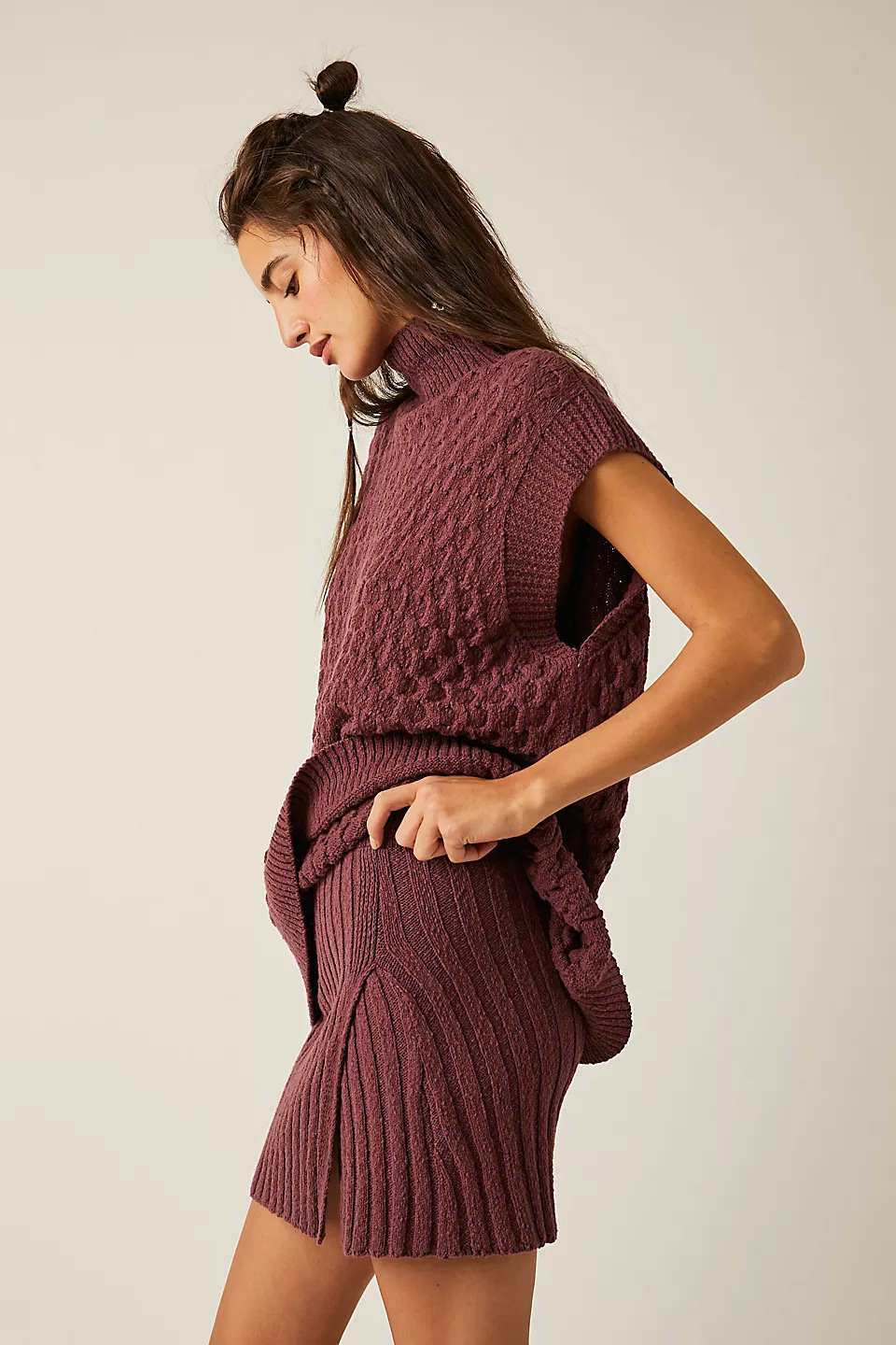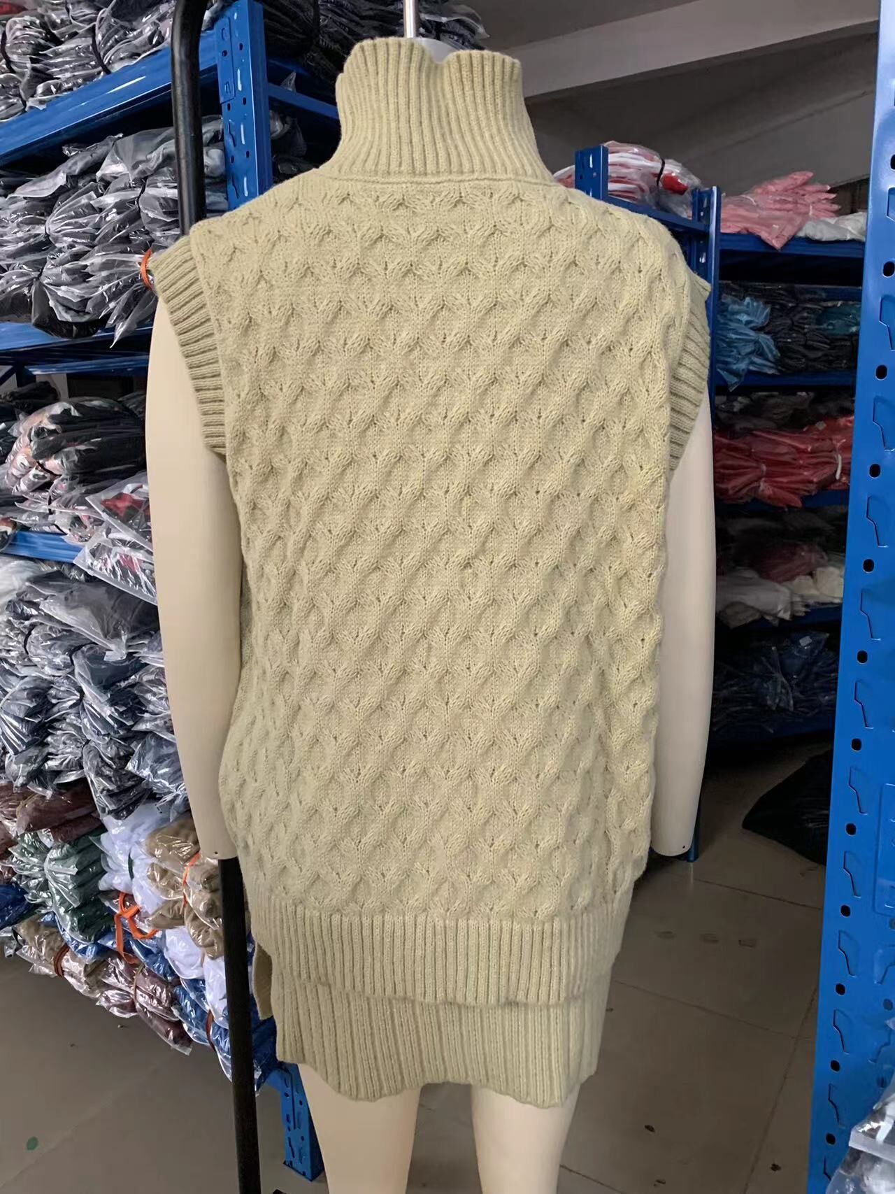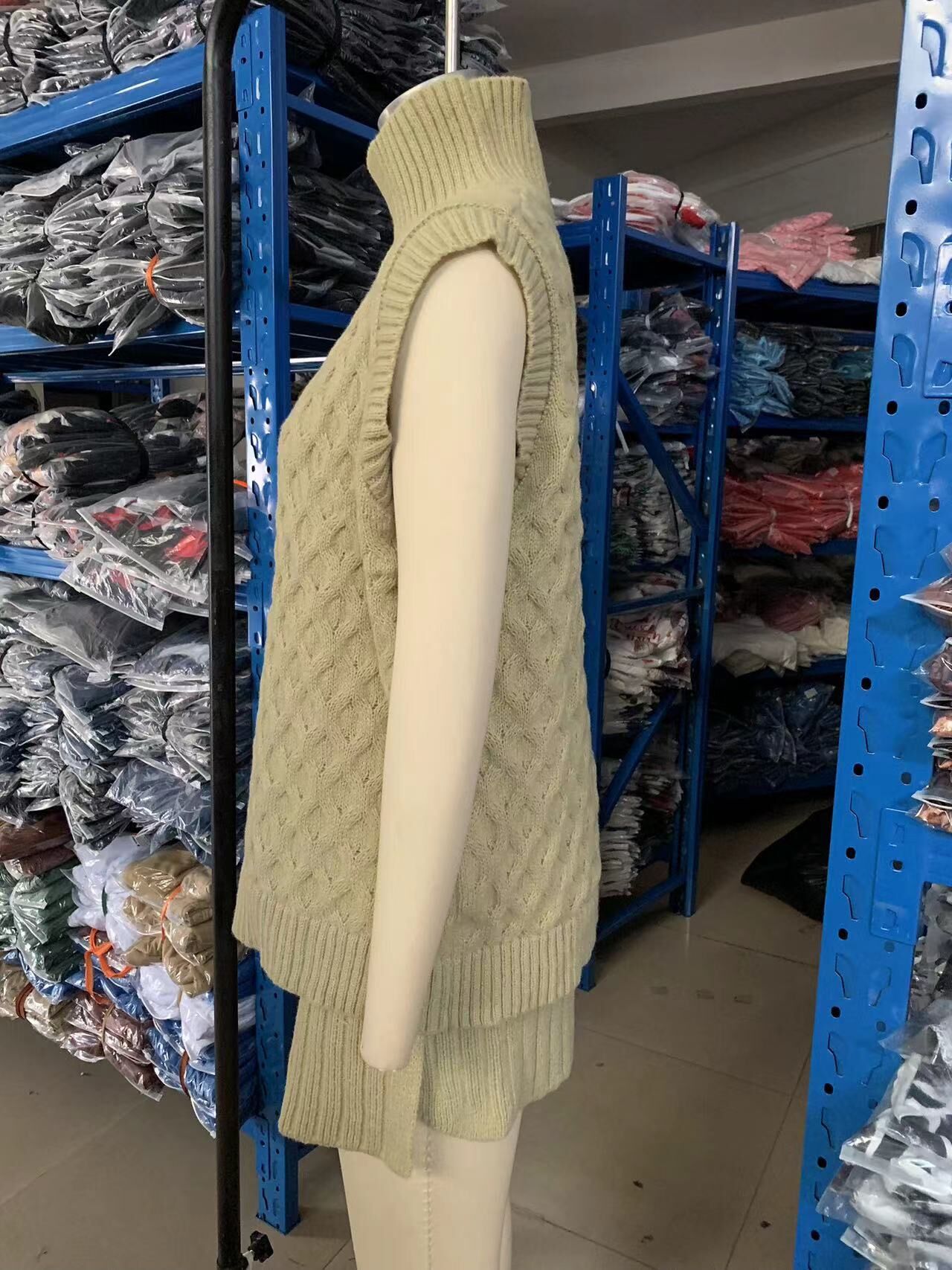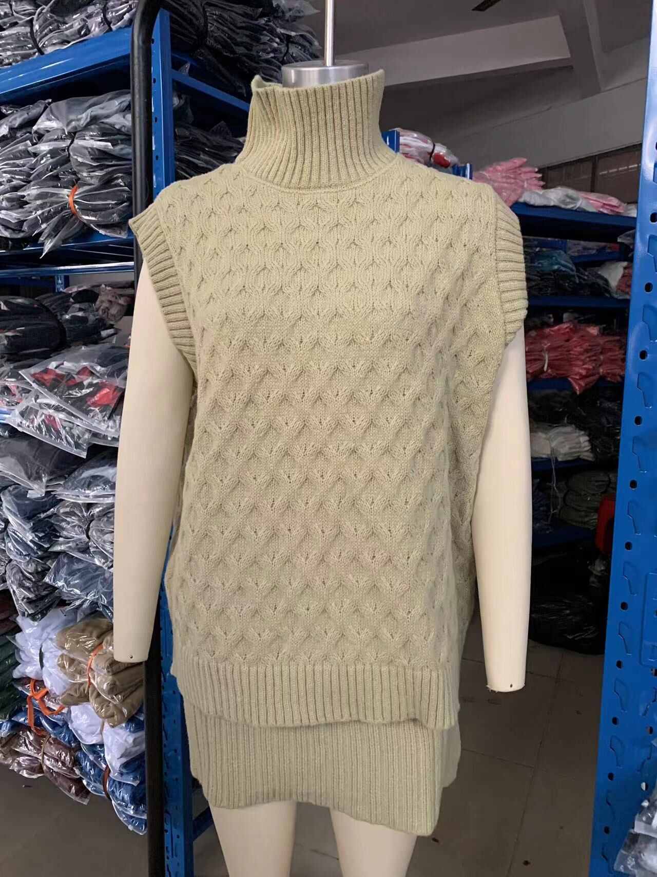Autumn Winter Women Solid Color Sleeveless Casual Loose Woolen Top Sexy Skirt Two Piece Sets