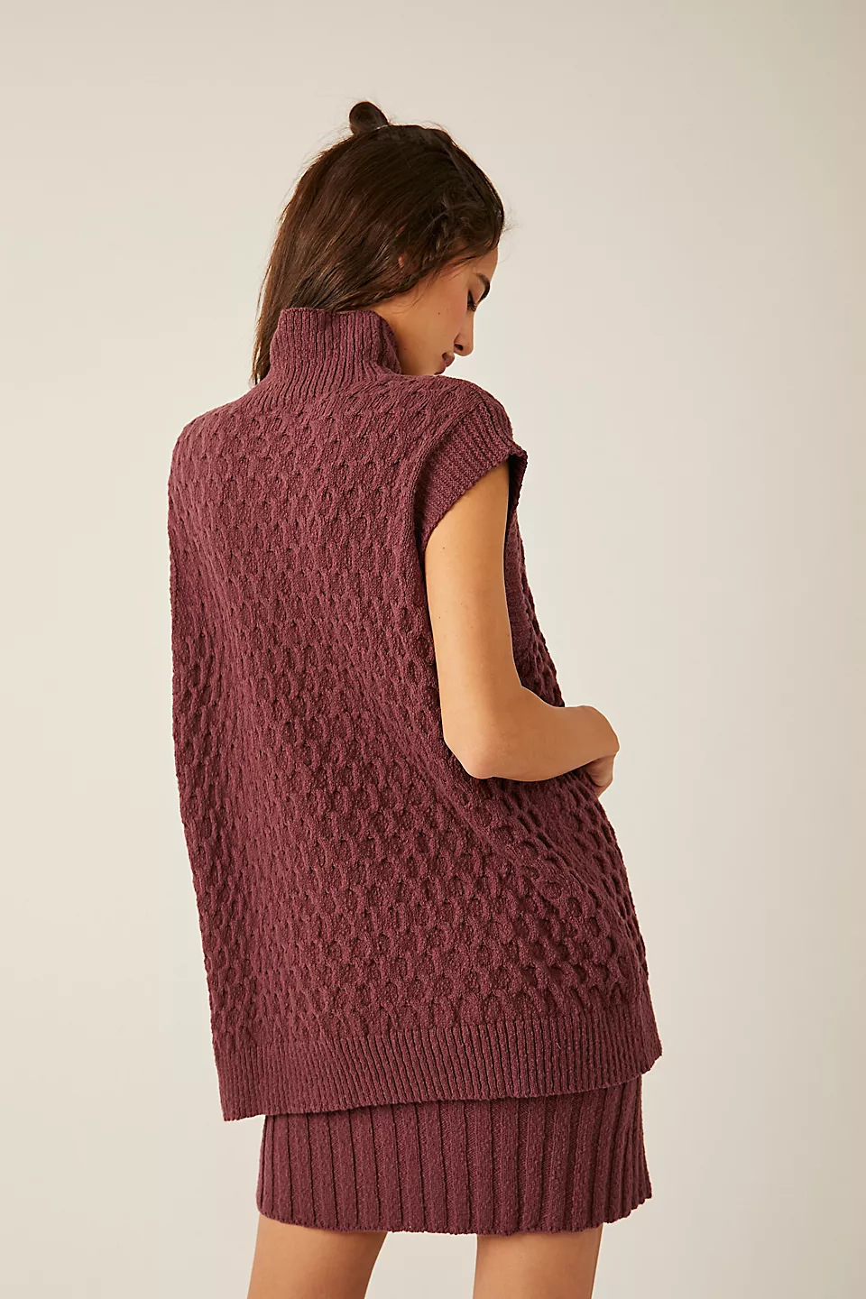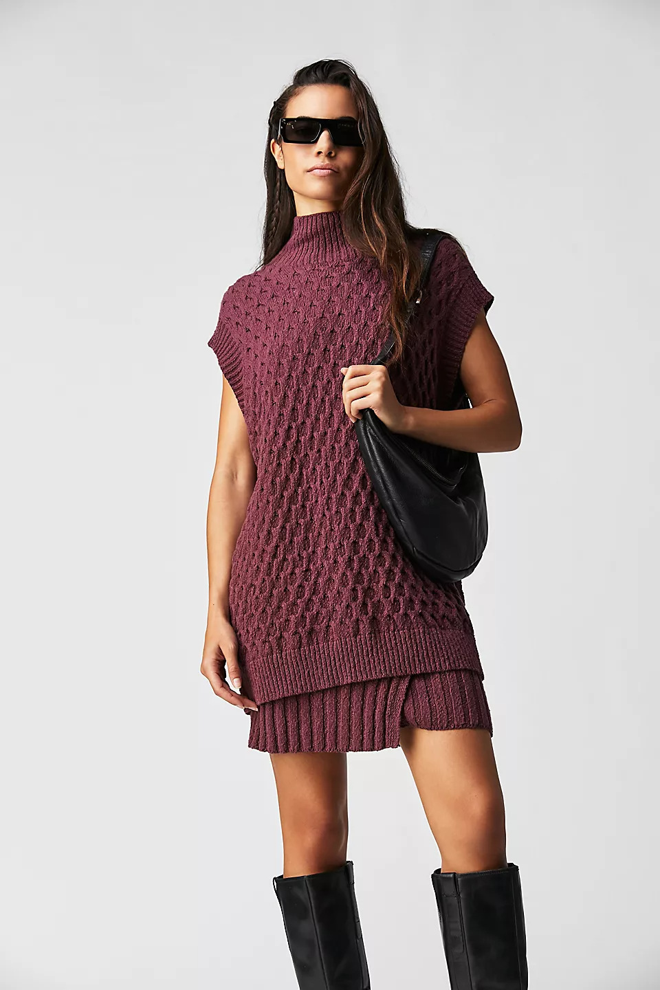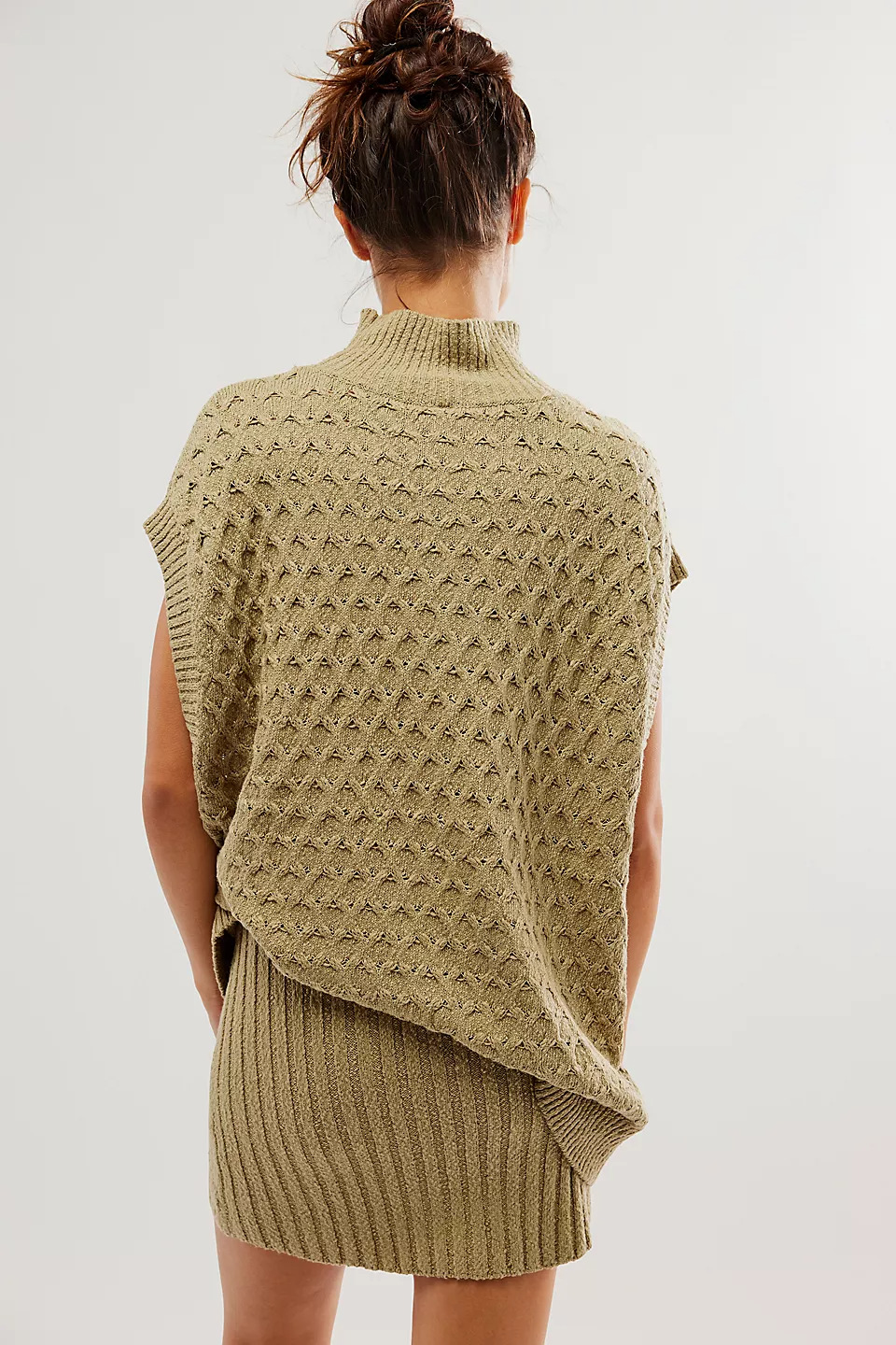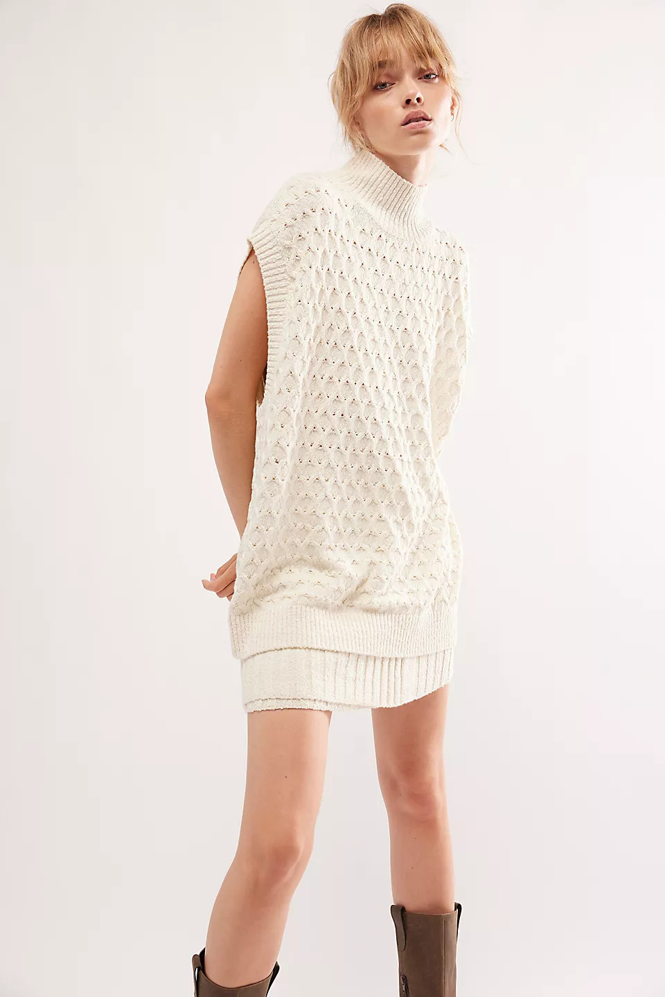 Autumn Winter Women Solid Color Sleeveless Casual Loose Woolen Top Sexy Skirt Two Piece Sets