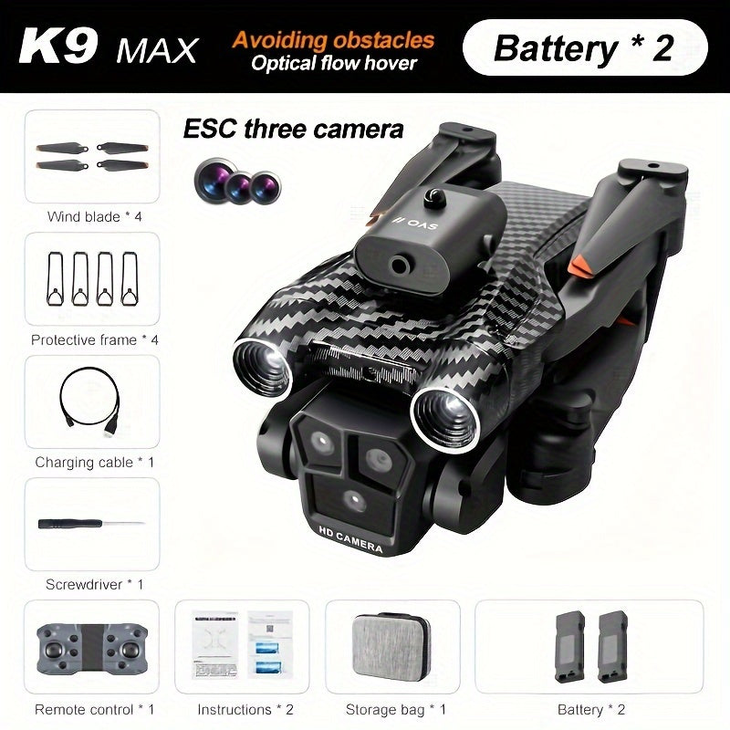 Avec 2 Batteries K9 Drone Avec ESC Trois Caméras, Maintien De La Hauteur 360° Évitement Infrarouge Des Obstacles, Trajet D'atterrissage À Une Clé Dessin De Piste Drone De Télécommande Double Pliée