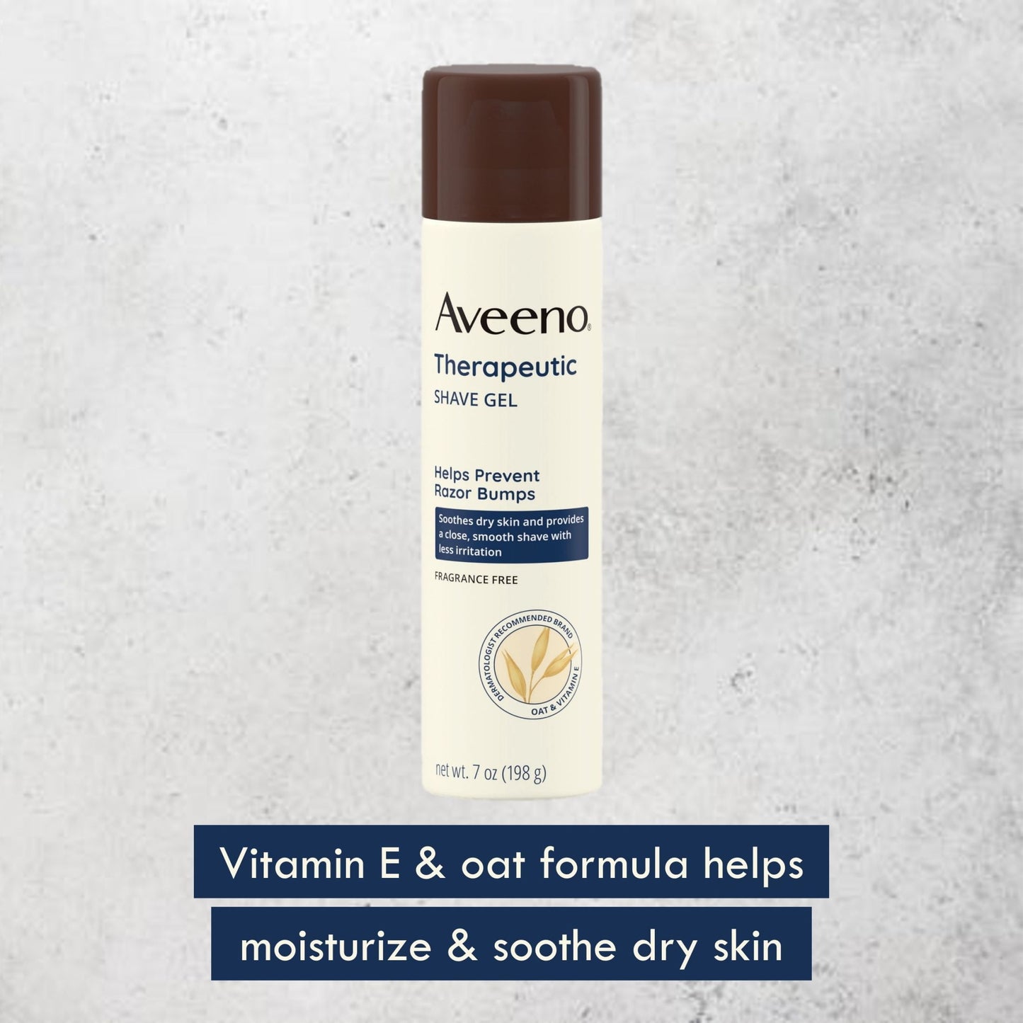- Aveeno Therapeutic Shave Gel with Oat & Vitamin E provides a smooth shave & less irritation