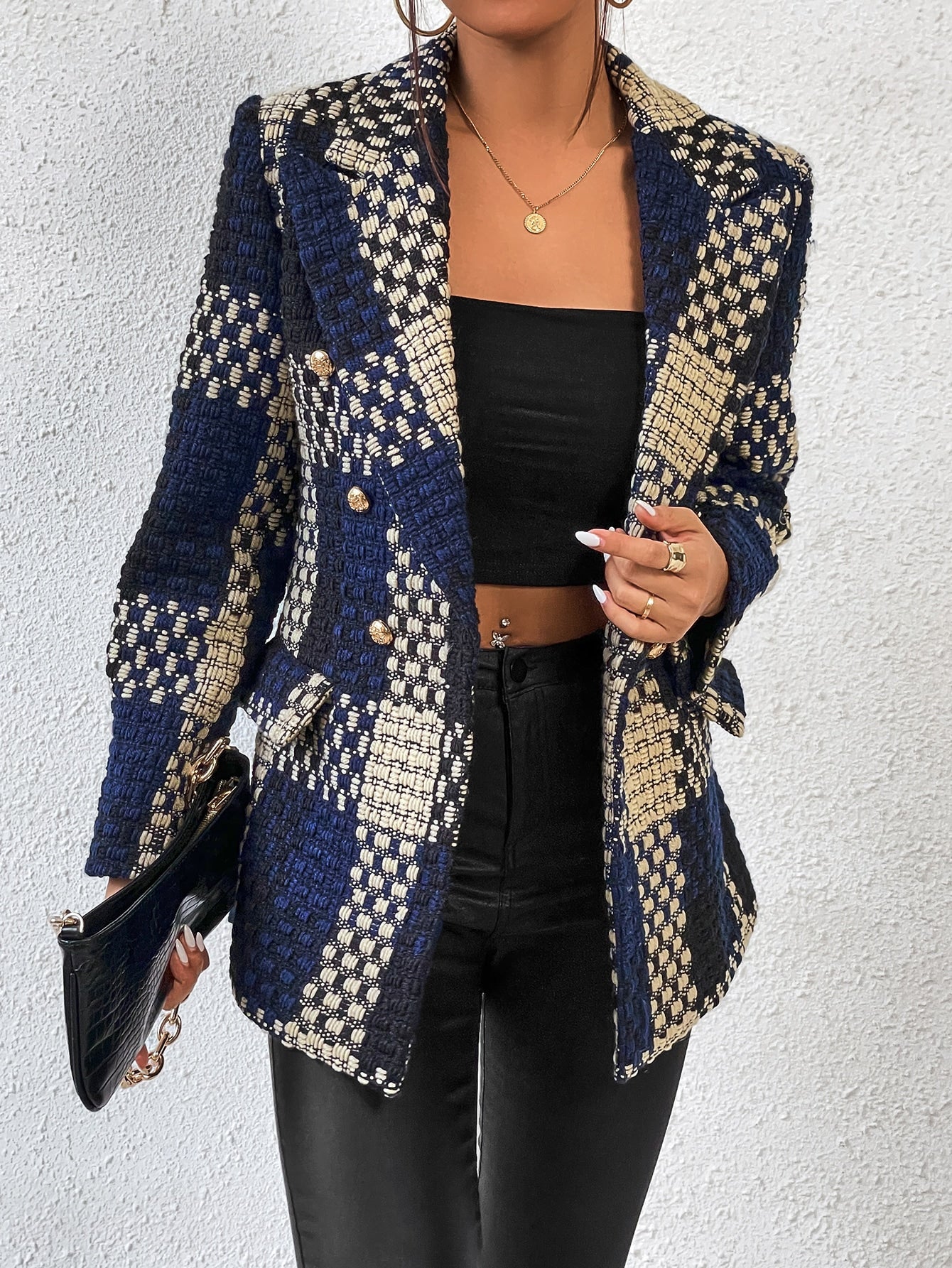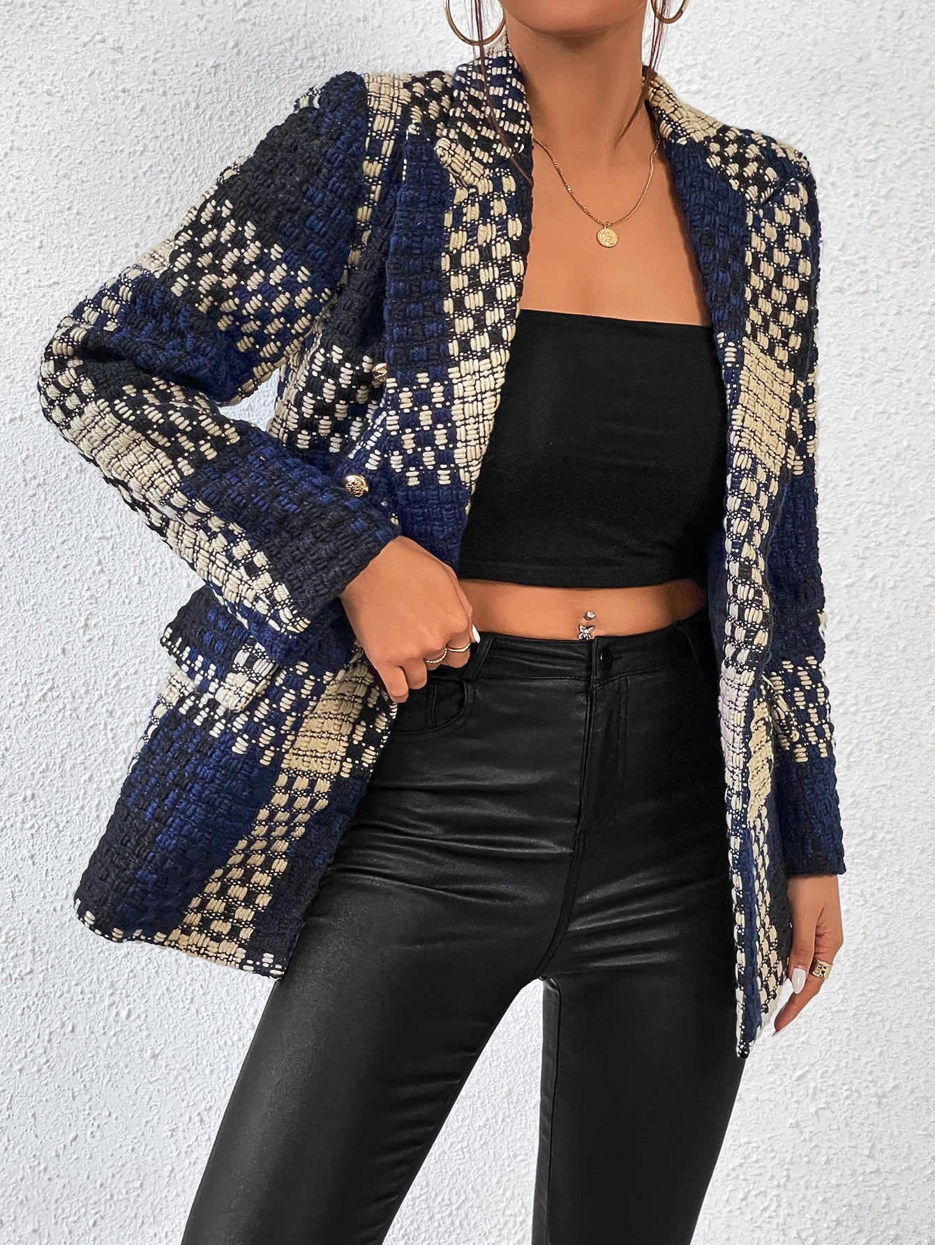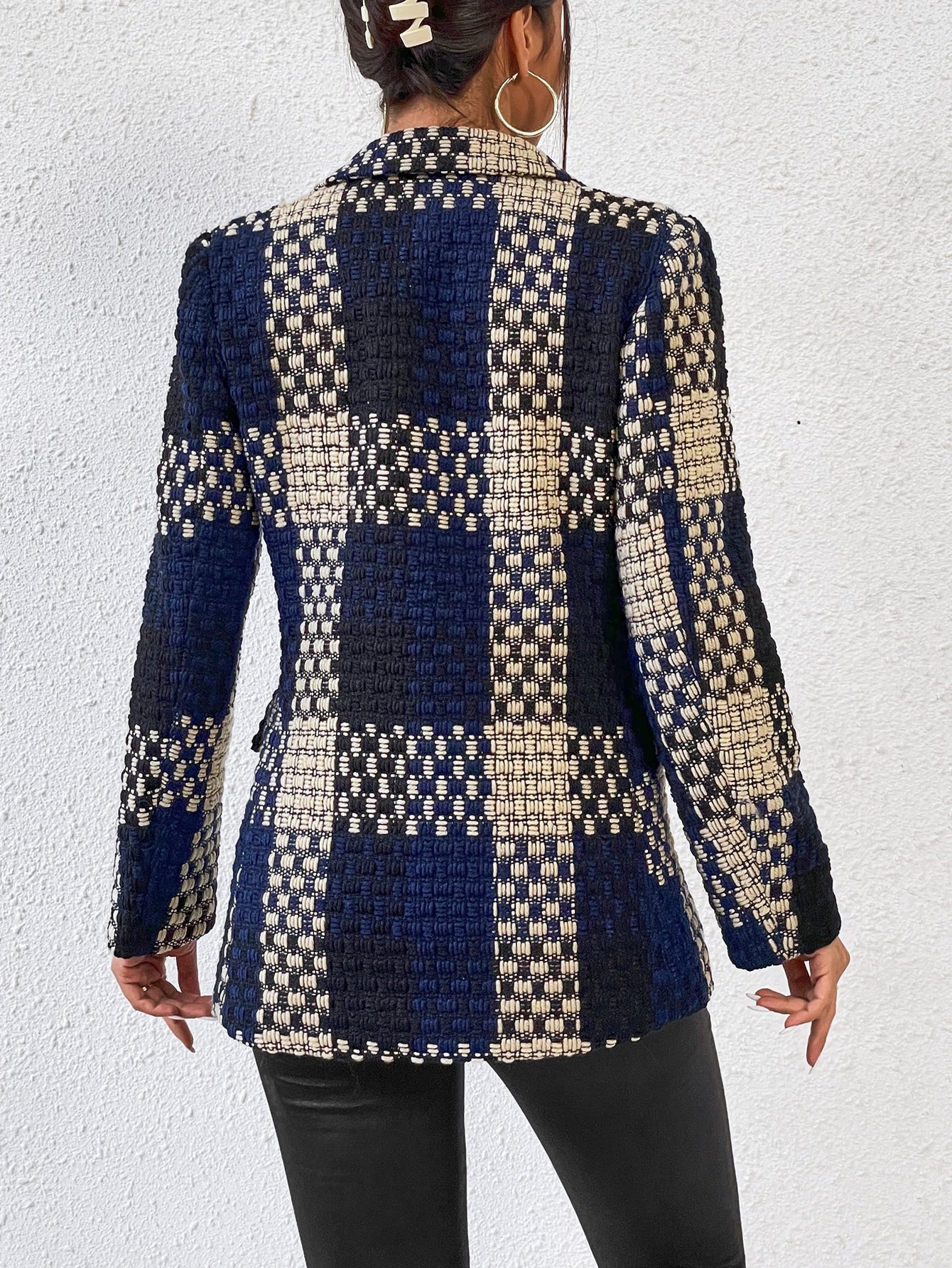 Aveloria Plaid Print Lapel Neck Blazer Workwear