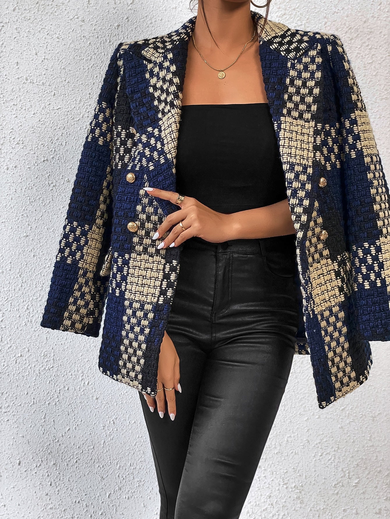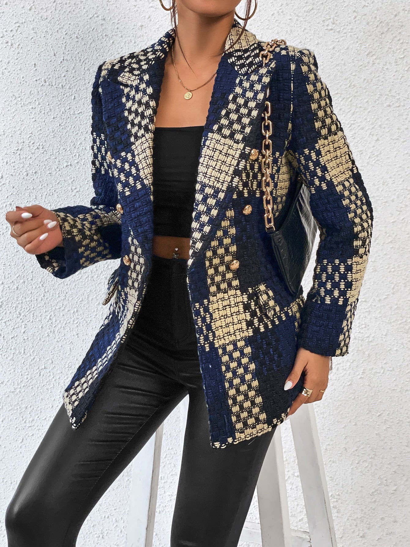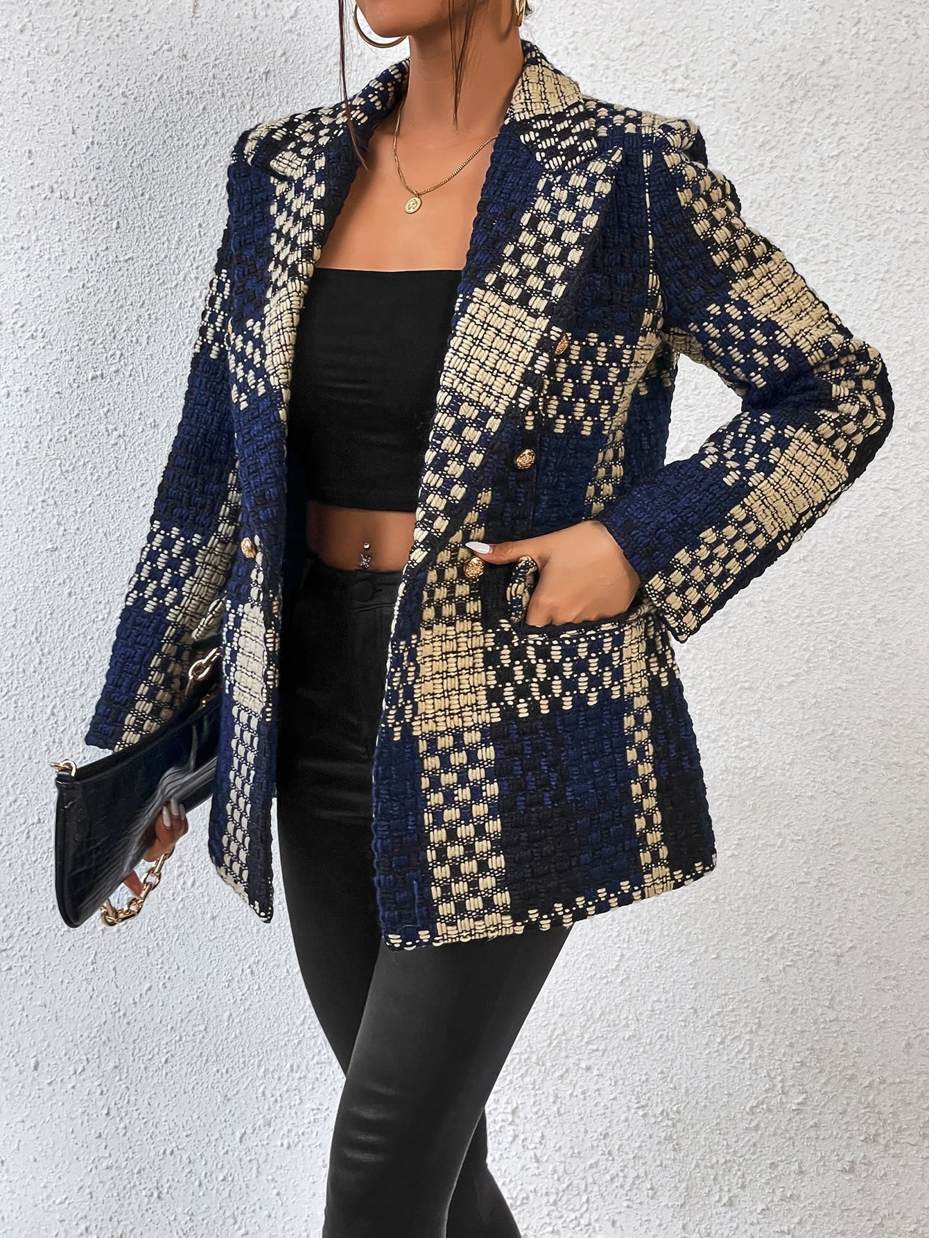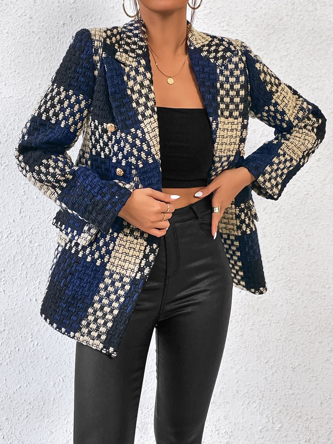 Aveloria Plaid Print Lapel Neck Blazer Workwear