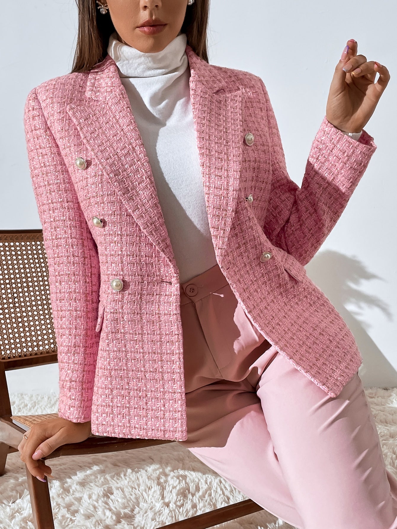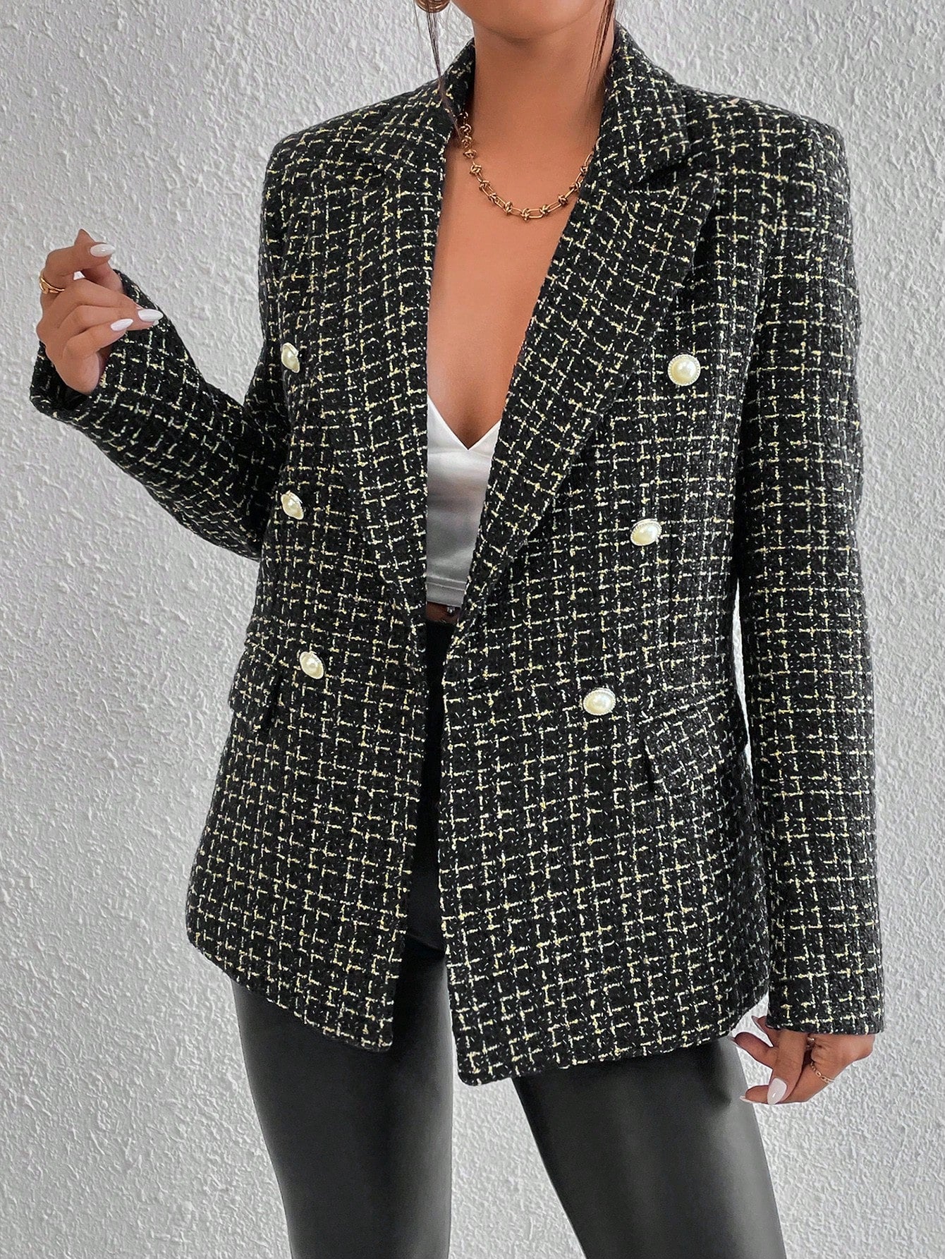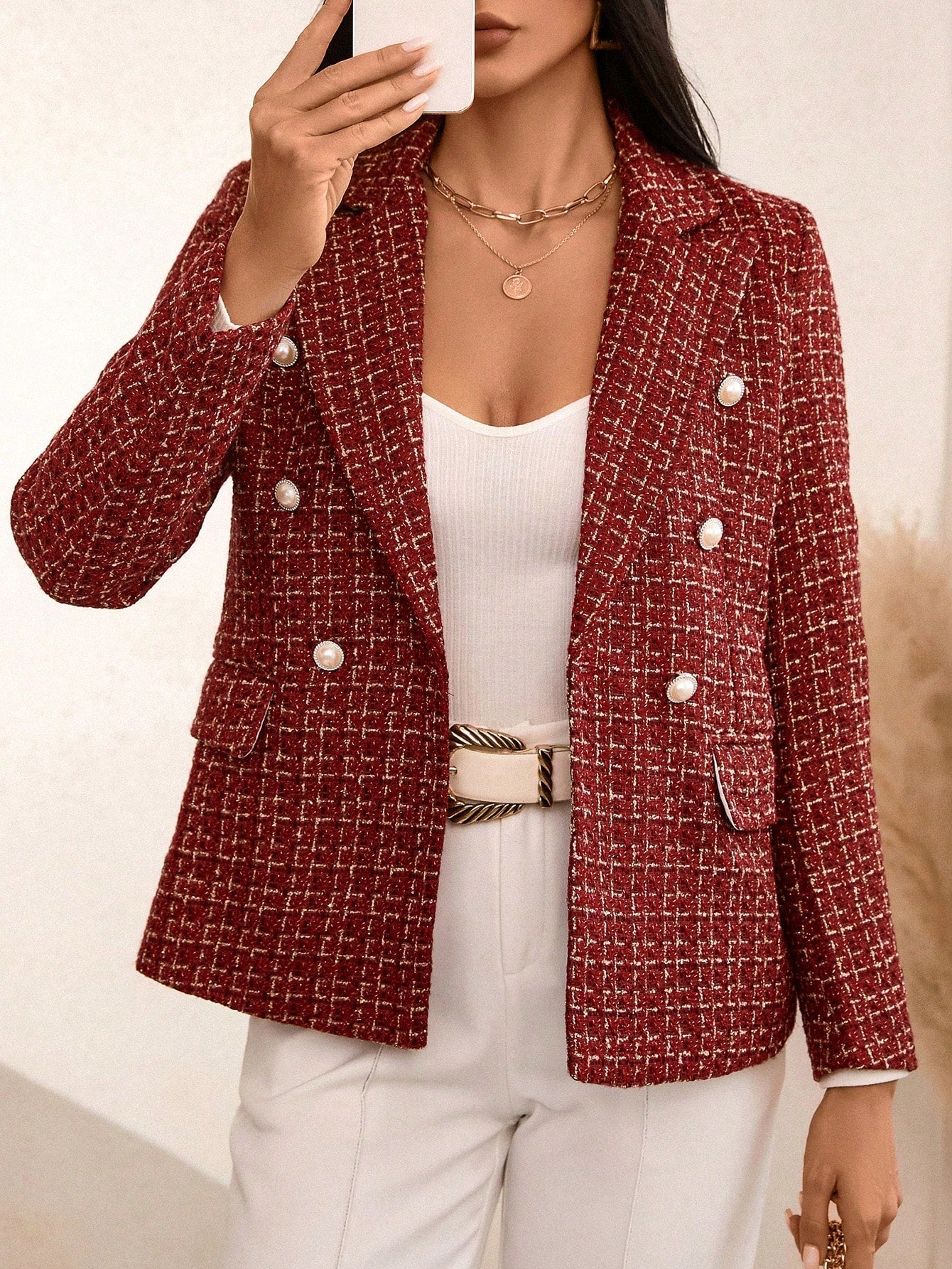 Aveloria Rosie Plaid Print Double Breasted Blazer Workwear