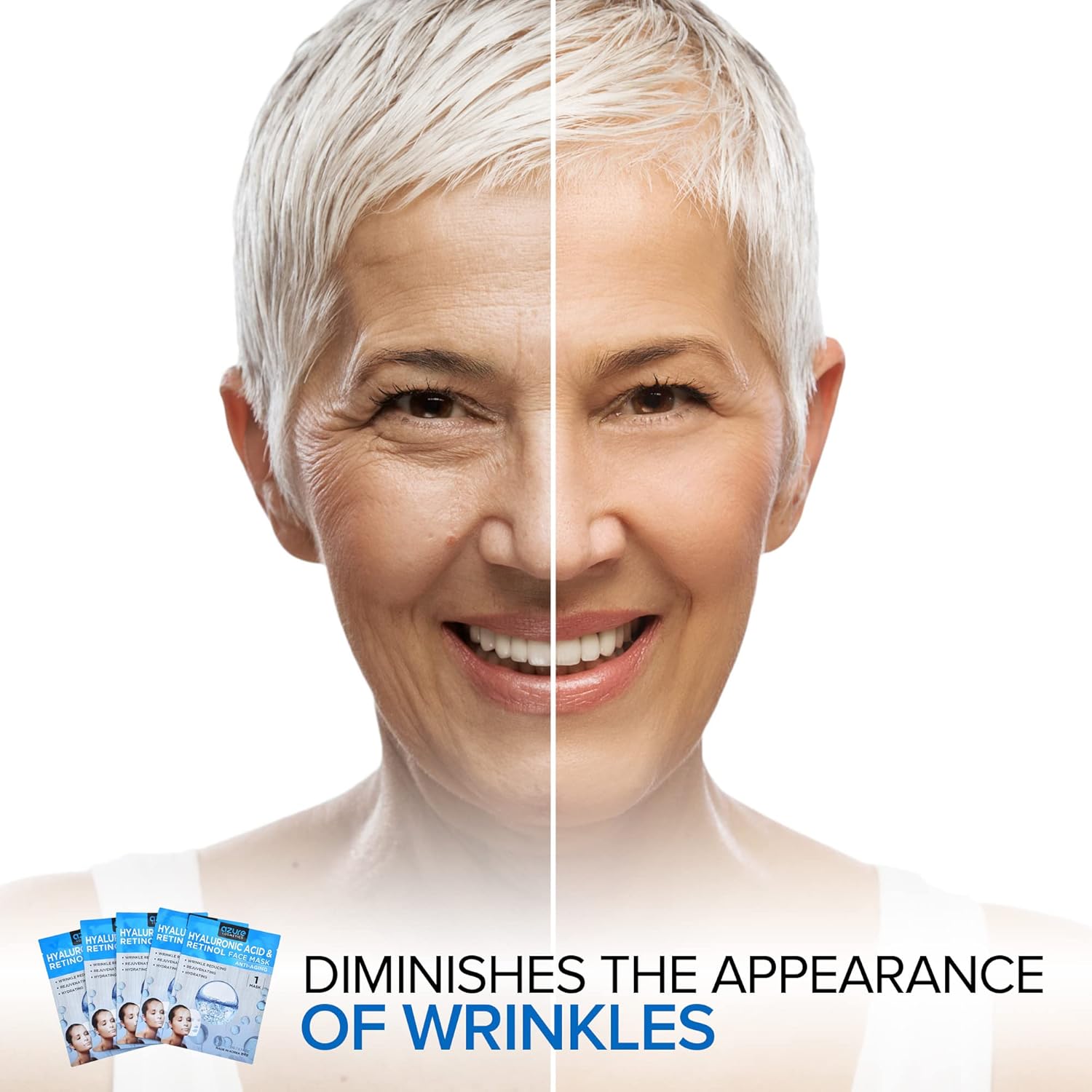 AZURE Hyaluronic Acid & Retinol Anti Aging Facial Mask - Dermatologist Tested - Rejuvenating & Hydrating Face Mask - Helps Reduce Fine Lines & Wrinkles, Smooths & Repairs - Korean Skin Care - 10 Pack