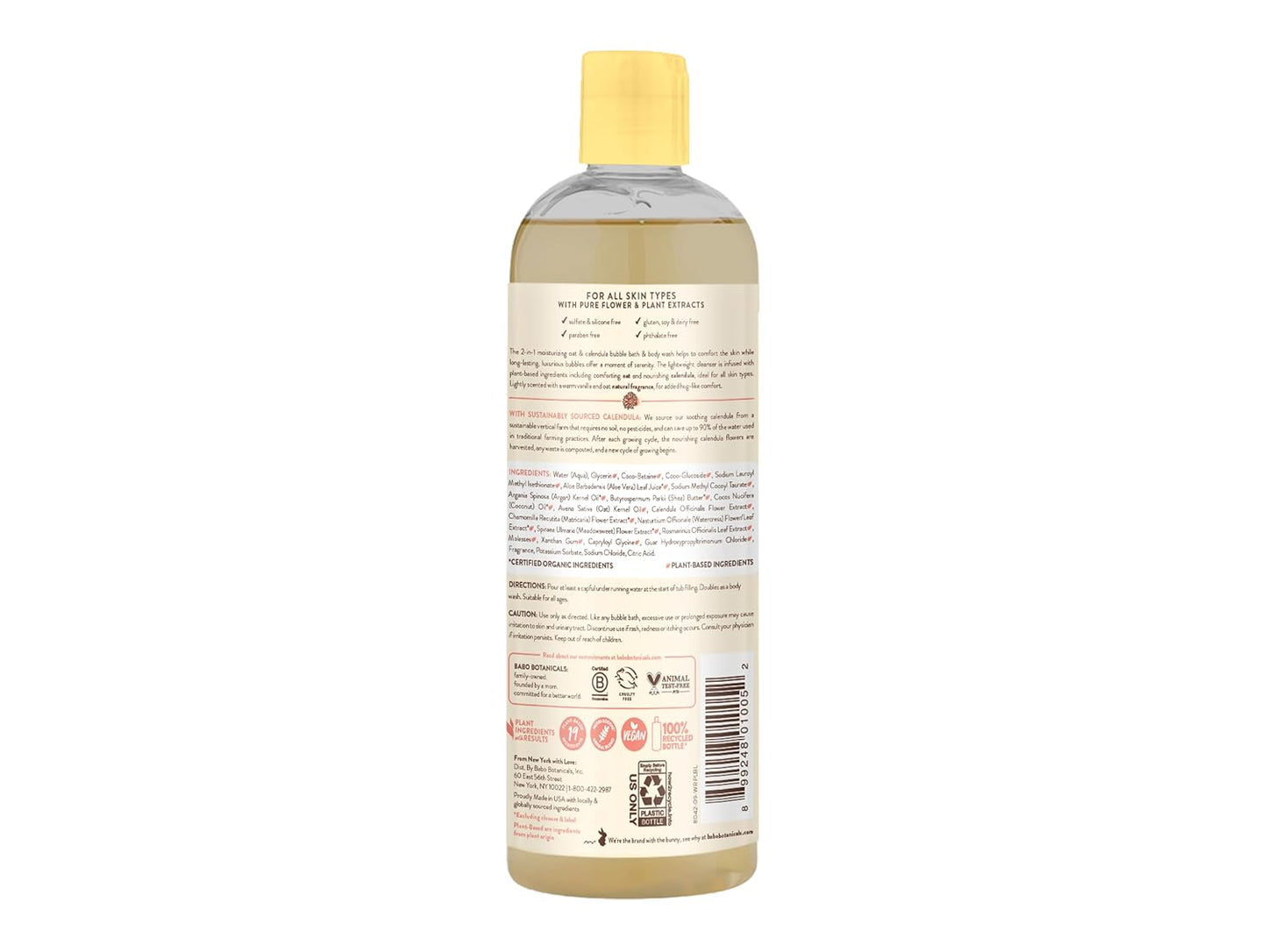 Babo Botanicals Moisturizing Oat & Calendula 2-in-1 Bubble Bath & Wash - for Dry or Sensitive Skin - for All Ages - Vegan - Lightly Scented - 1 or 2 Pack