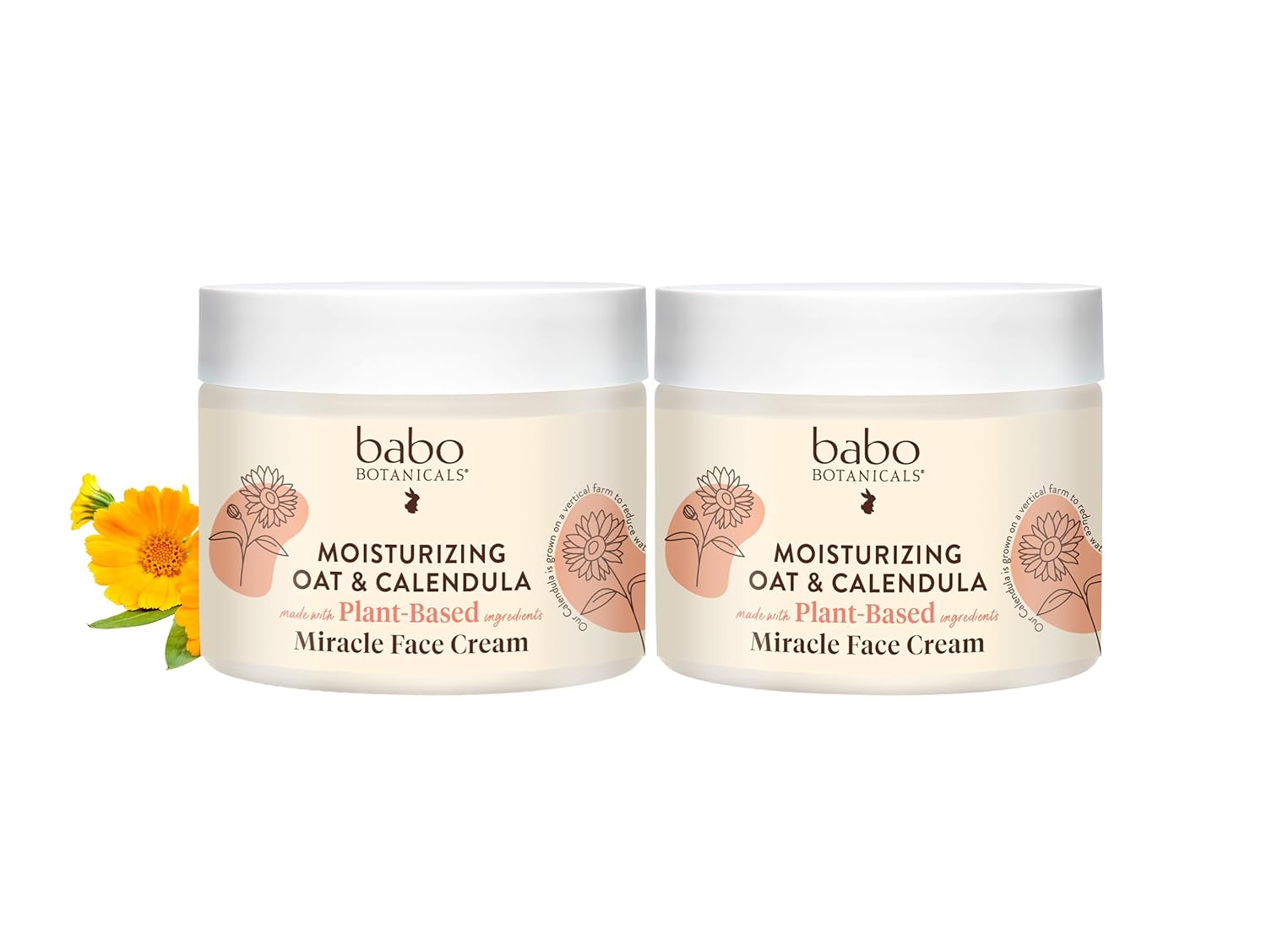 Babo Botanicals Moisturizing Oat & Calendula Miracle Face Cream - Shea Butter - For Dry or Sensitive Skin - For all ages - Vegan - 1 or 2 Pack