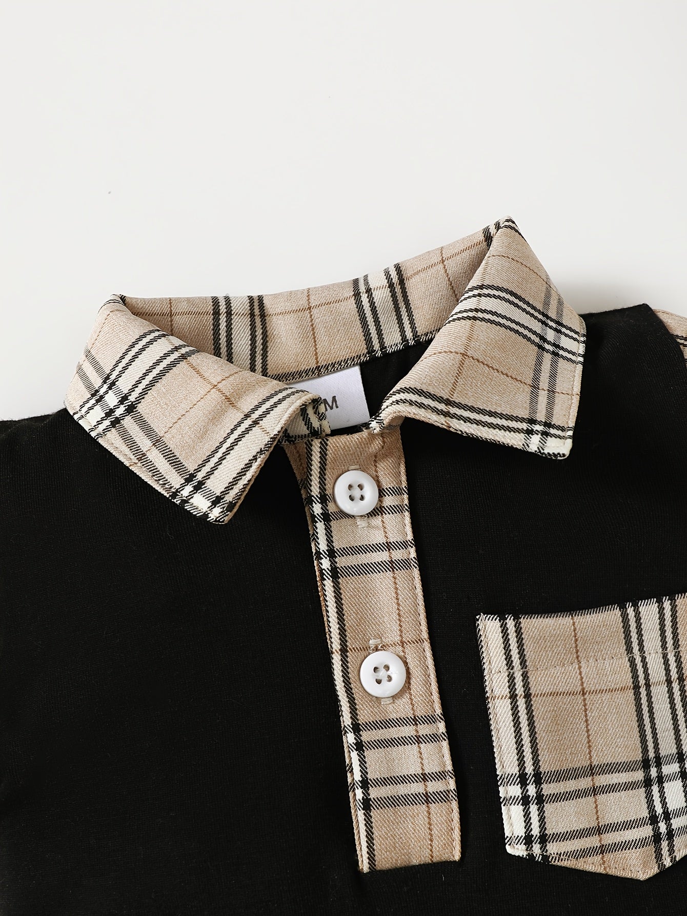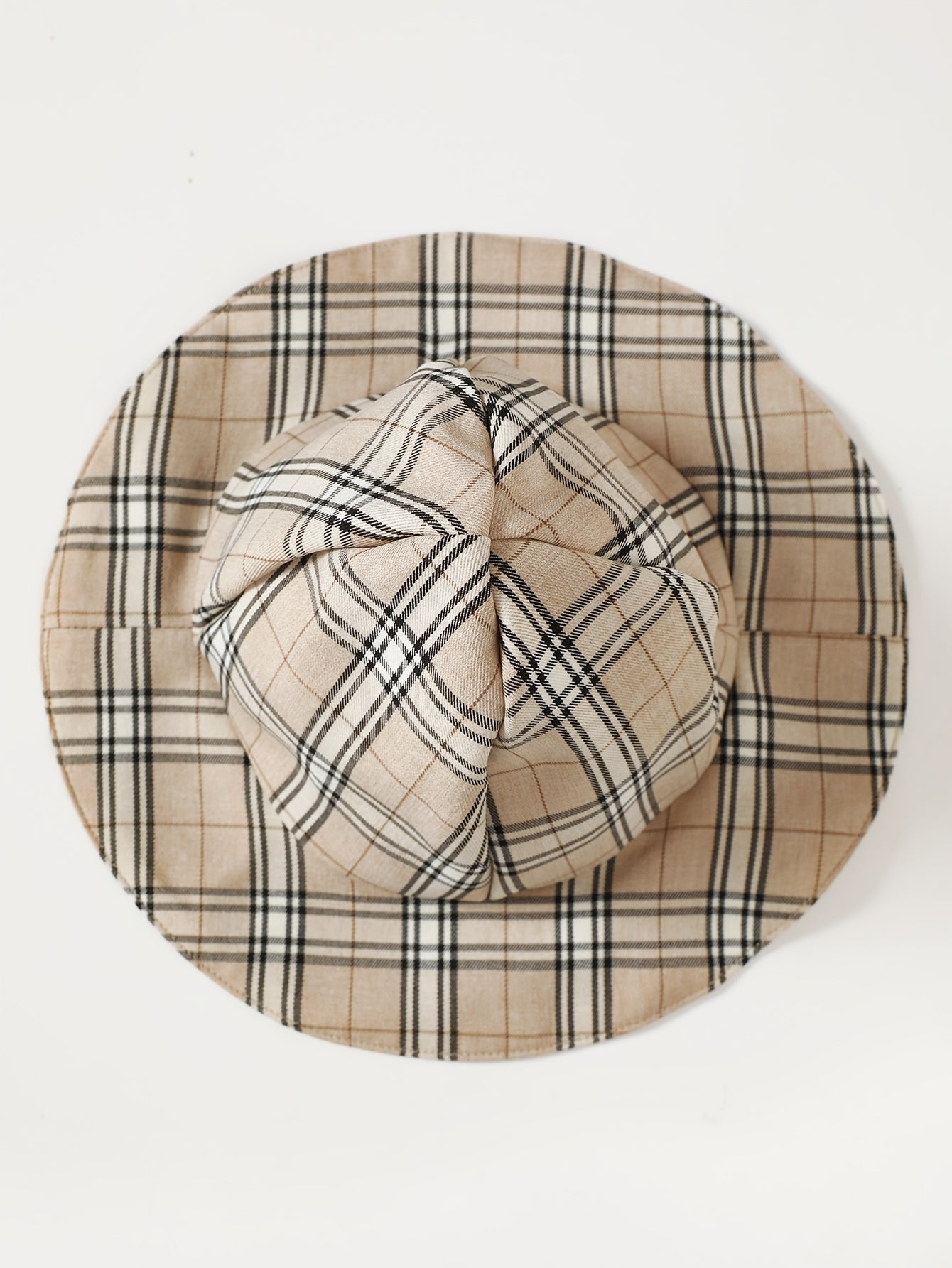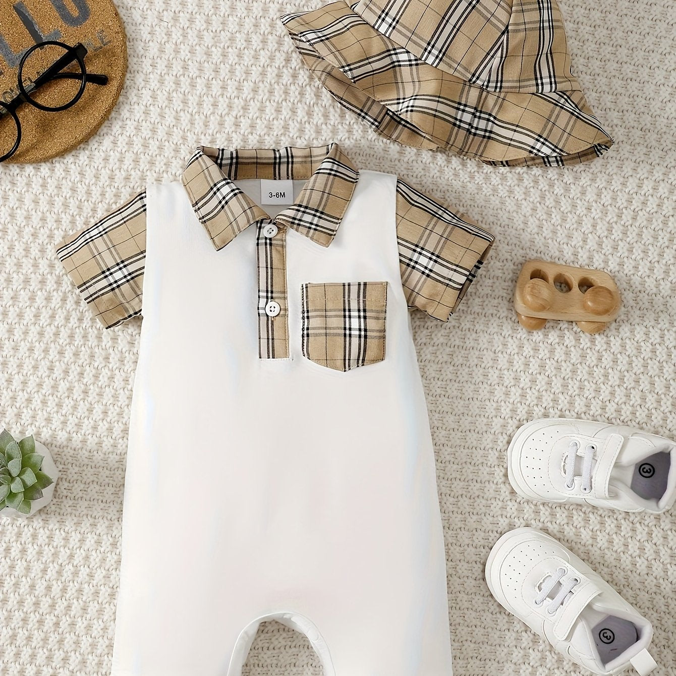 Baby Boy Plaid Print White Short Sleeve Romper + Plaid Fisherman Hat