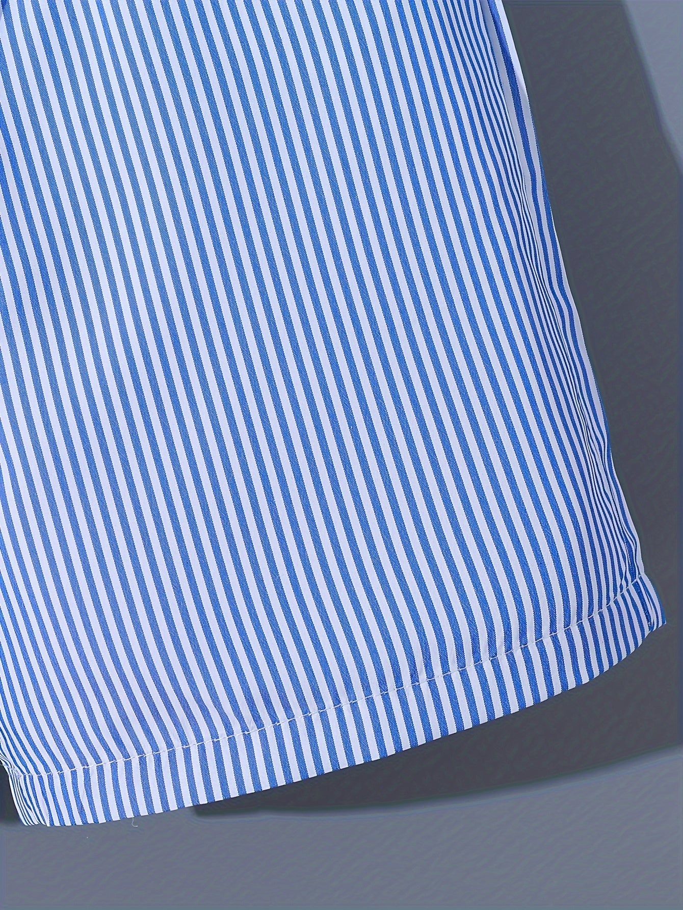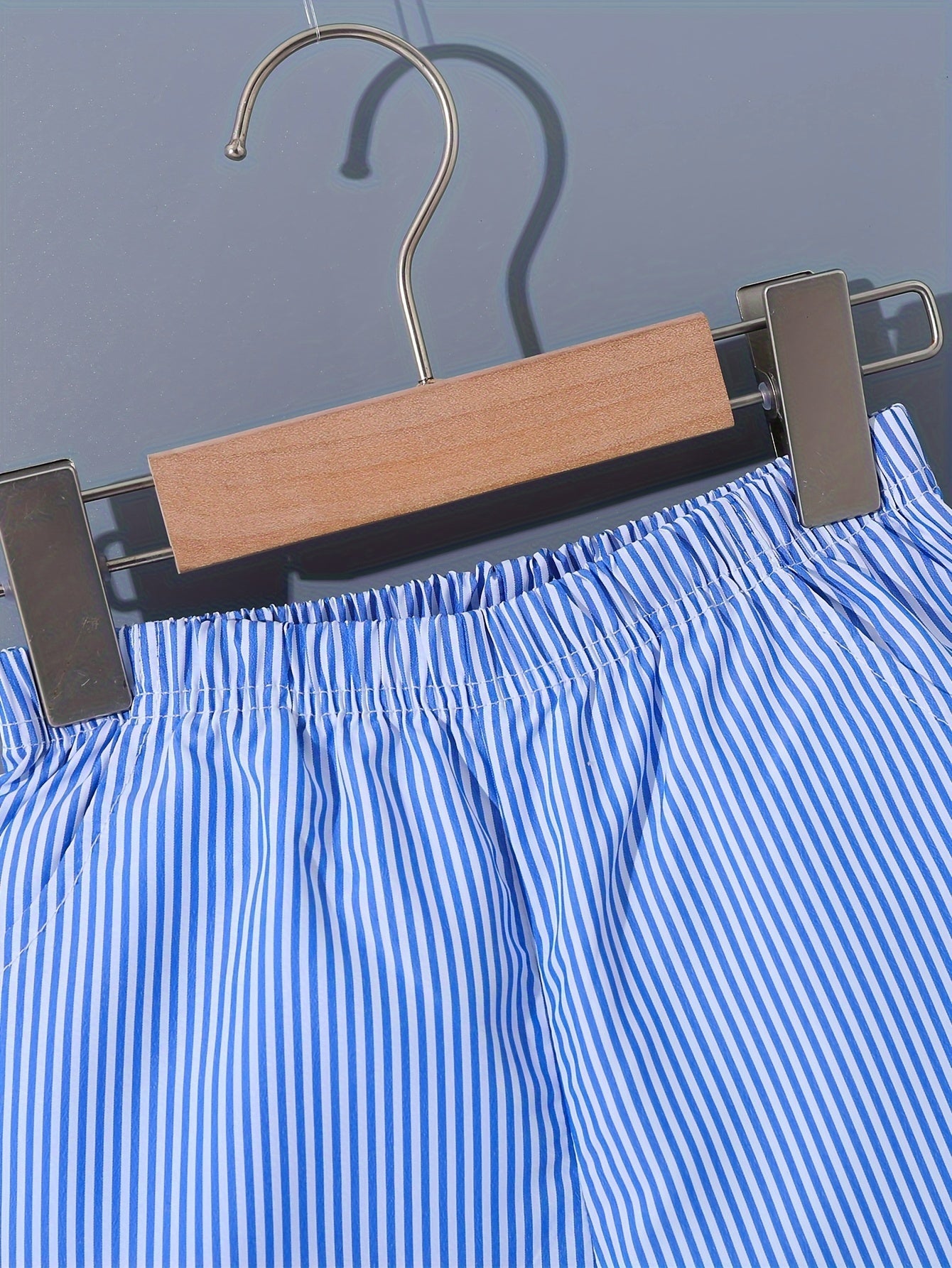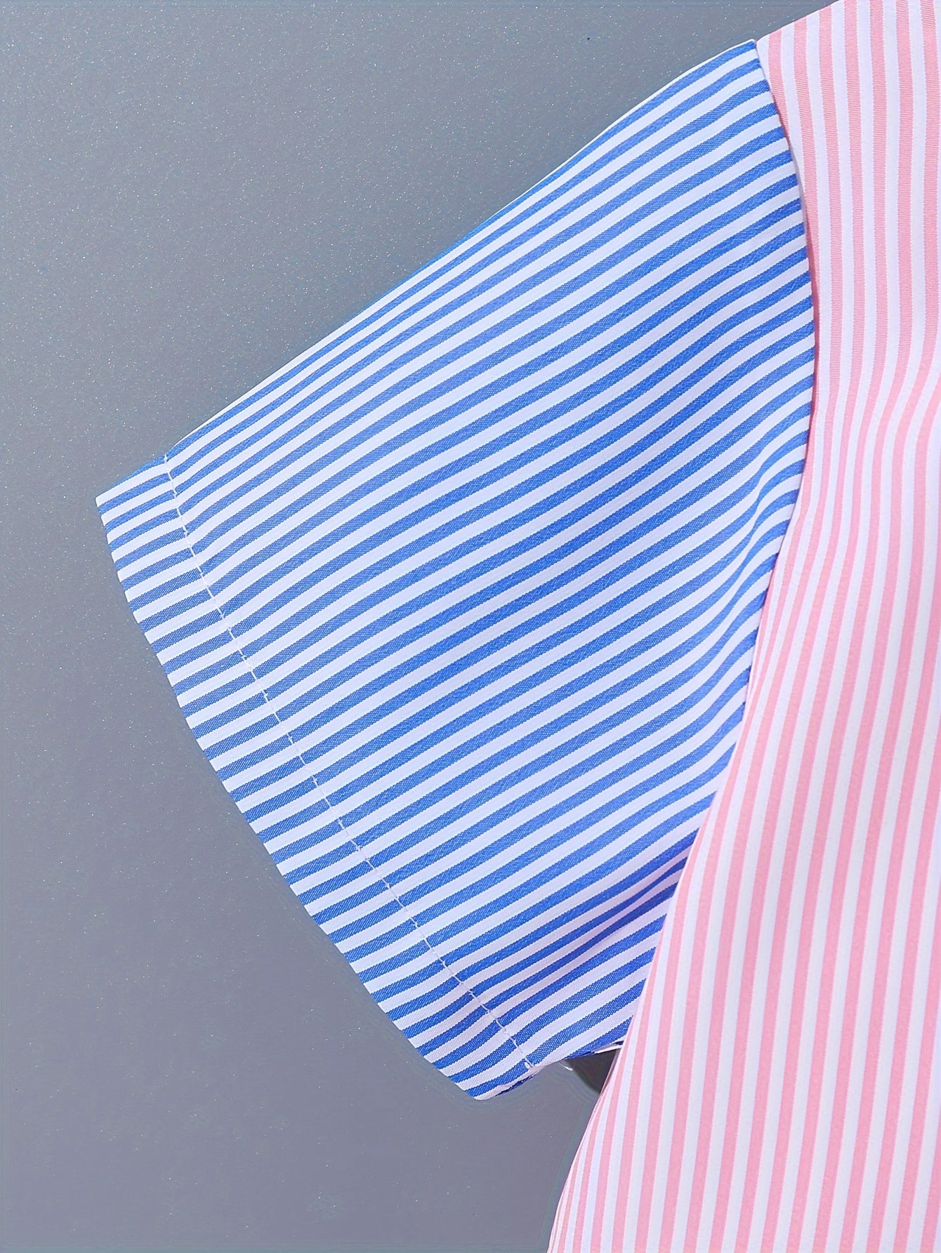 Baby Boys Casual Color Block Striped Outfit, Short Sleeve Breathable Shirt & Shorts Set, 2Pcs Summer Daily Wear