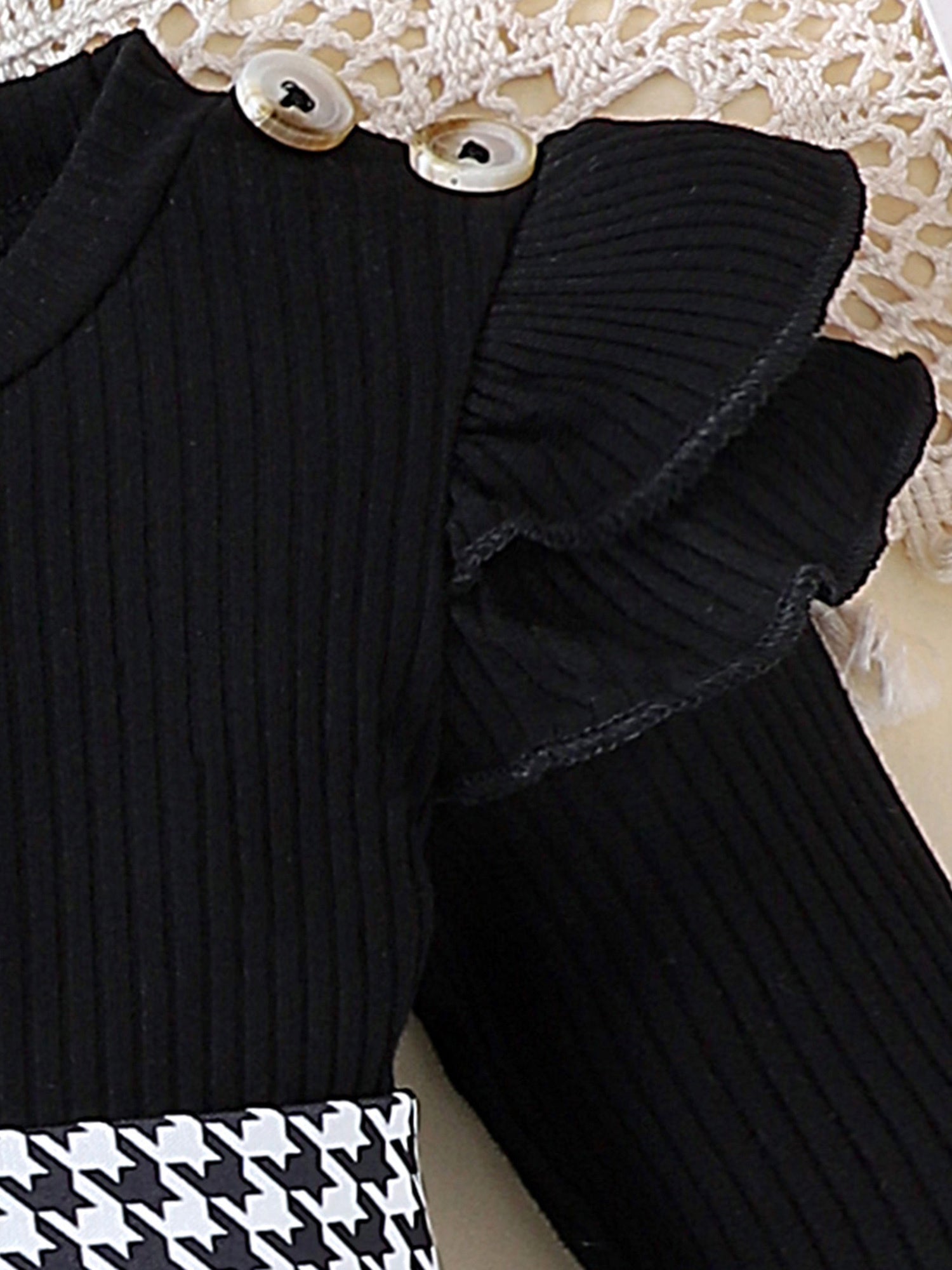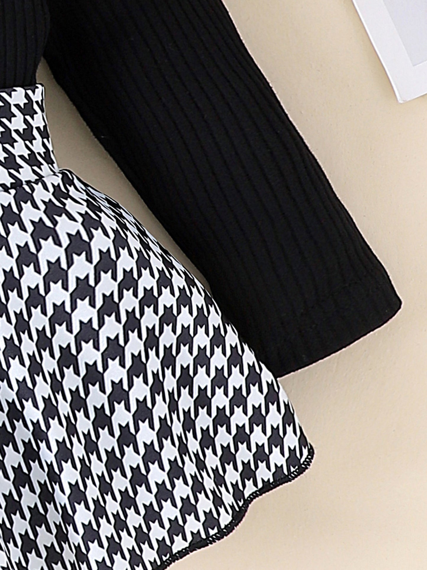 Baby Girl Spring Outfits Long Sleeve Houndstooth Print Romper Dress with Headband and Long Socks