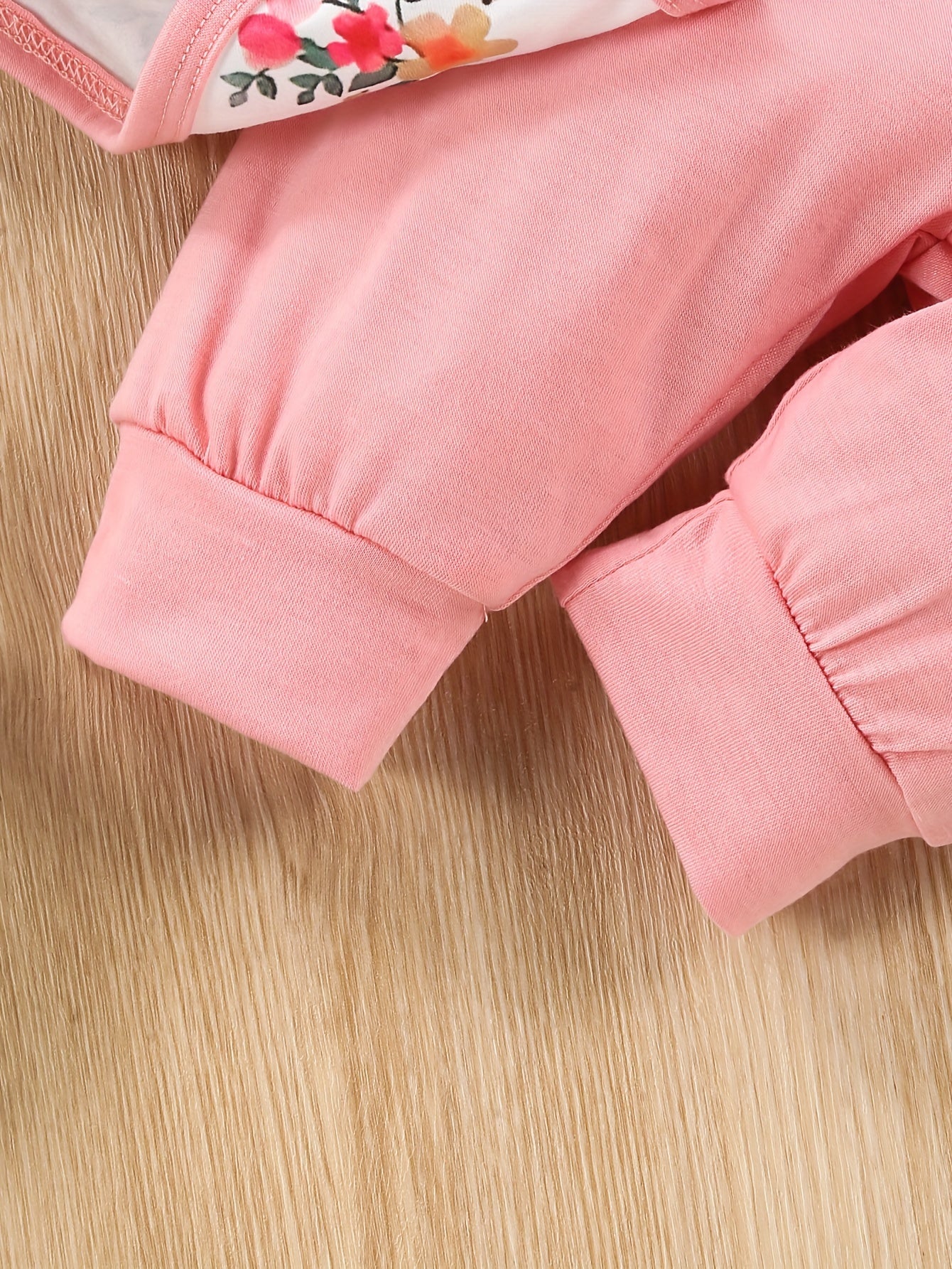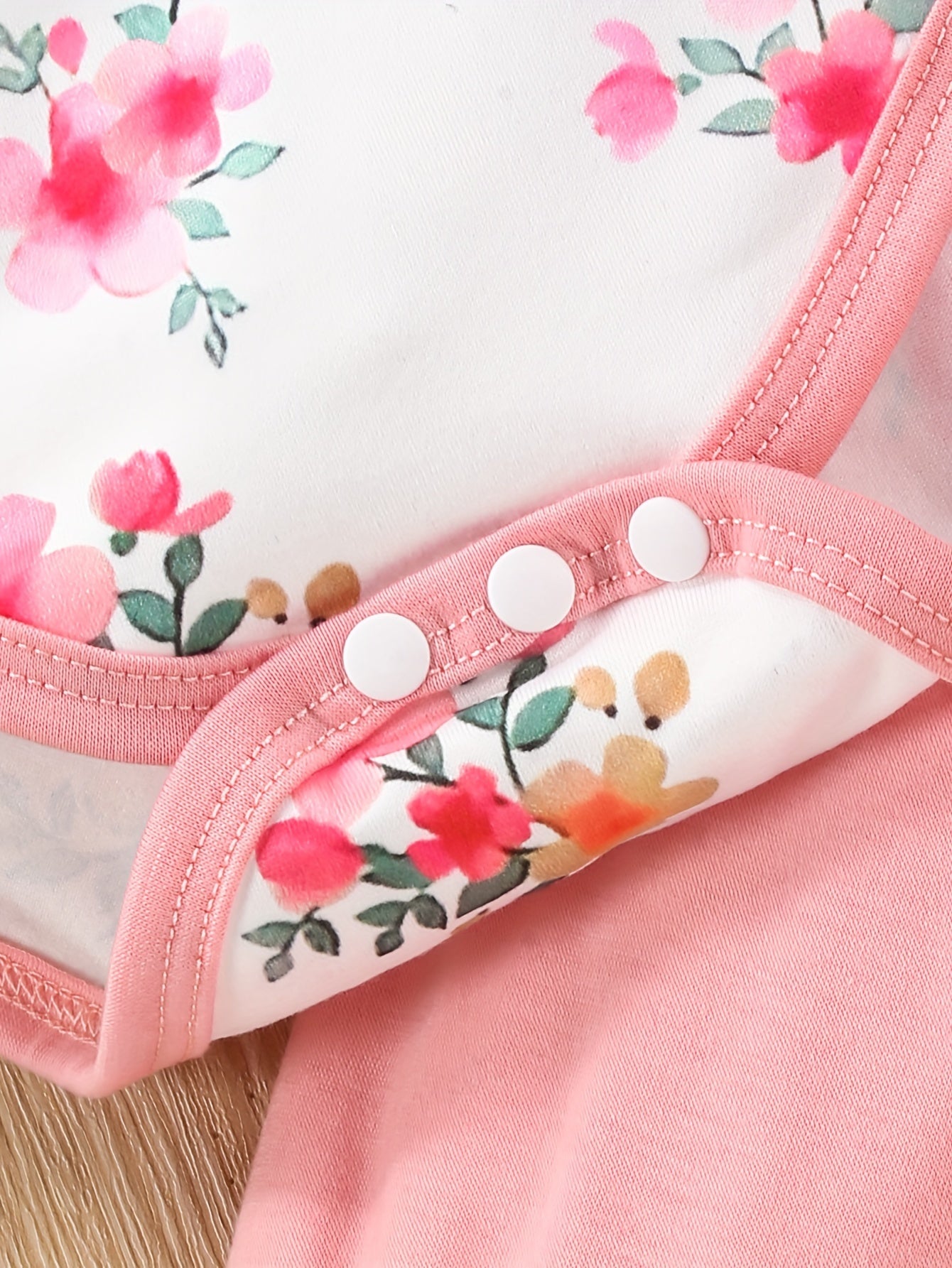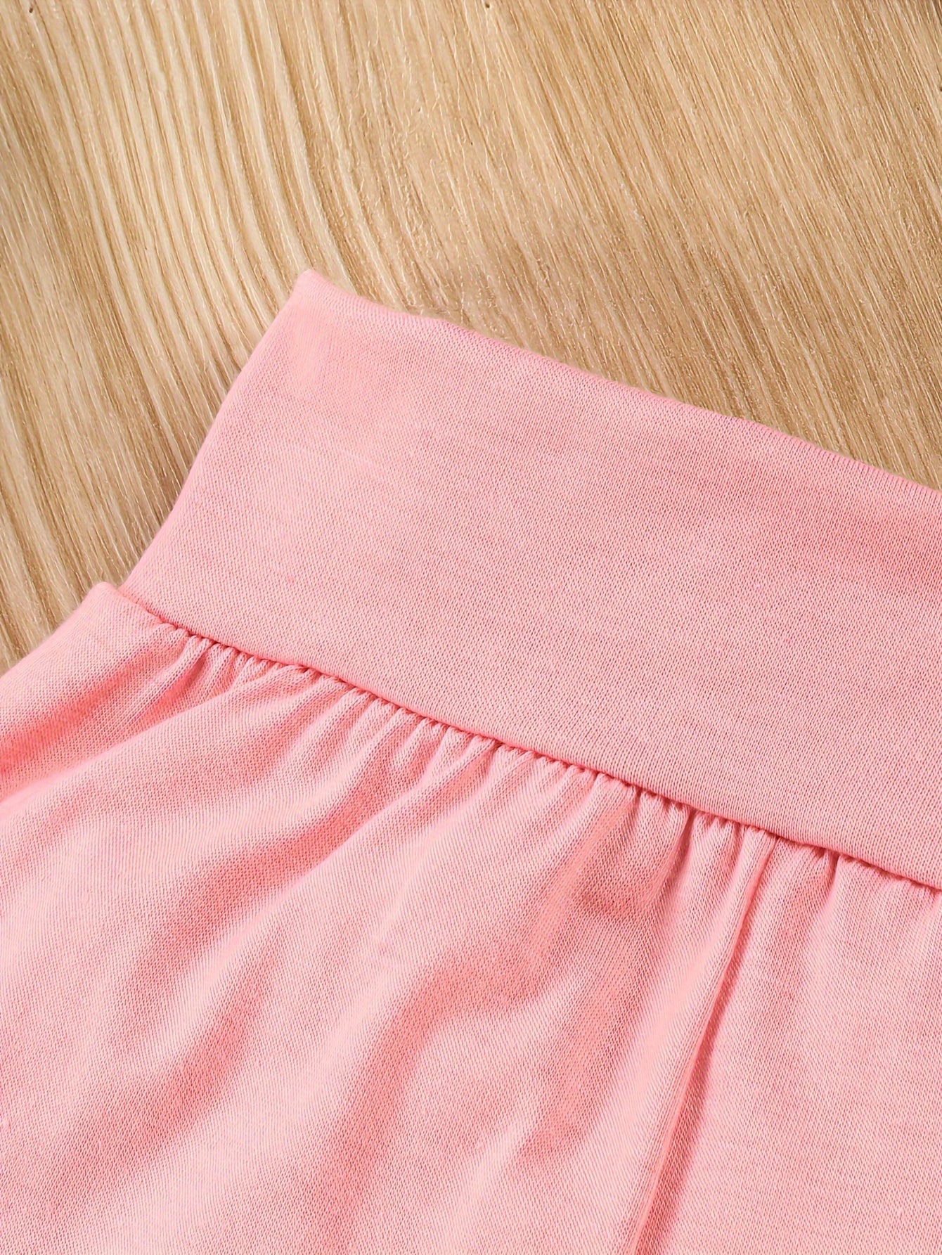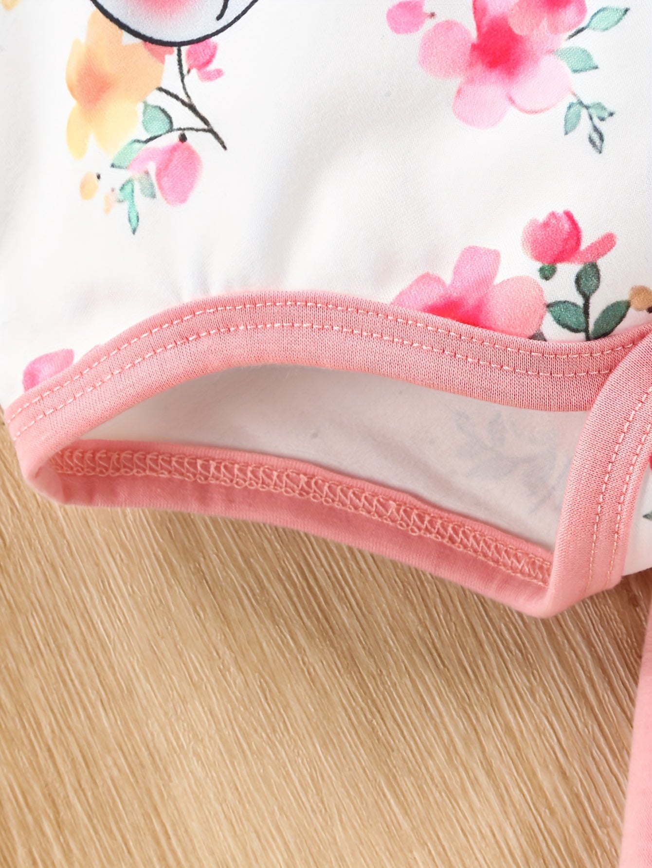 Baby Girl's Cute Elephant Print Short Sleeve Triangle Romper with Pink Pants and Hat Three-Piece Set, Perfect for Outdoor