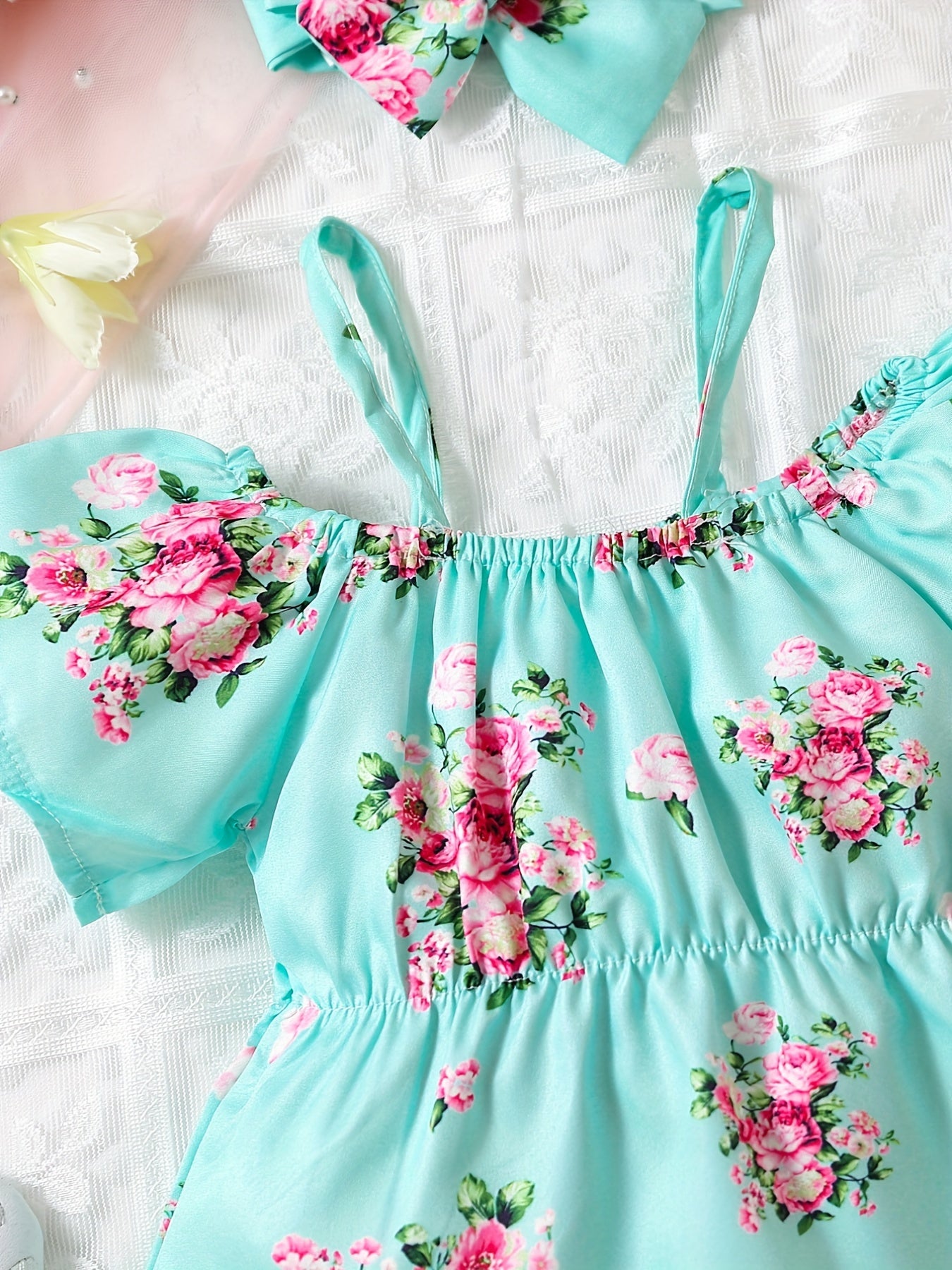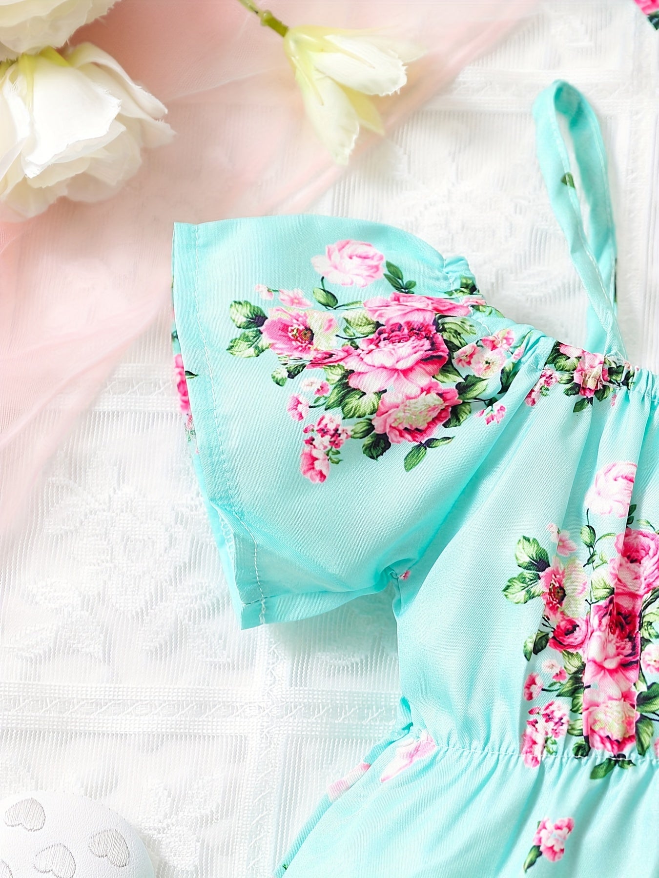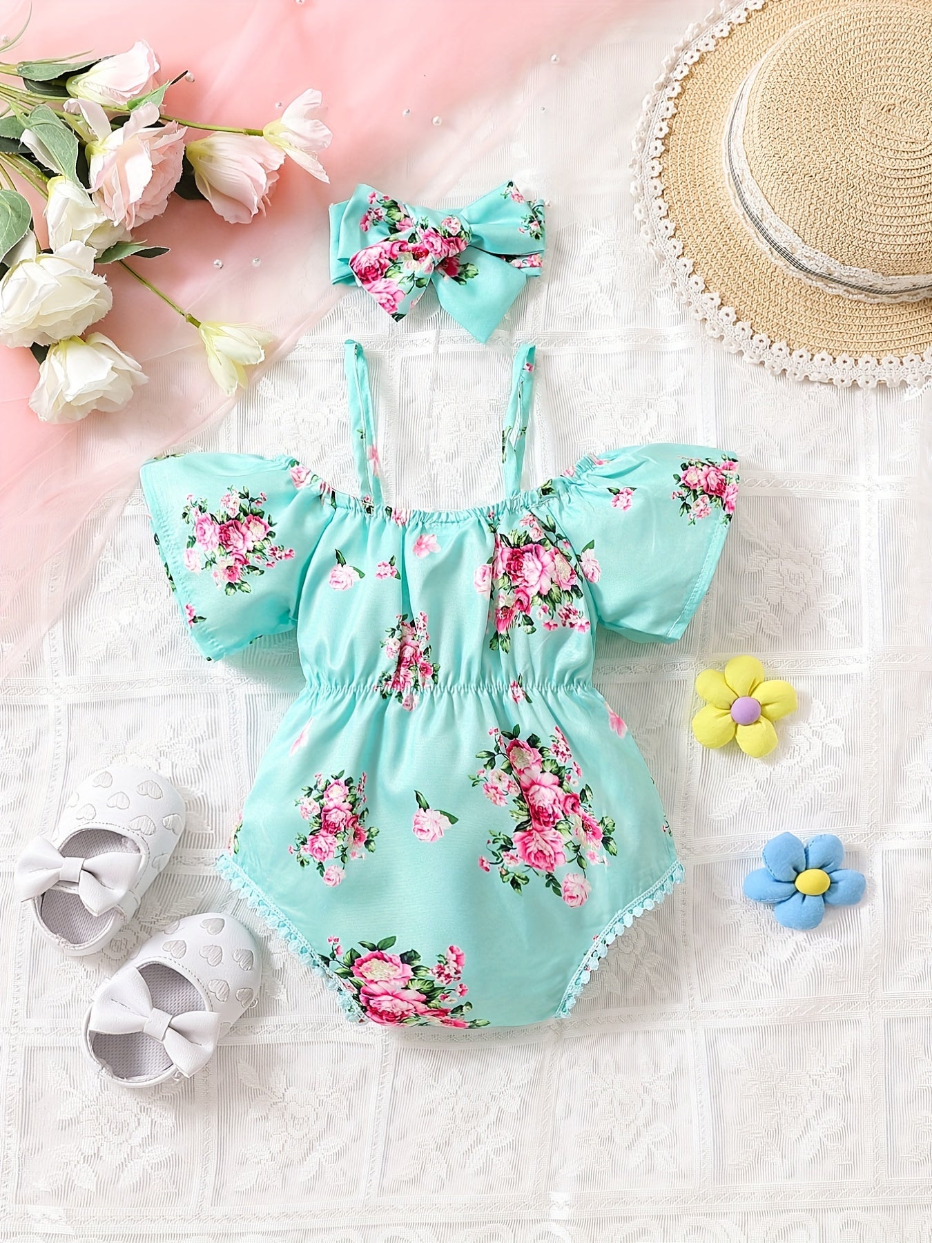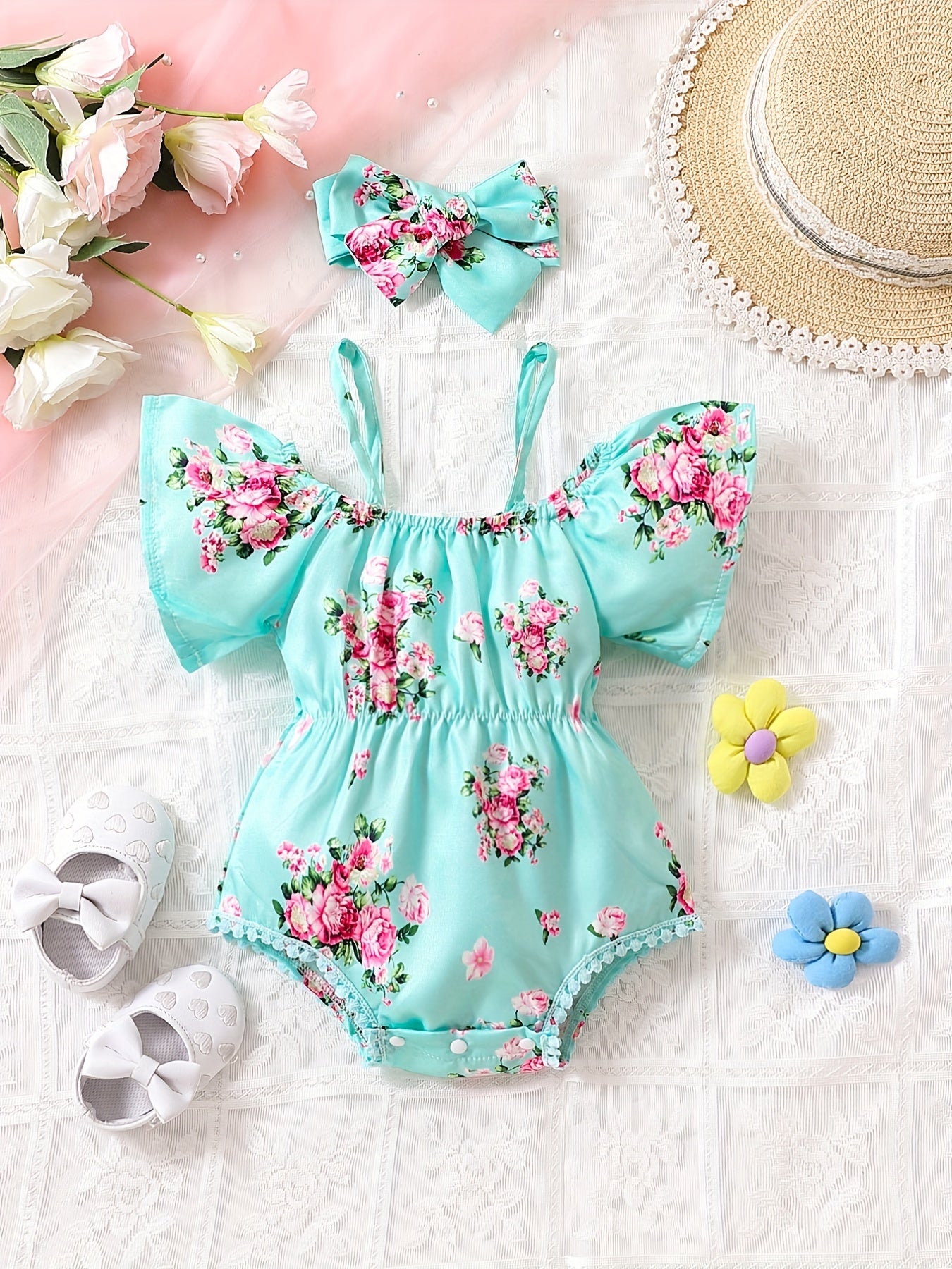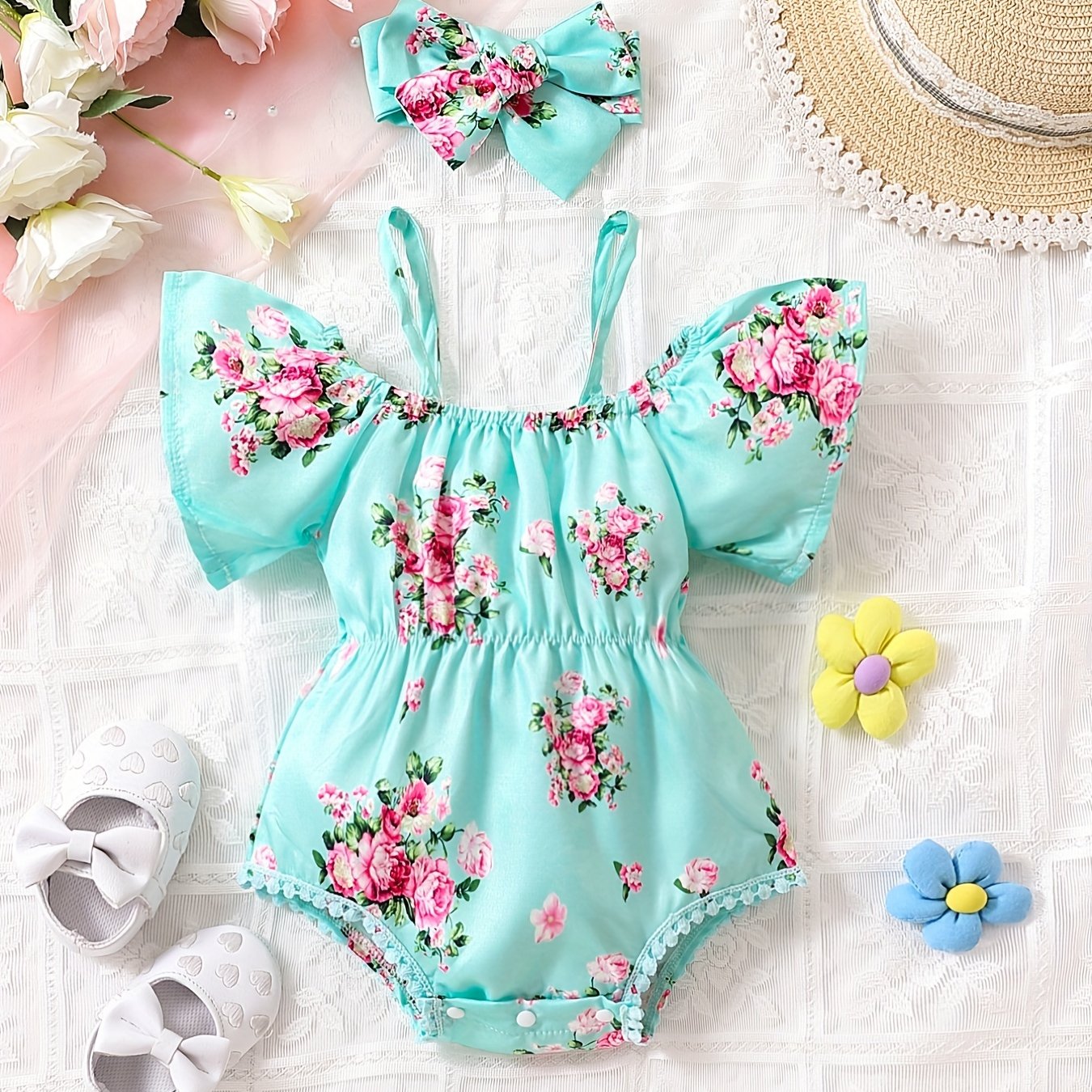 Baby Girls Cute Floral Onesie Short Sleeves Cold Shoulder Baby Clothes