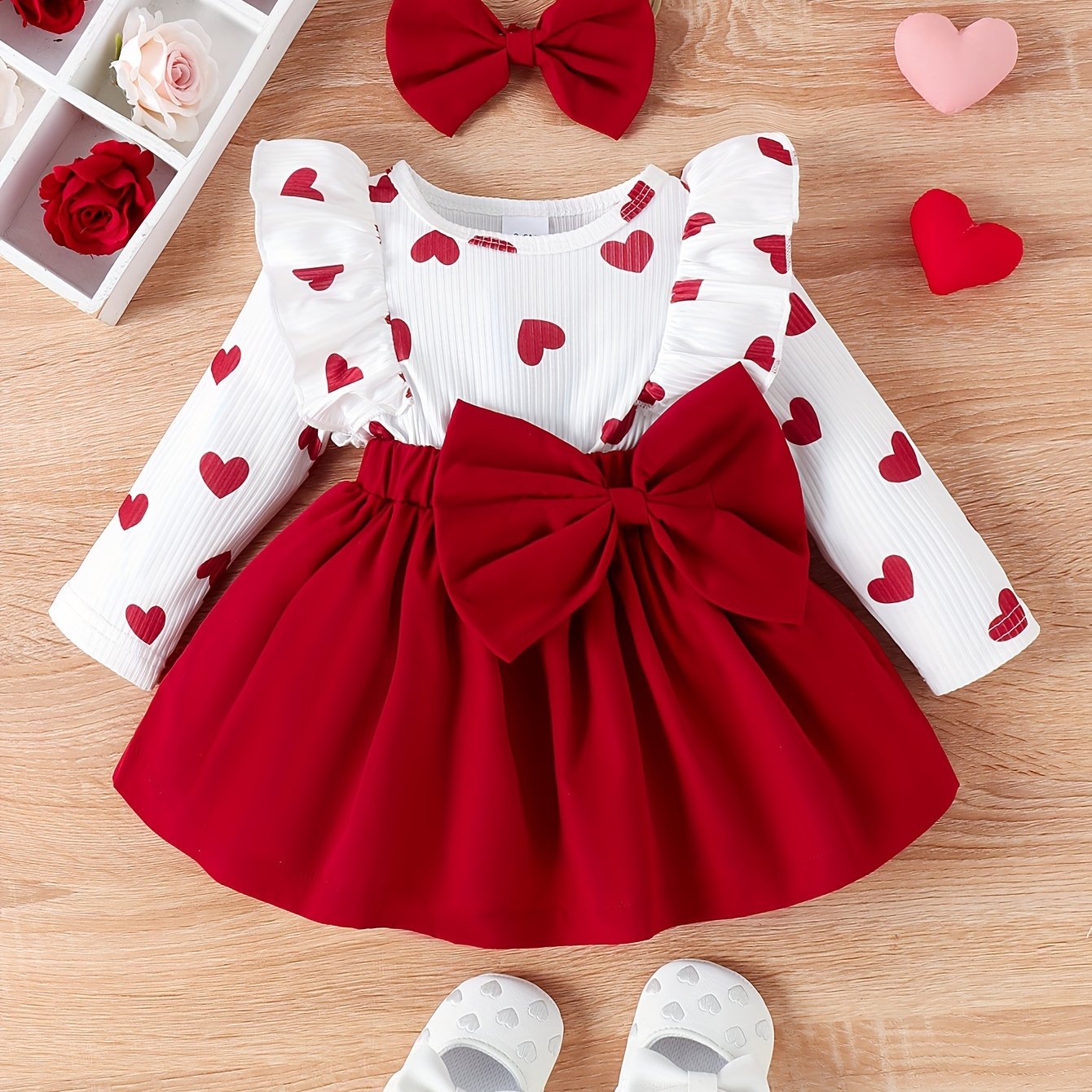 Baby Girls Exquisite & Comfortable Love Print Long Sleeve Color Block Dress For Banquet