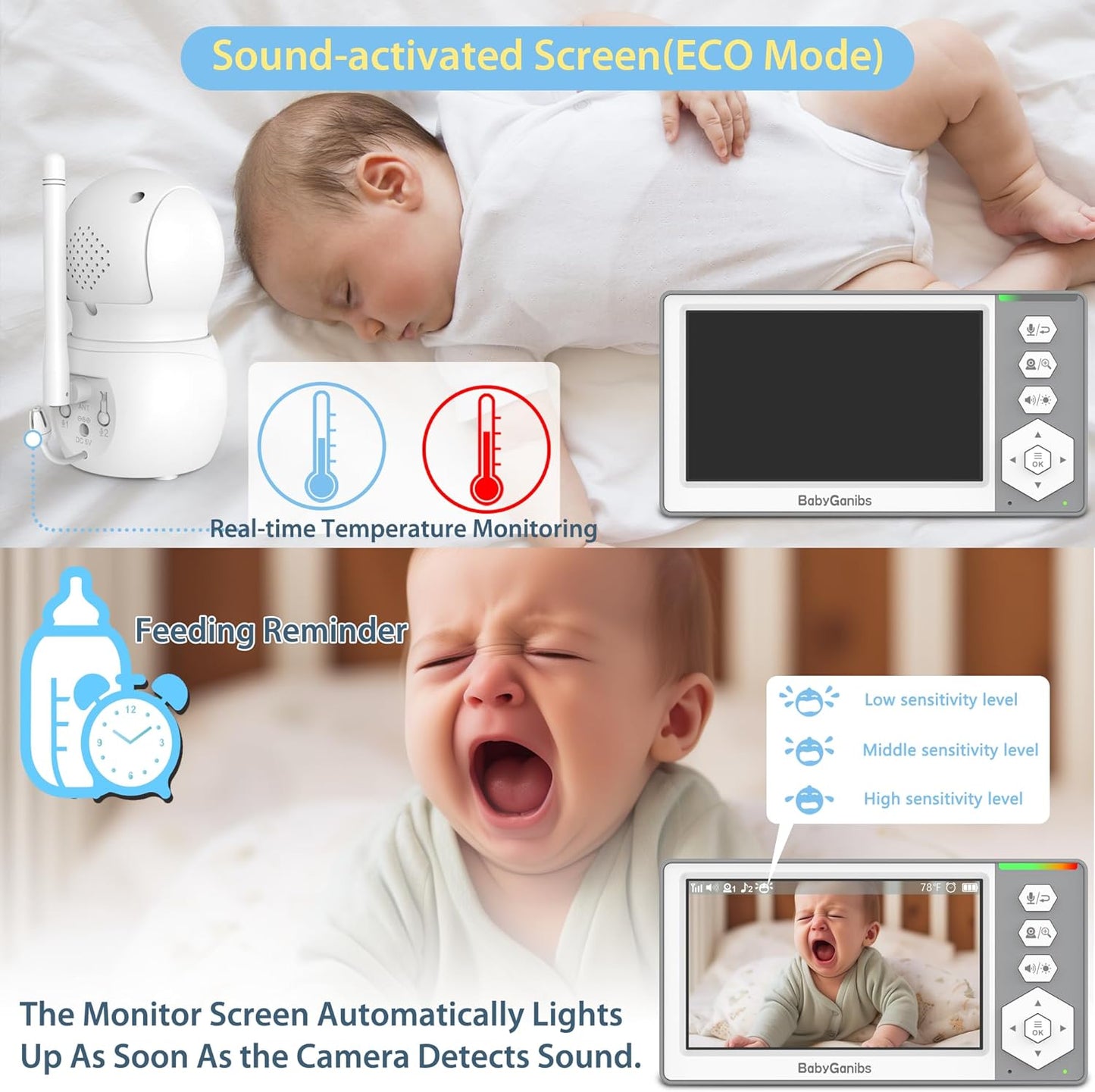 【Professional Product and Customer Service】Baby Ganibs baby monitor allows money to be spent on the cutting edge, not wasting your money! Whether you are using it yourself, or giving it to friends or new mom through baby registry search or baby shower, you will equally enjoy after-sales service. If you encounter any problems with the product during use, tell me at any time, We provide you with timely after-sales solutions!