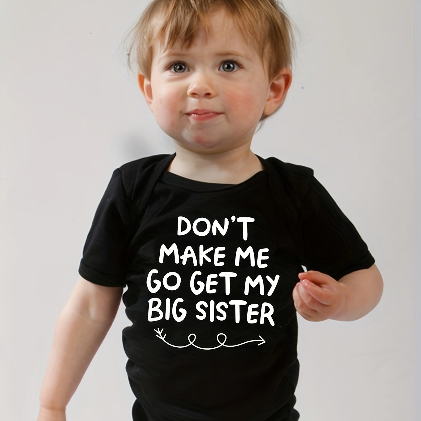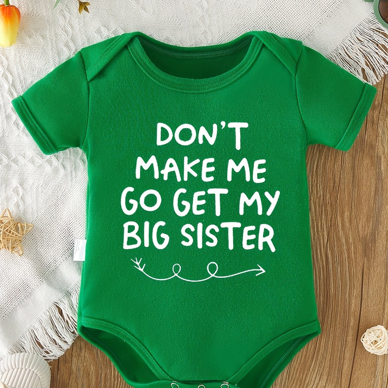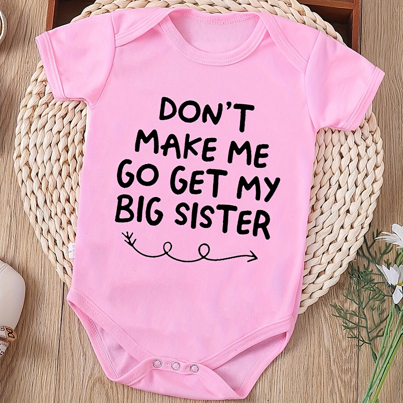 [Baby Romper] Soft Breathable Baby Girl Short Sleeve Romper | "Don't Make Me Go Get My Big Sister" Print, Adjustable Snap Closure, Lightweight Summer Outfit for Newborns & Infants, Easy Diaper Change Design, for Outdoor