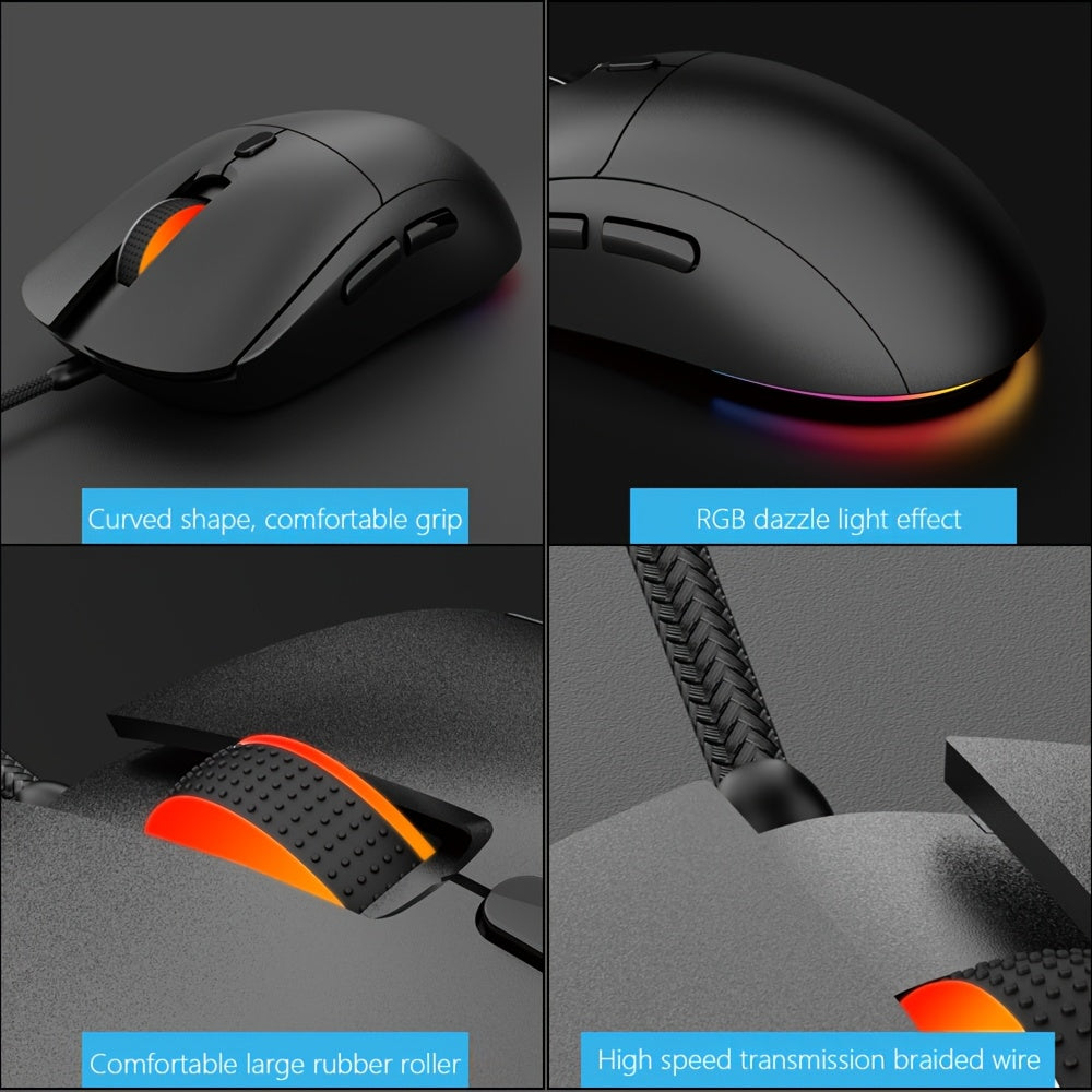 BalanceFit Souris de Jeu Filée - Taux de Polling Ultra-Rapide de 1000Hz, Éclairage RGB Vibrant, Alimentée par USB, Idéale pour Ordinateur de Bureau & Portable, Parfaite pour les Passionnés d'Esports