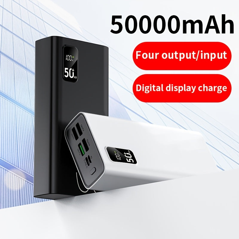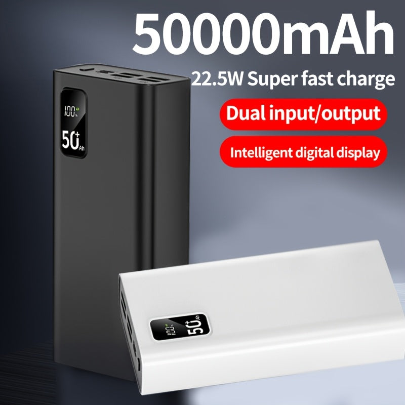 Banque d'Énergie Portable de Grande Capacité 50000mAh, Équipée d'un Affichage LED de Puissance/Plusieurs Ports de Sortie, Adaptée pour le Chargement d'Électronique Android/Téléphones Mobiles et Autres Appareils, Dispositif d'Alimentation d'Urgence Portabl
