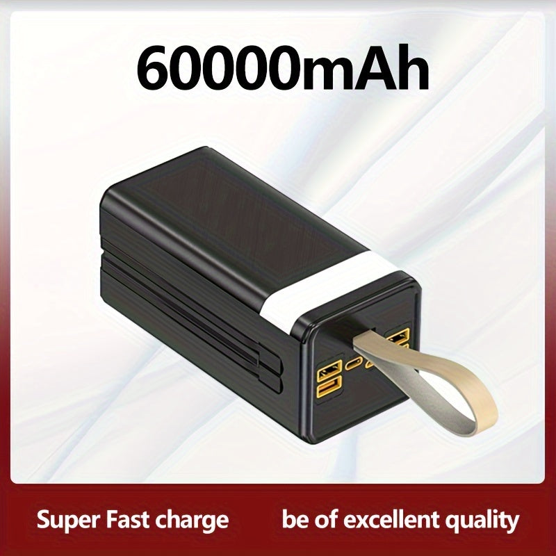 Banque d'Énergie Portable de Grande Capacité 60000mAh, Alimentation d'Urgence Portable pour Voyage/Camping en Plein Air, Livrée avec Quatre Câbles de Données/Plusieurs Ports de Sortie/Torche/Lanière, Batterie Lithium Sûre et Stable, Idéale pour Offrir en