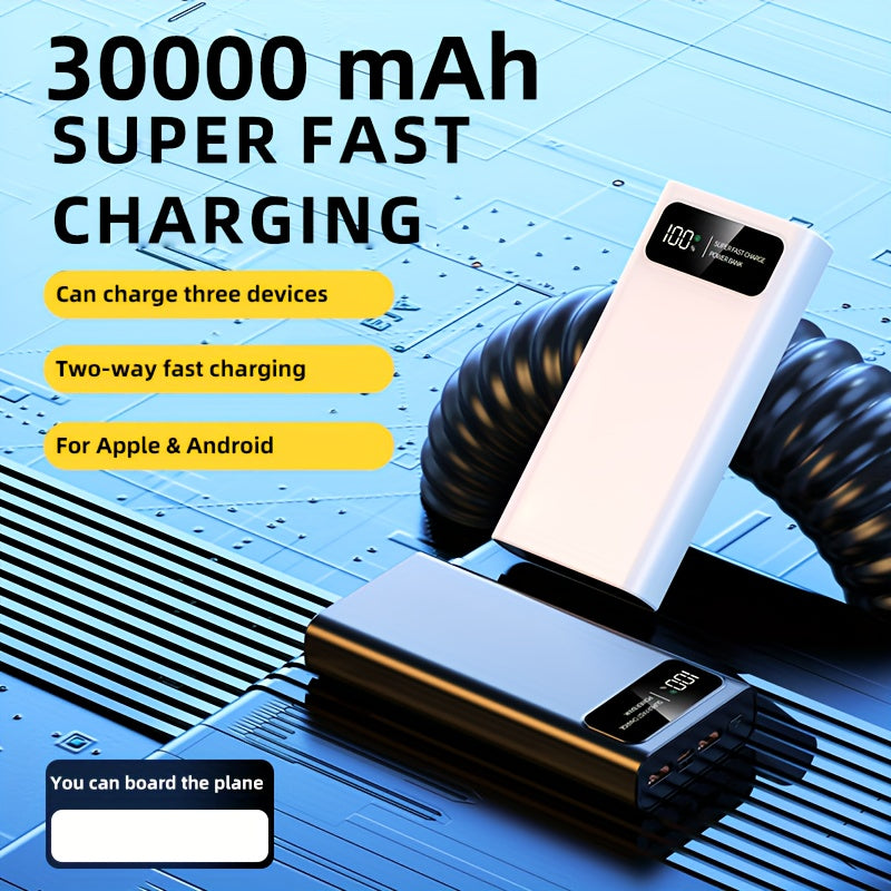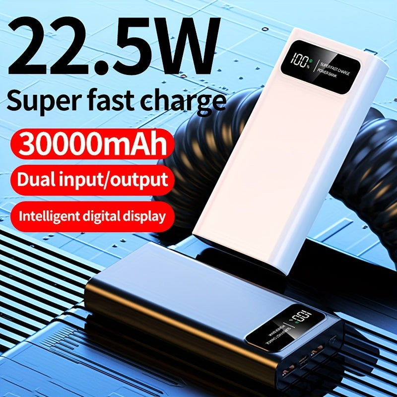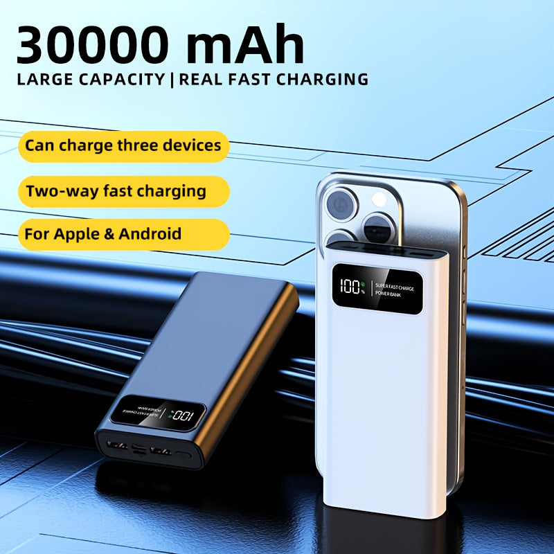 Batterie externe mobile de grande capacité 30000mAh, charge rapide bidirectionnelle, batterie de secours d'alimentation d'urgence en plein air, batterie externe portable, charge rapide super rapide, prend en charge la charge de plusieurs appareils en même