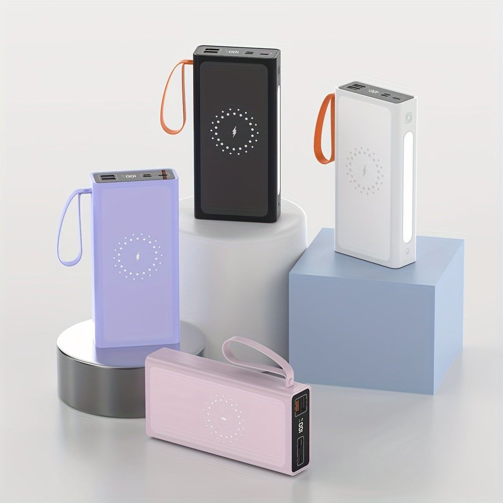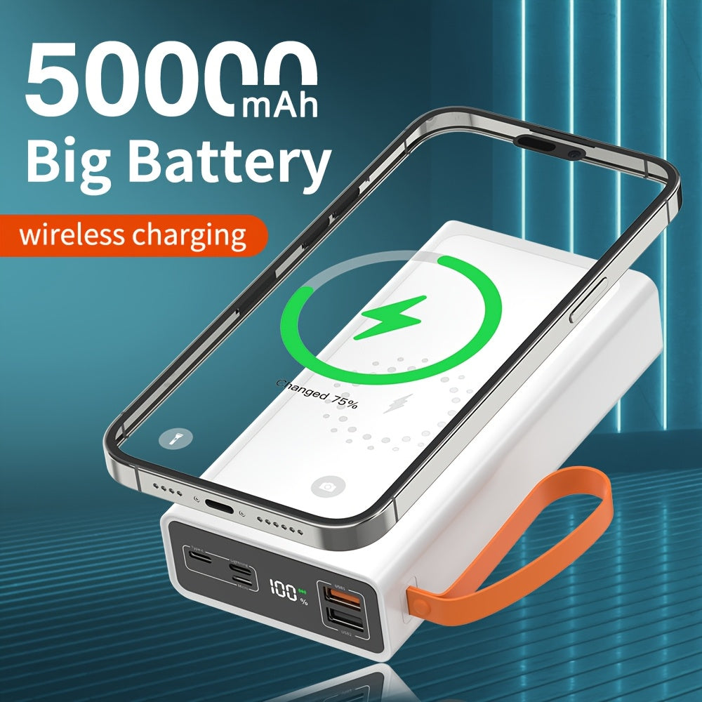 Batterie externe mobile de grande capacité 50000mAh, banque de charge multifonctionnelle, banque de charge nécessaire pour téléphone portable en extérieur, banque de charge magnétique, avec câble de charge pour tous les modèles, équipée de lumières noctur