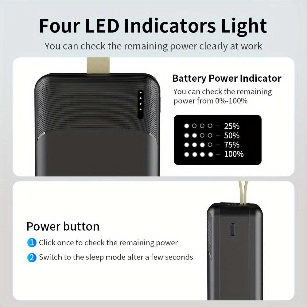 Batterie haute capacité, conception portable, puce intelligente de sécurité neuf types de protection de sécurité, applicable aux voyages (USB/ Type-C) avec affichage de la puissance LED chargeur portable pour les voyages de secours en plein air.