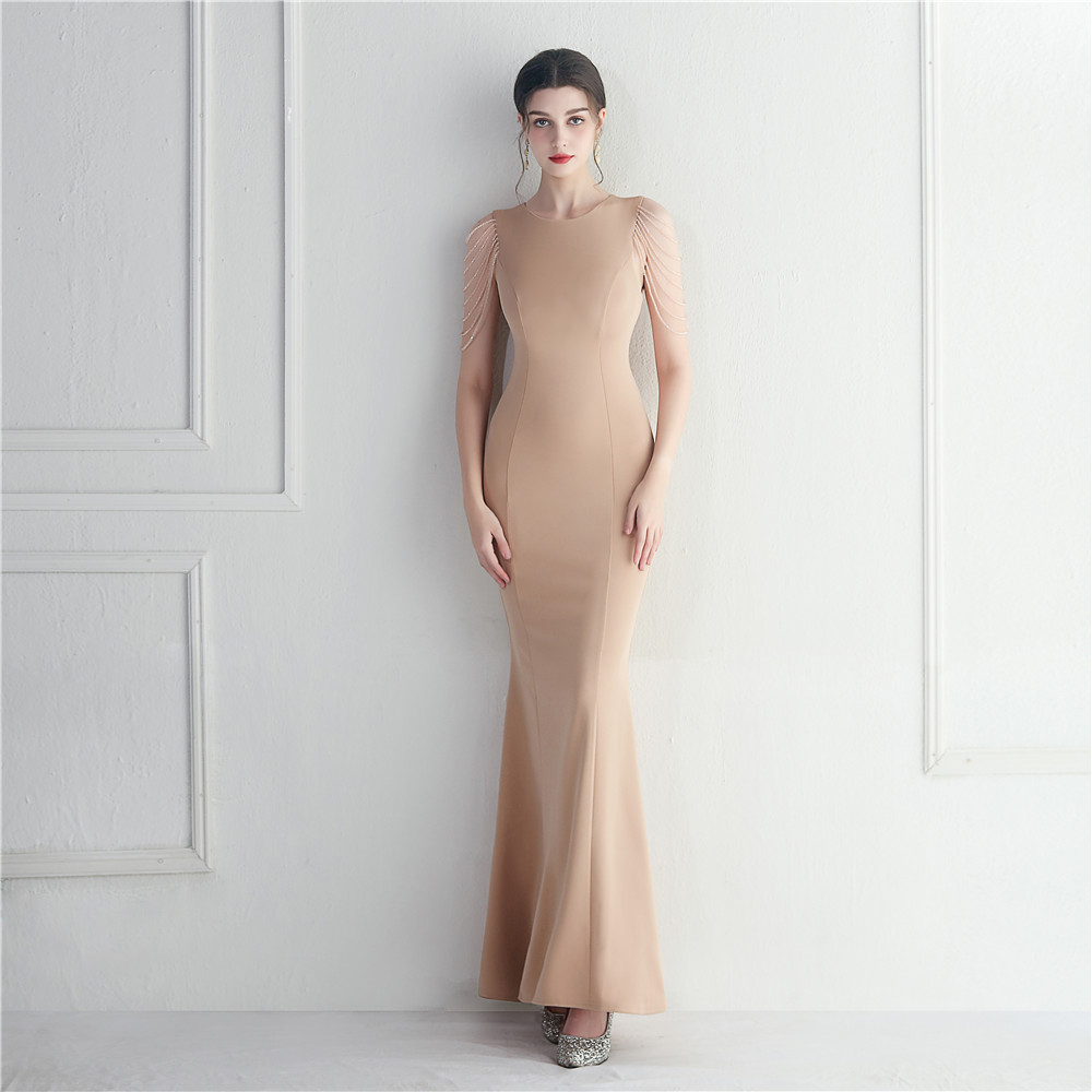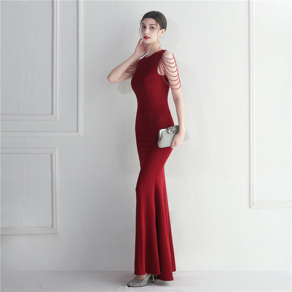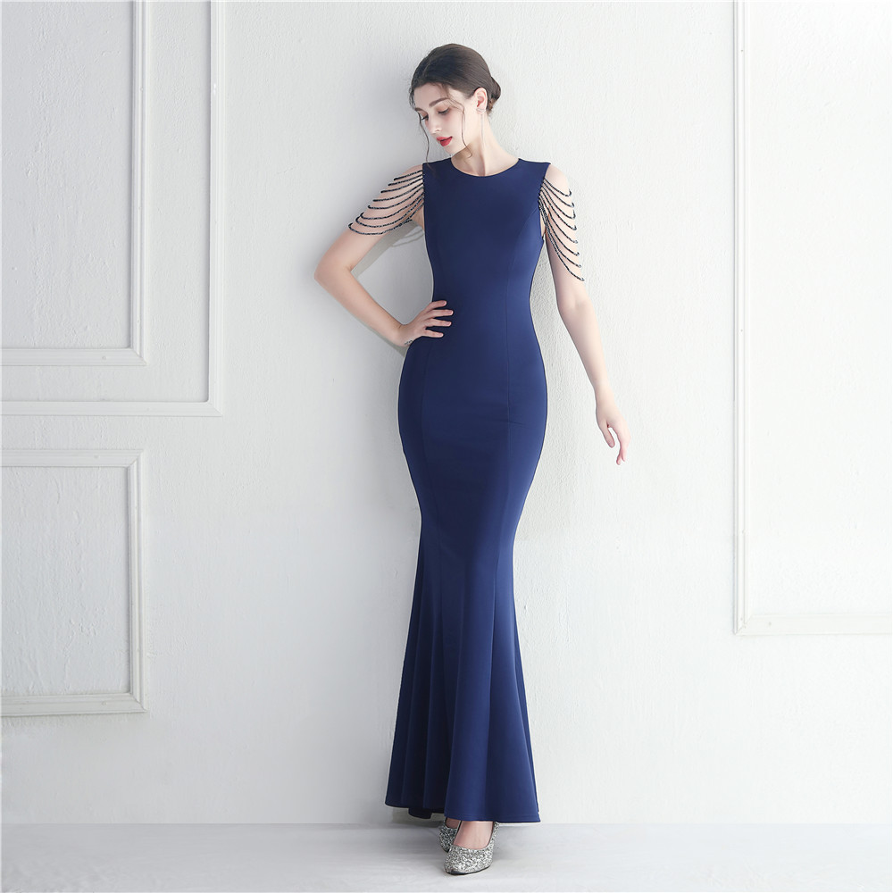 Beaded Bridesmaid Guest Wedding Celebration Long Fish Tail Dress