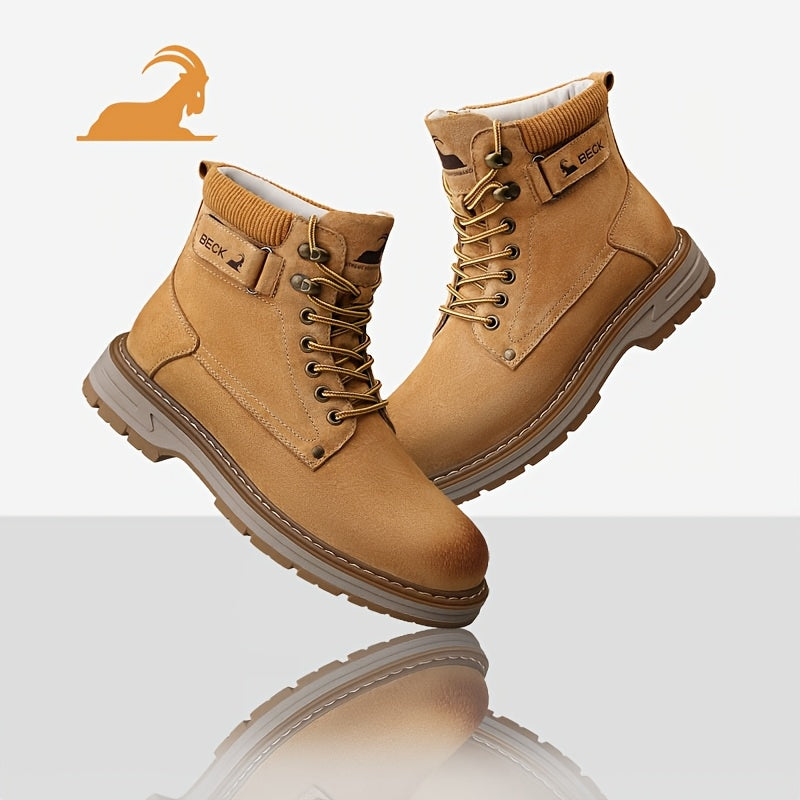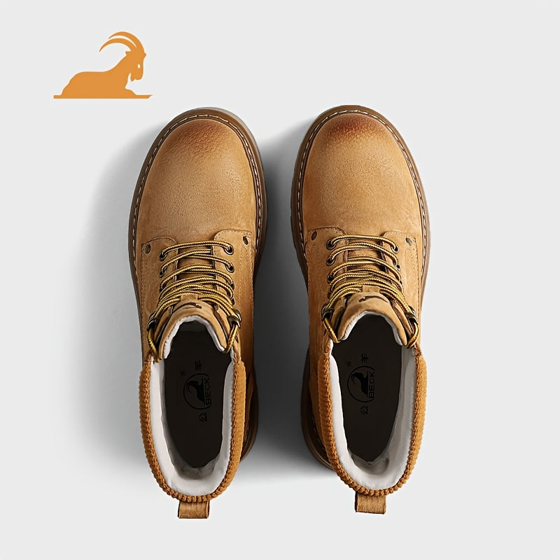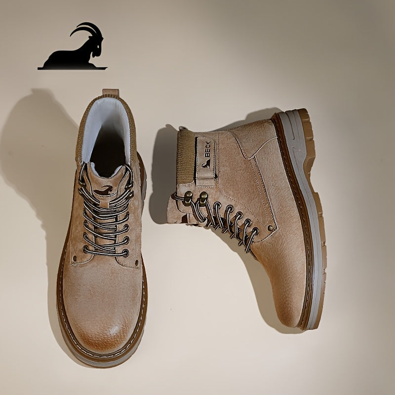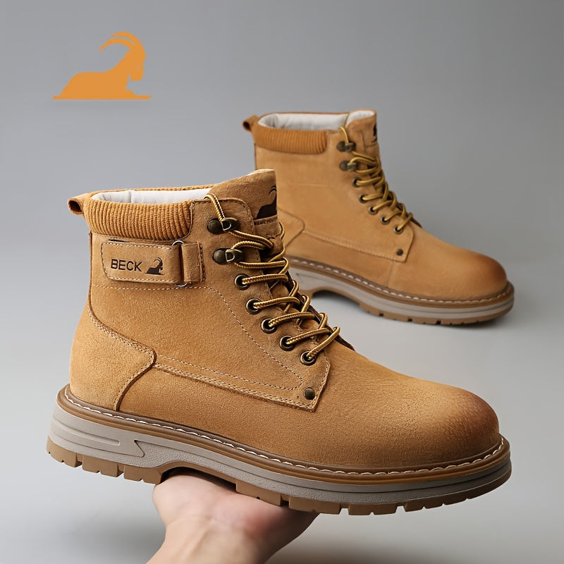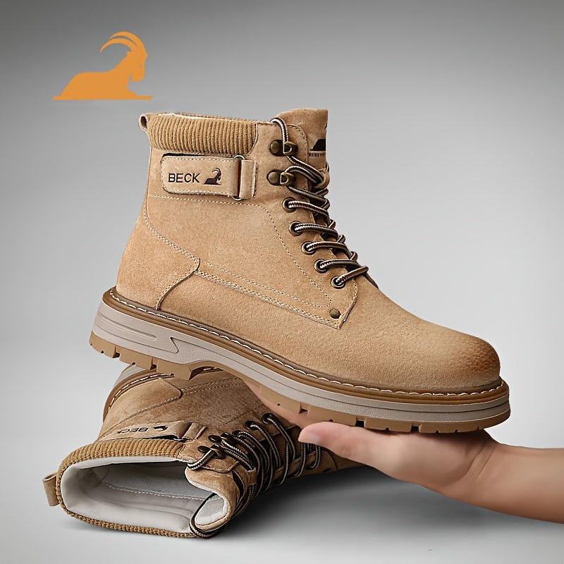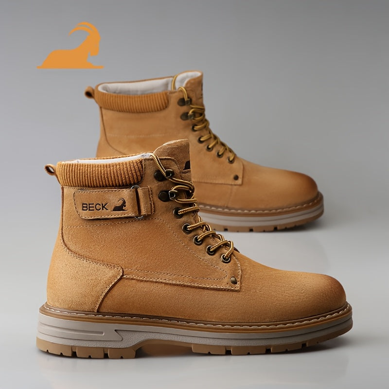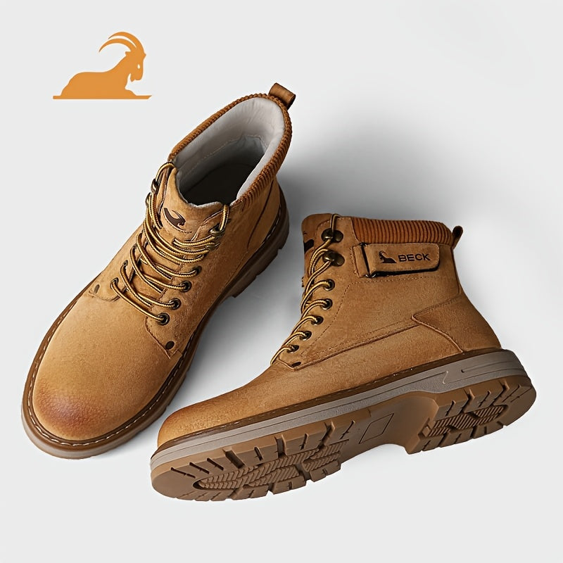 BECK Men's Genuine High-Top Boots - Casual & Outdoor Hiking Shoes with Rubber Sole, Lace-Up Design, Round Toe, All-Season Wear, Tan Color, Durable & Stylish for Everyday Use, Hiking Boots