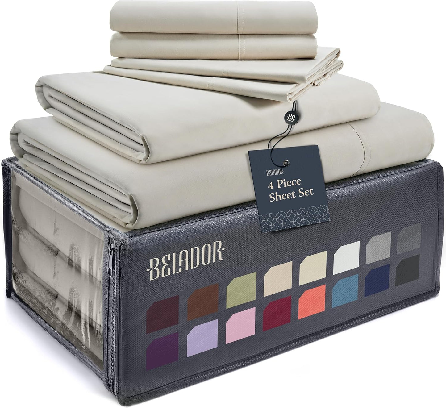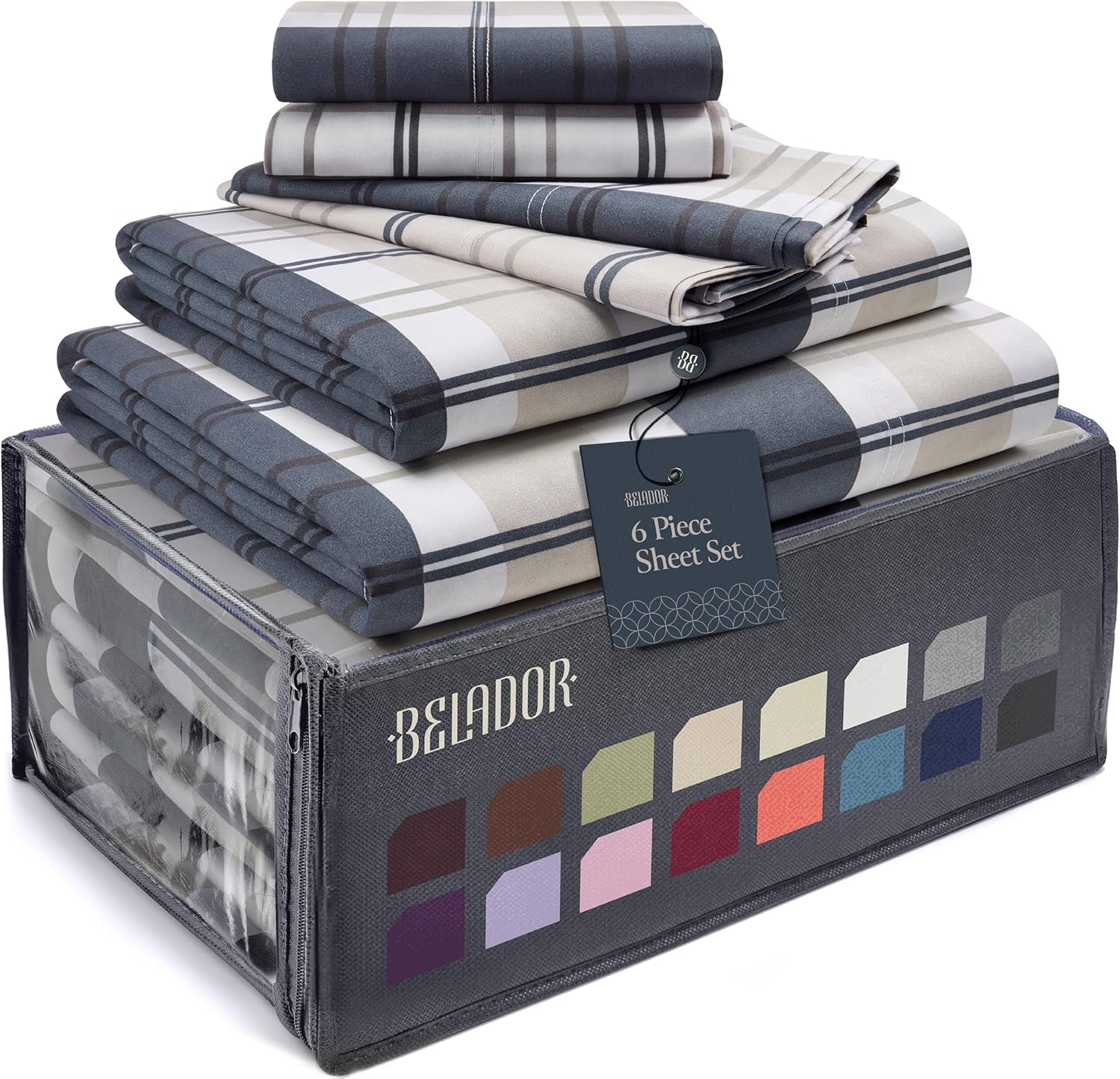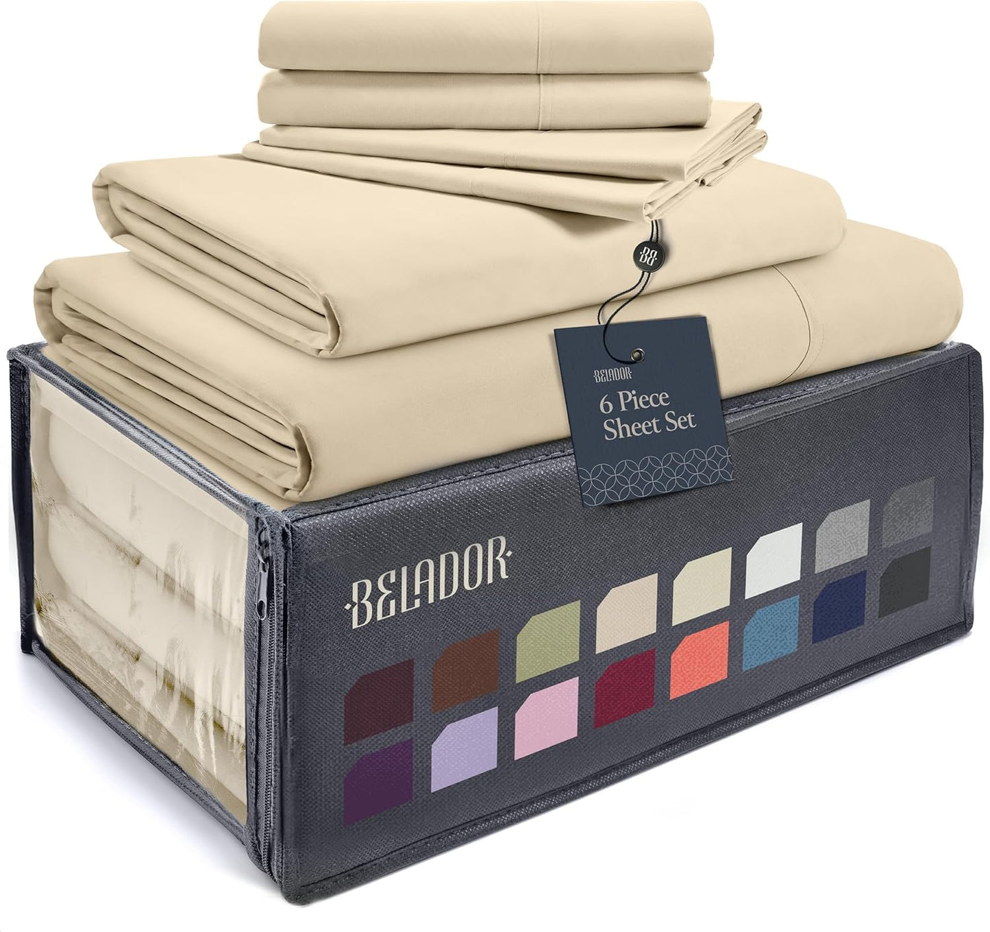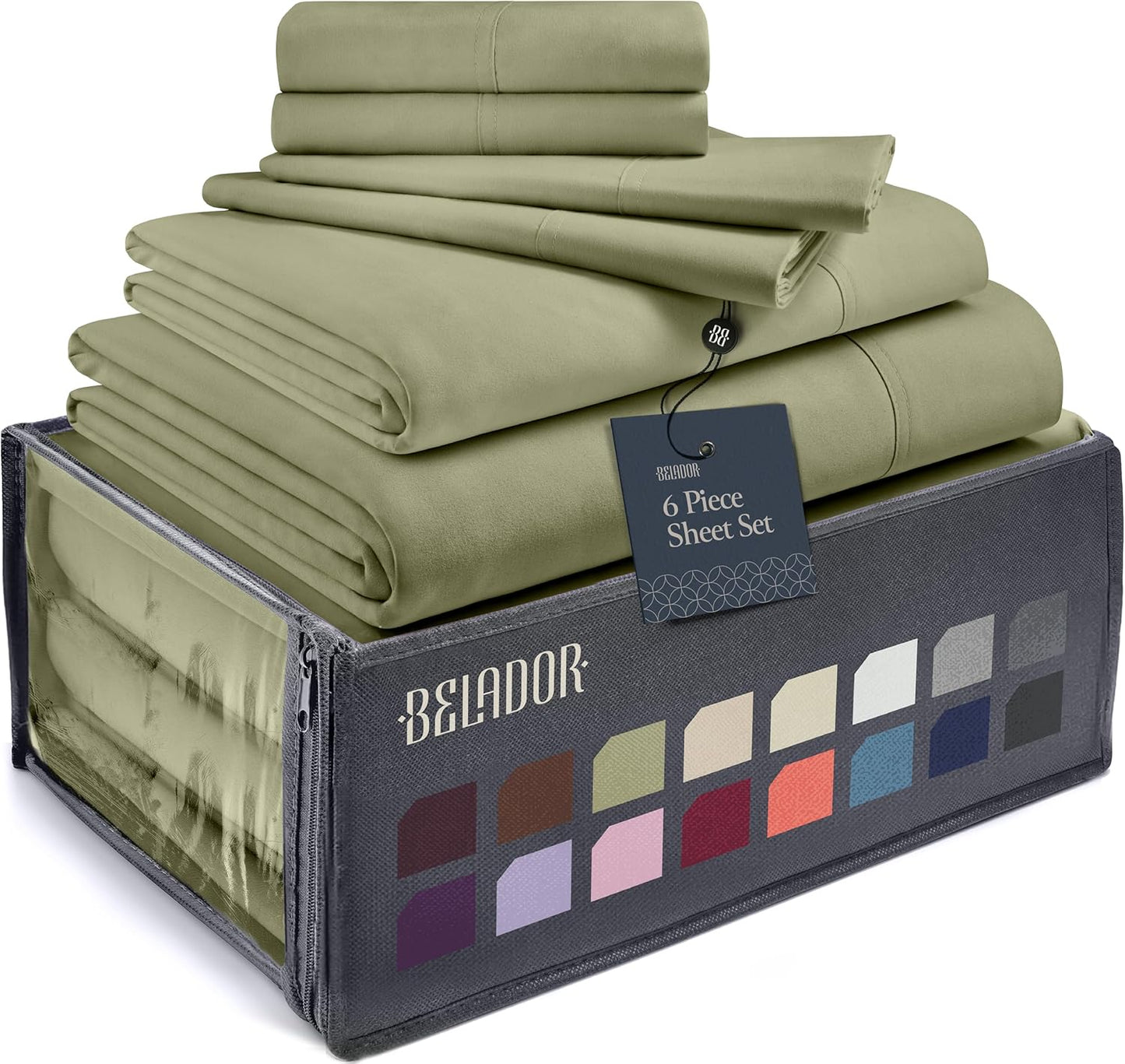 BELADOR Silky Soft Sheet Set - Luxury 6 Piece Bed Sheets for Queen Size Bed, Secure-Fit Deep Pocket Sheets with Elastic, Breathable Hotel Sheets & Pillowcase Set, Wrinkle Free Oeko-Tex Sheets