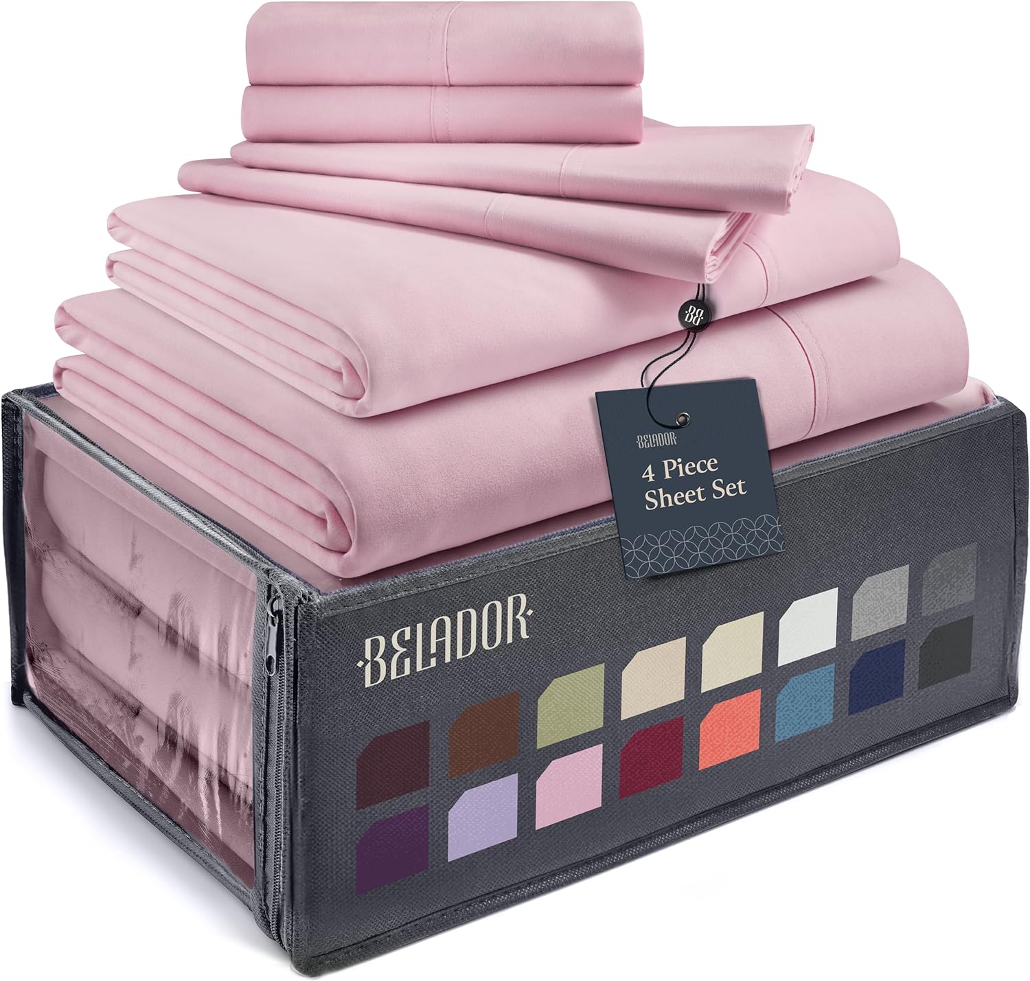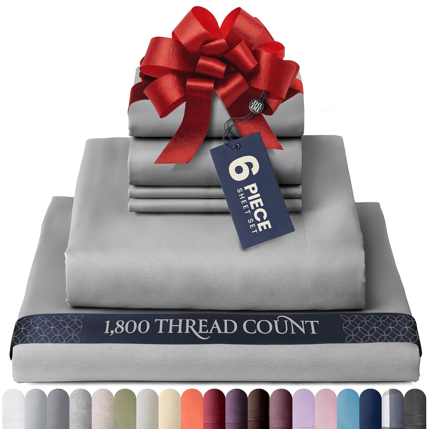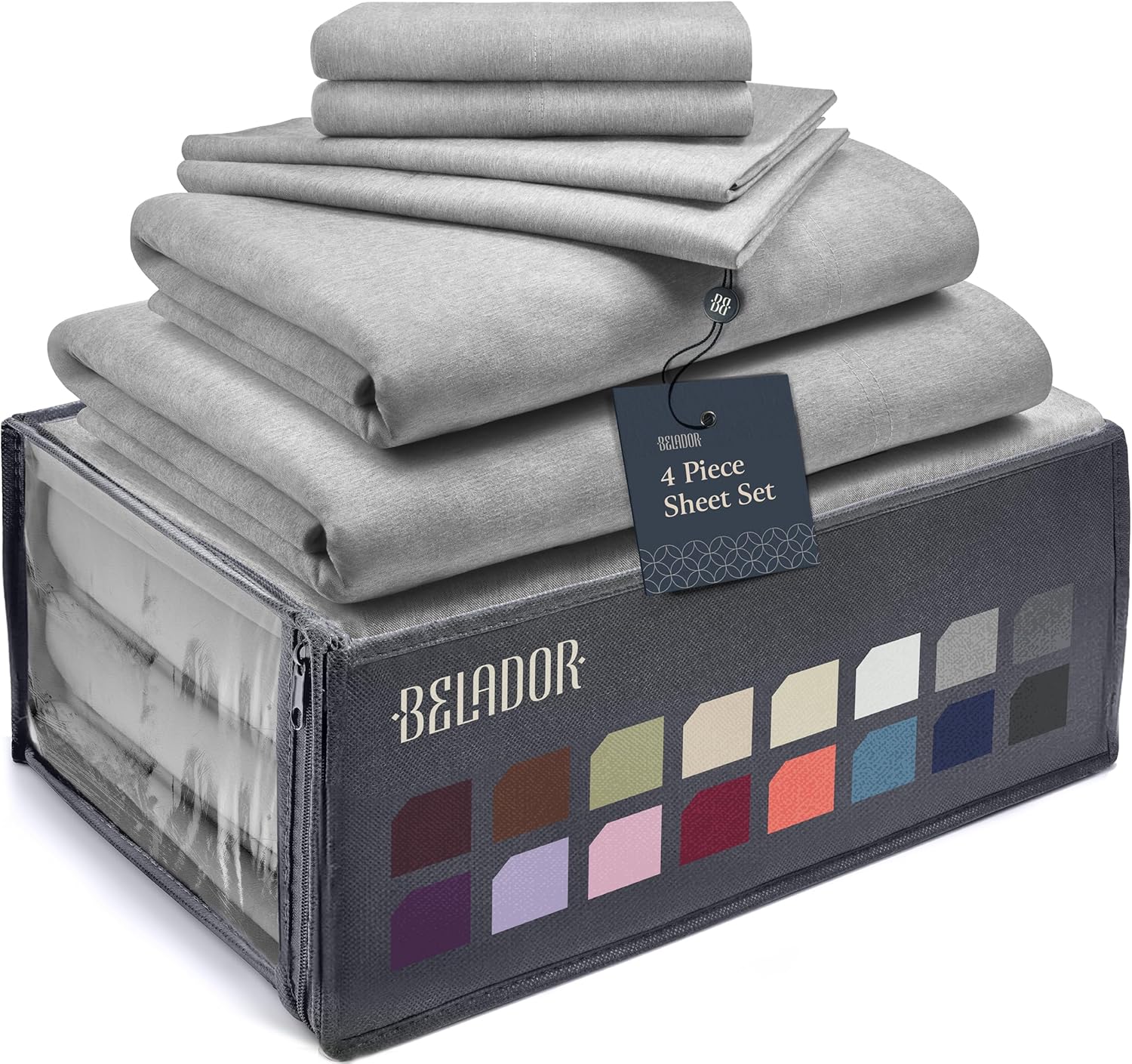 BELADOR Silky Soft Sheet Set - Luxury 6 Piece Bed Sheets for Queen Size Bed, Secure-Fit Deep Pocket Sheets with Elastic, Breathable Hotel Sheets & Pillowcase Set, Wrinkle Free Oeko-Tex Sheets