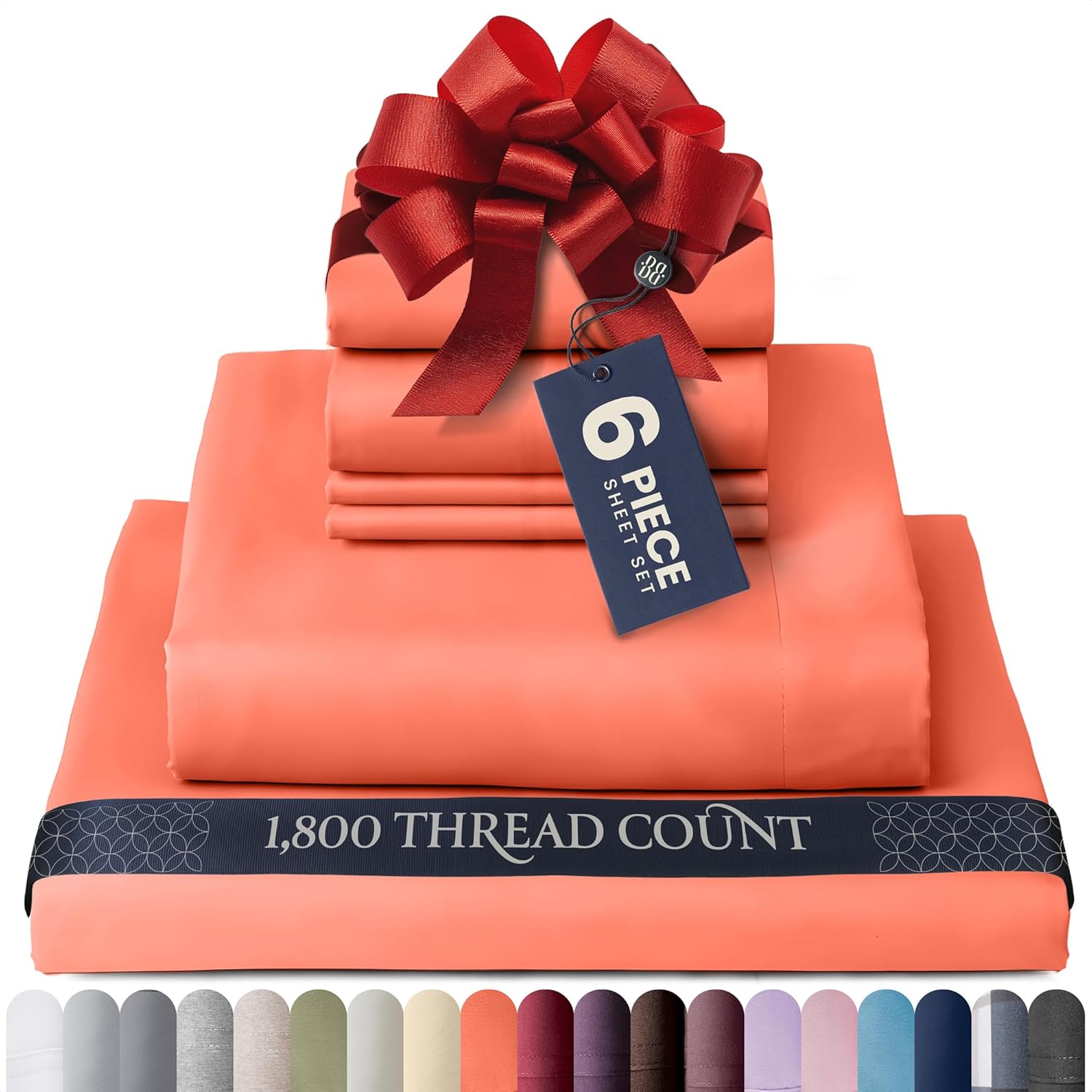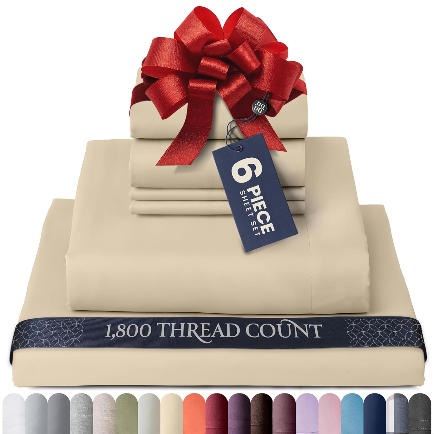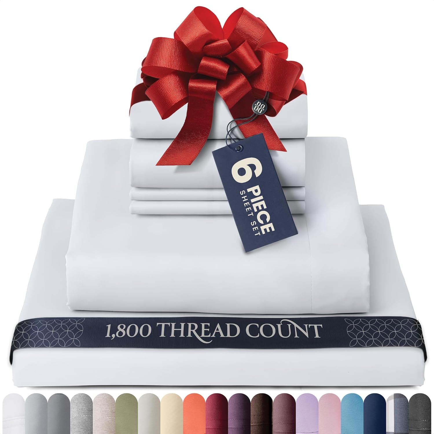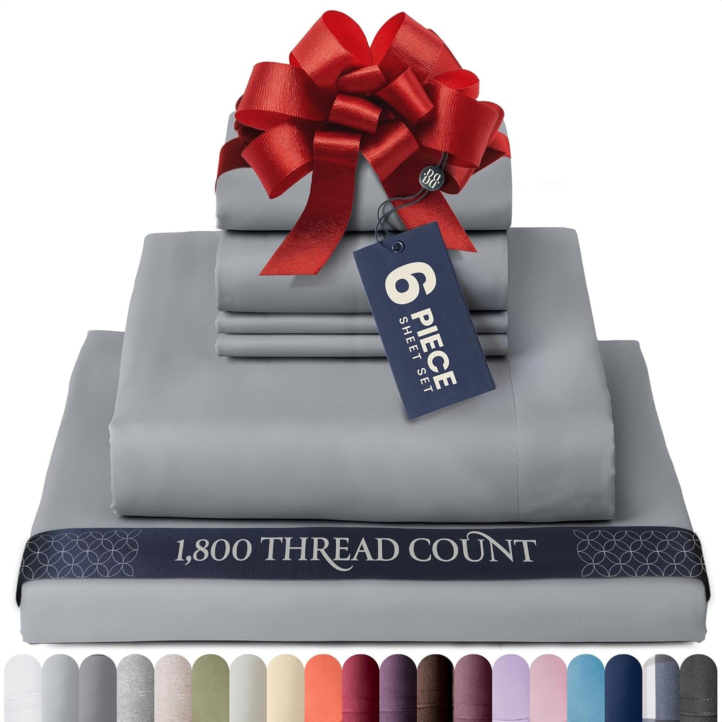 BELADOR Silky Soft Sheet Set - Luxury 6 Piece Bed Sheets for Queen Size Bed, Secure-Fit Deep Pocket Sheets with Elastic, Breathable Hotel Sheets & Pillowcase Set, Wrinkle Free Oeko-Tex Sheets