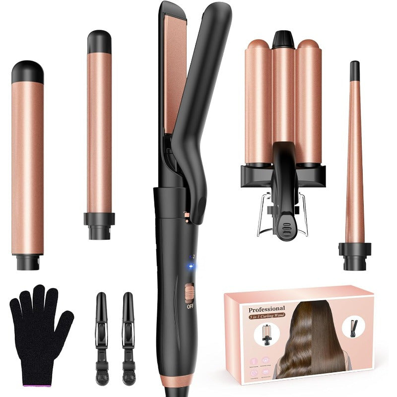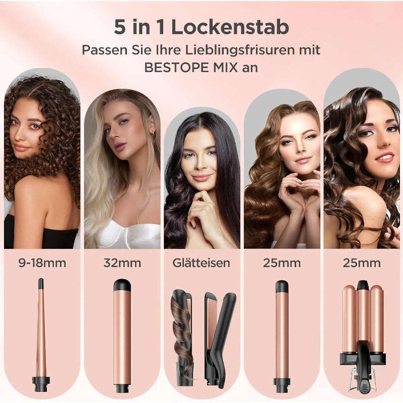 BESTOPE 5in 1 MIX Curling Iron Hair Curler with Straightener, Curling Iron, 3 Barrels, Wave Iron for Hair with Adjustable Temperature, Quick Heating Christmas gifts for girls Valentine's Day