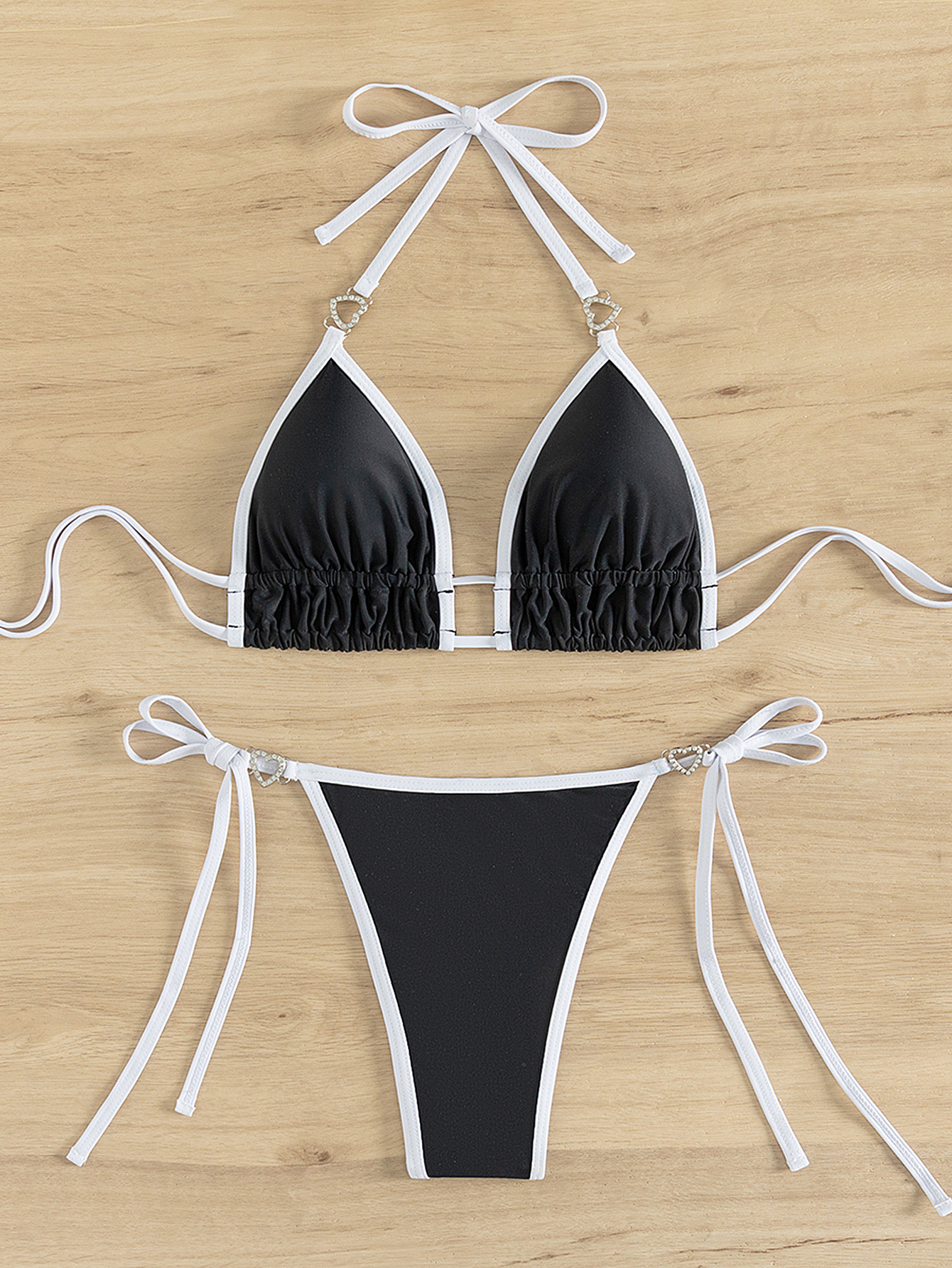 Bikini Color Matching Lace up T Back Sexy Split Bikini Swimwear Swimsuit Women