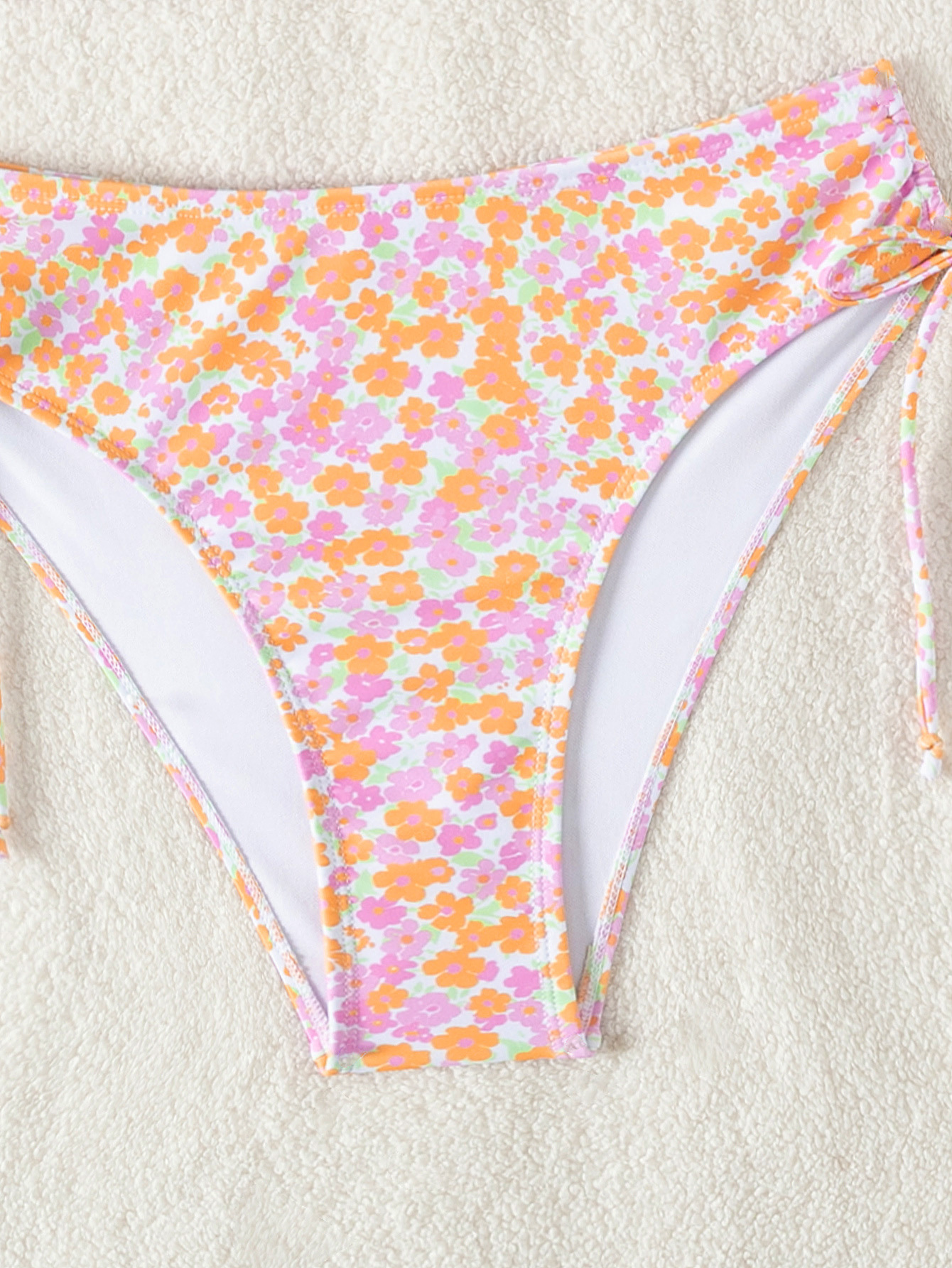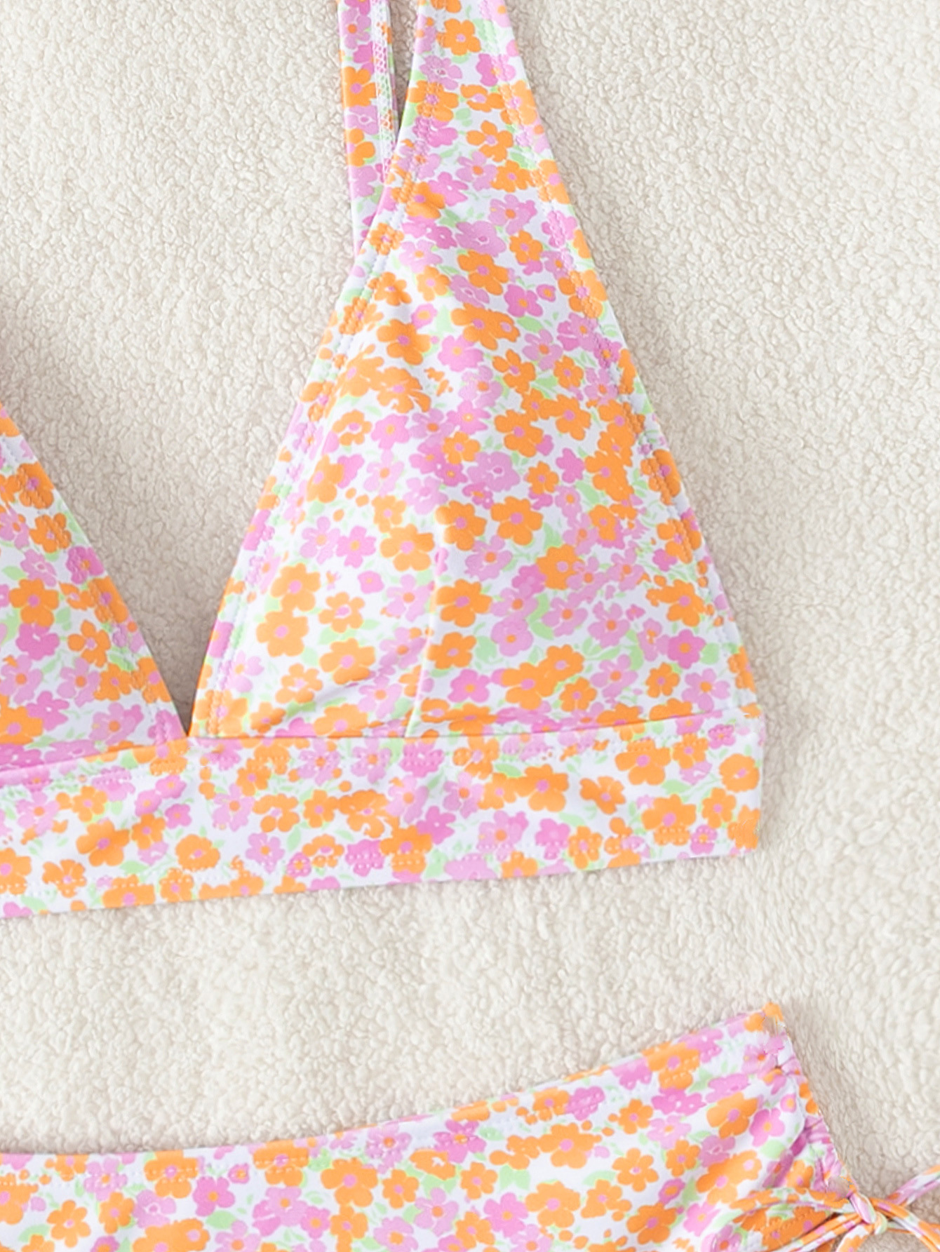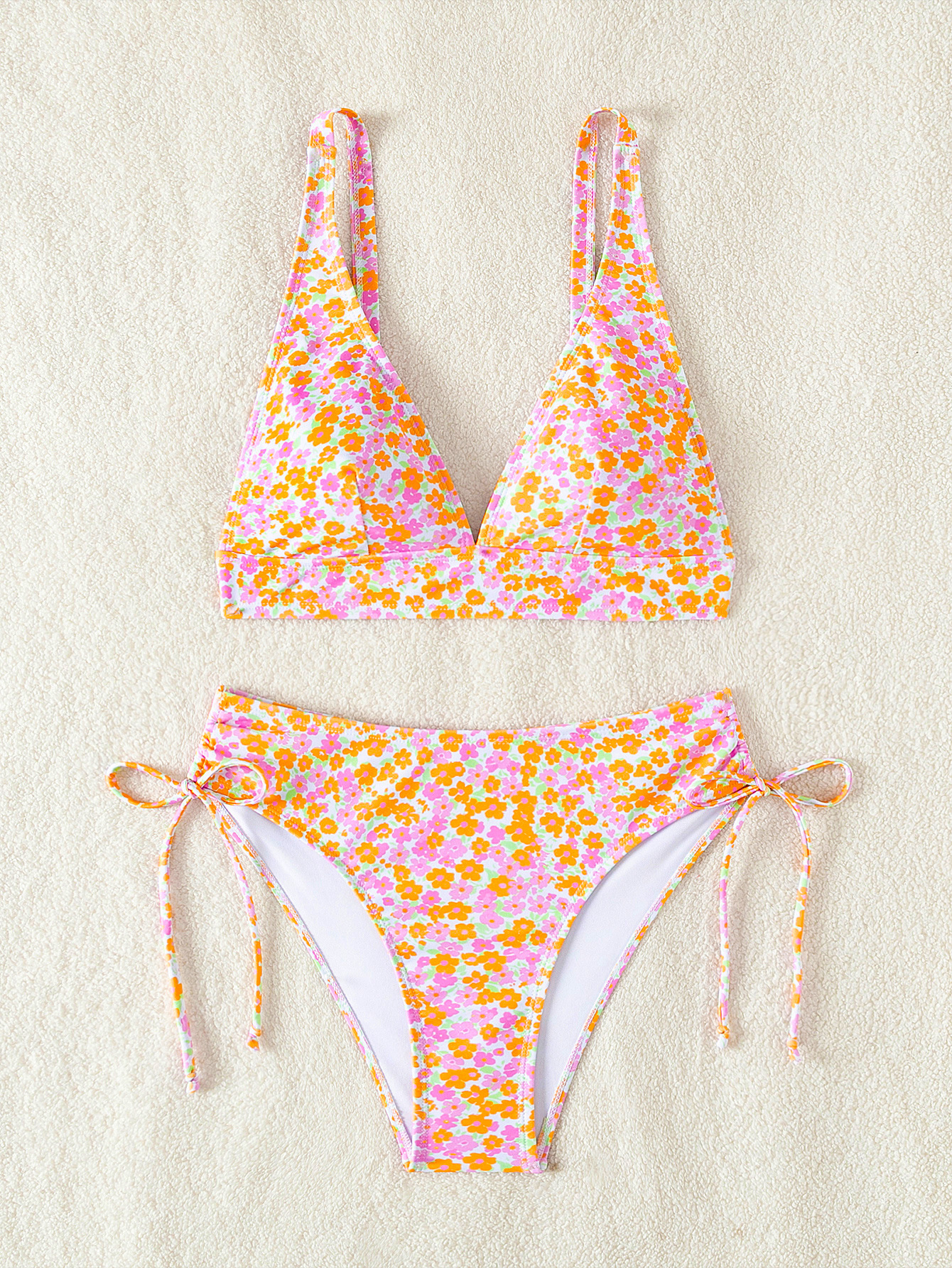 Bikini Small Floral Print Deep V Plunge Sexy Bikini Split Swimsuit Women